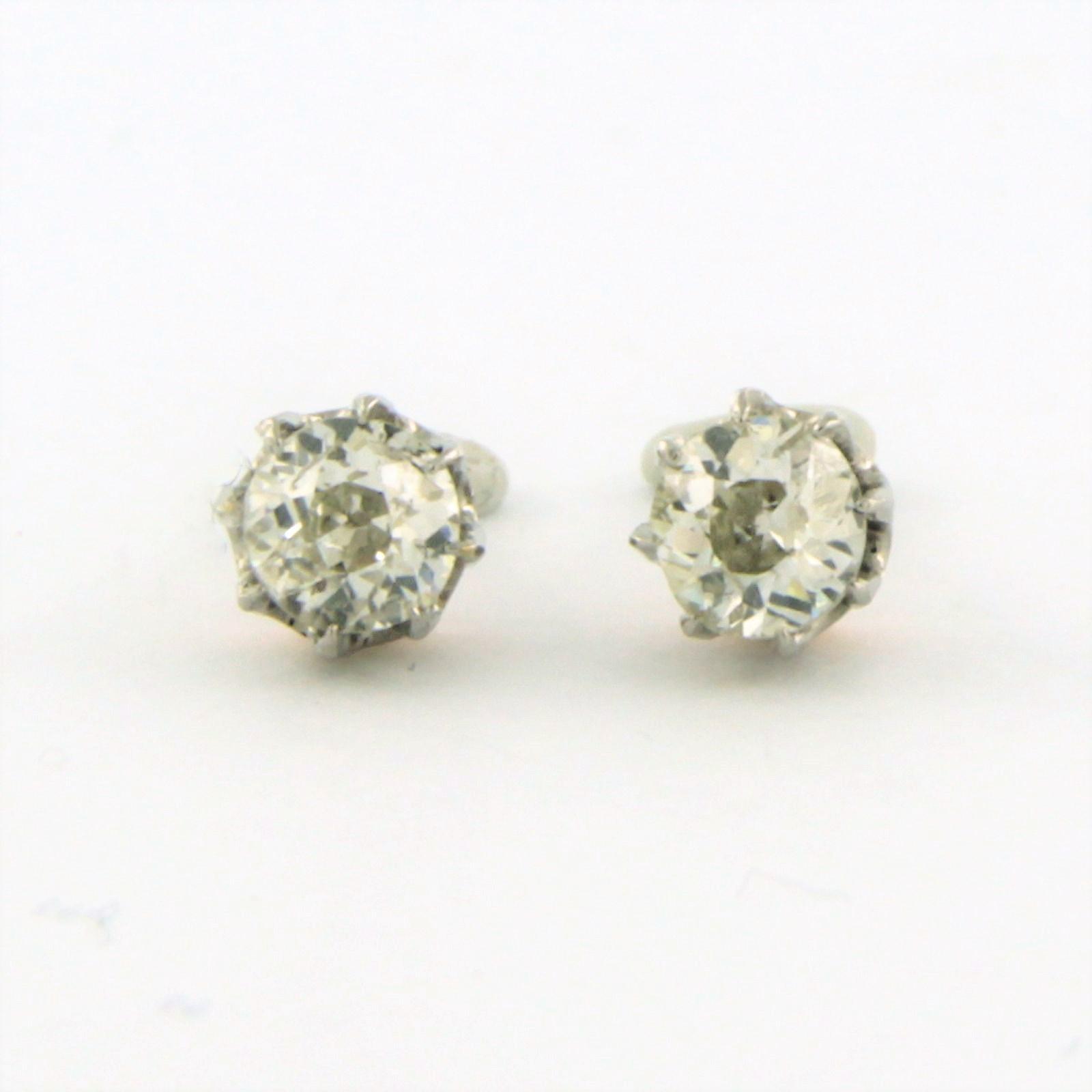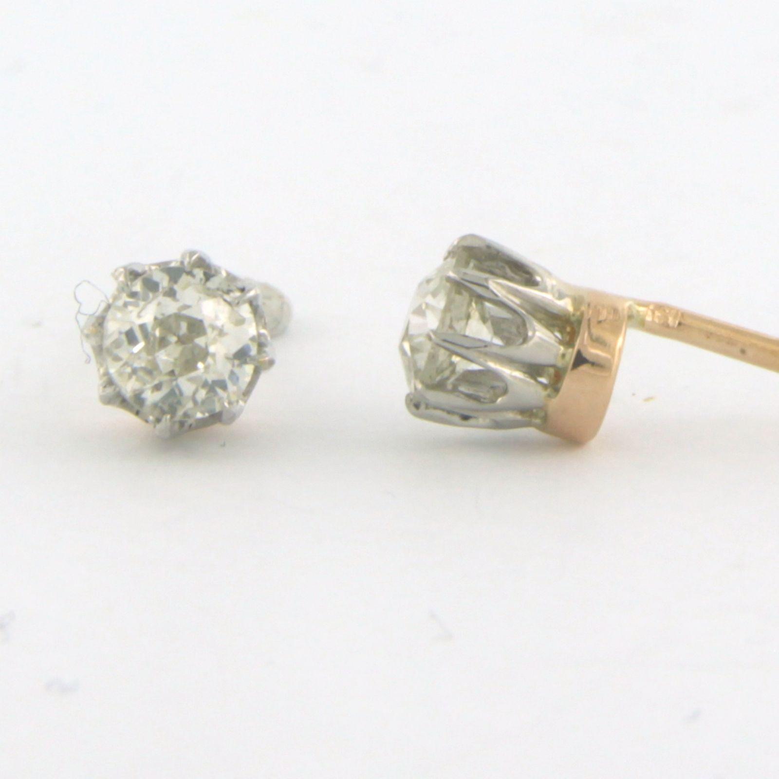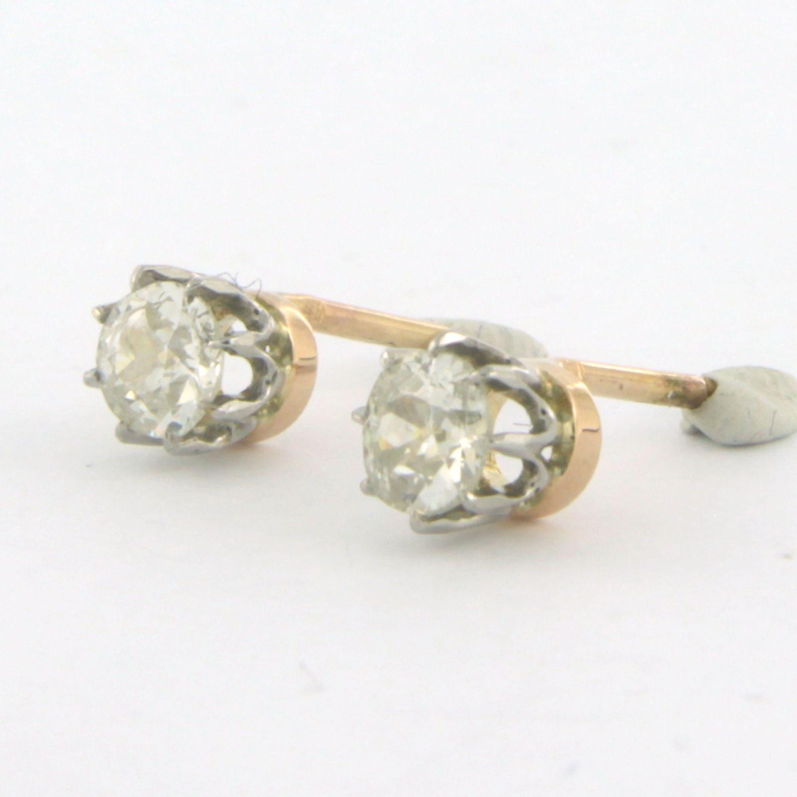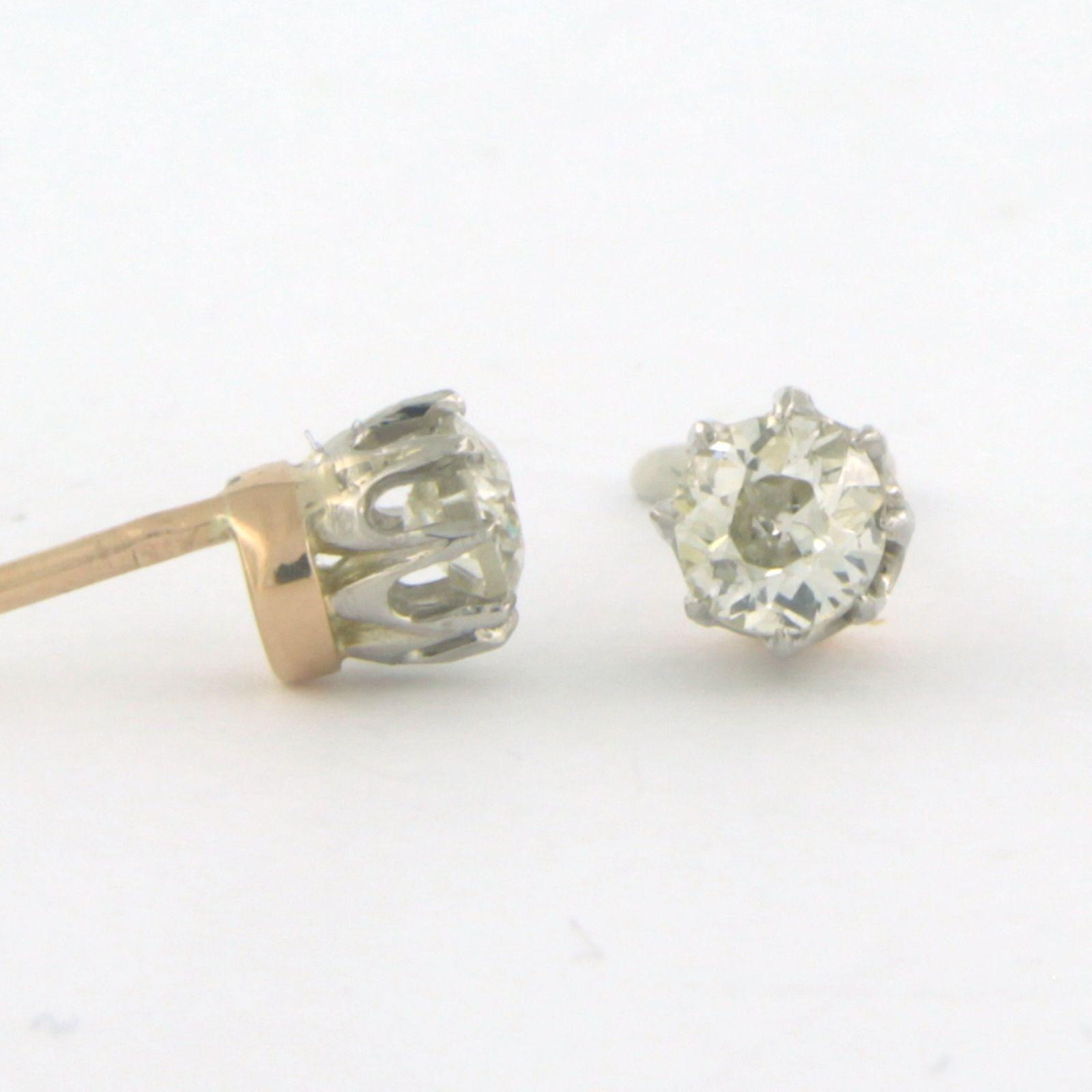 18 Kt. bicolor gouden solitair oorknoppen bezet met Bolsjewiek cut geslepen diamant tot. 0,80ct - J/K - VS/SI