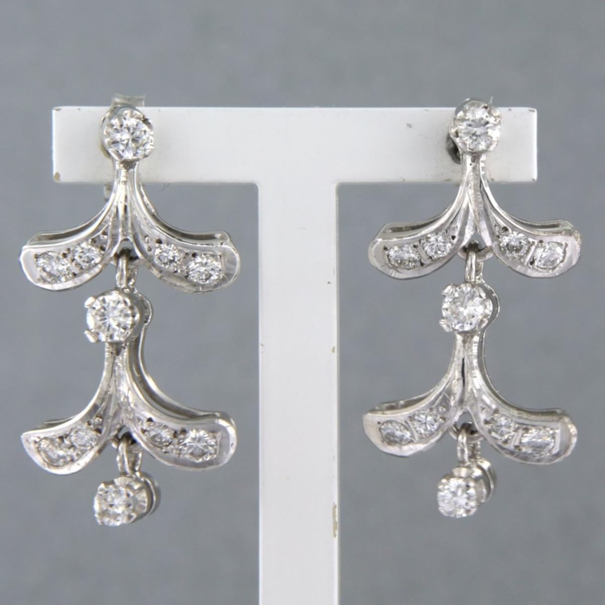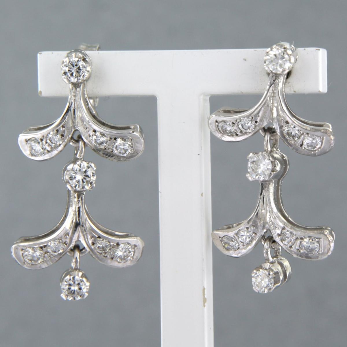 18 Kt. witgouden oorhangers bezet met briljant geslepen diamant tot. 1,00ct - F/G - VS/SI