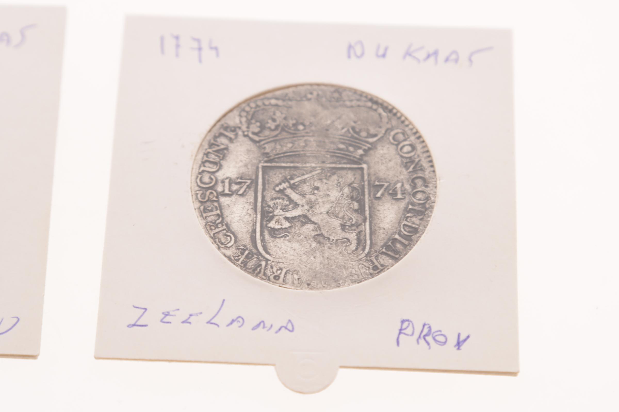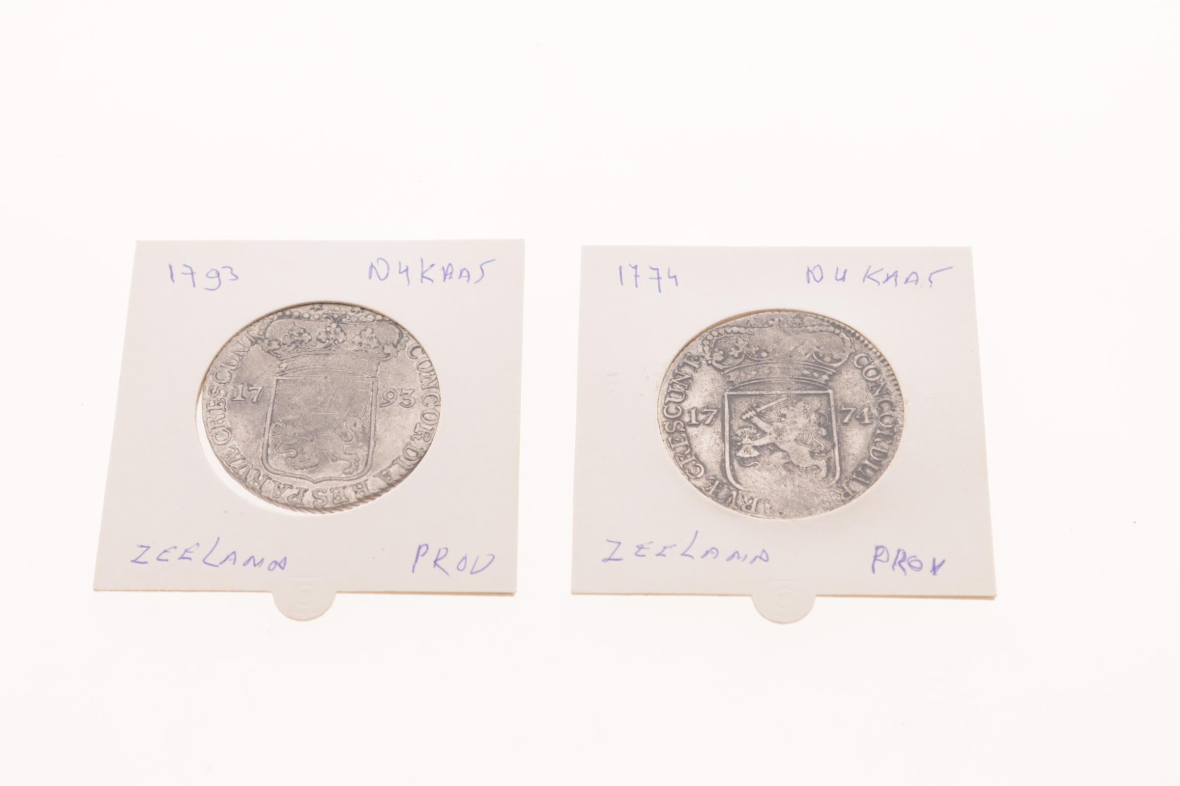 2 Zilveren provinciale dukaten, 1774 en 1793, diam.4 cm.,  bodemvondst