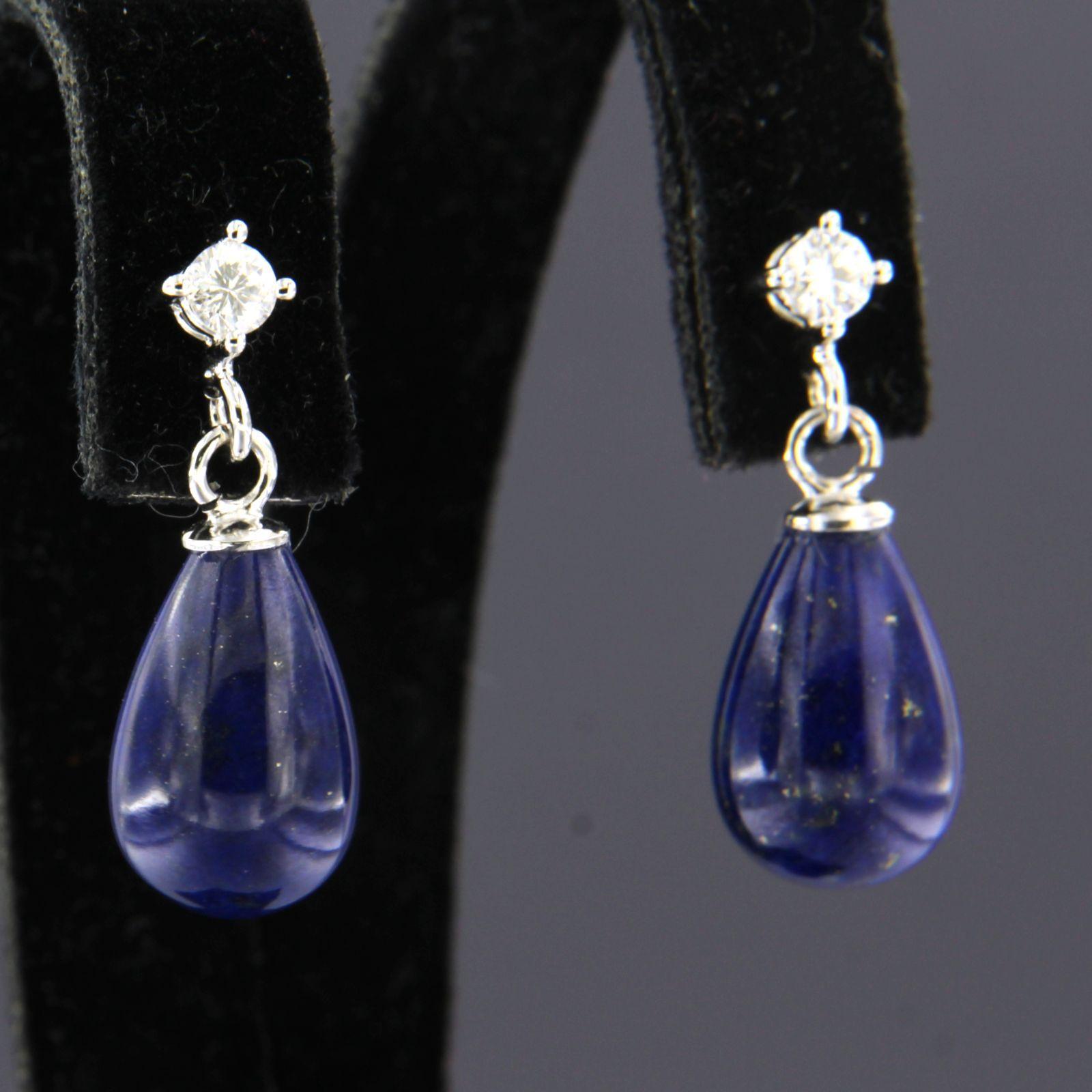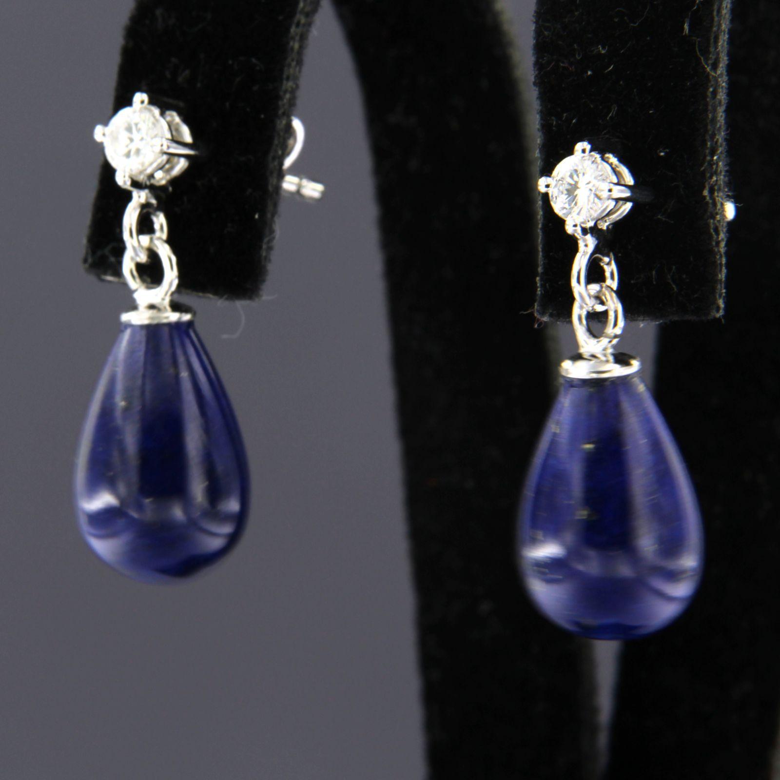 18 Kt. witgouden oorhangers bezet met lapis lazuli en briljant geslepen diamant tot. 0,36ct - F/G - VS/SI