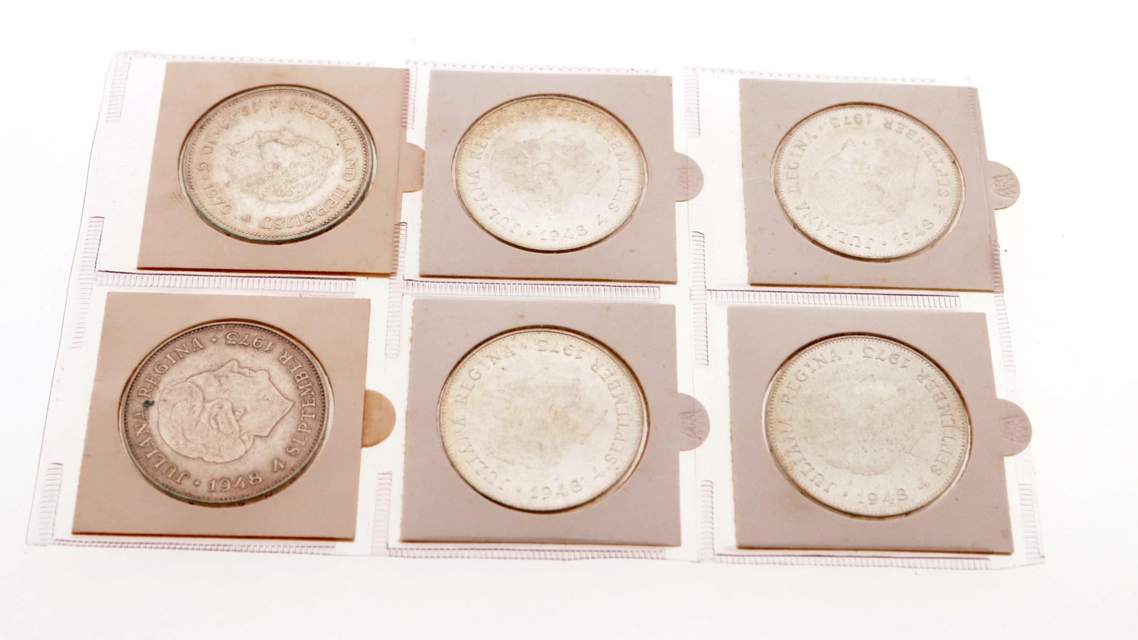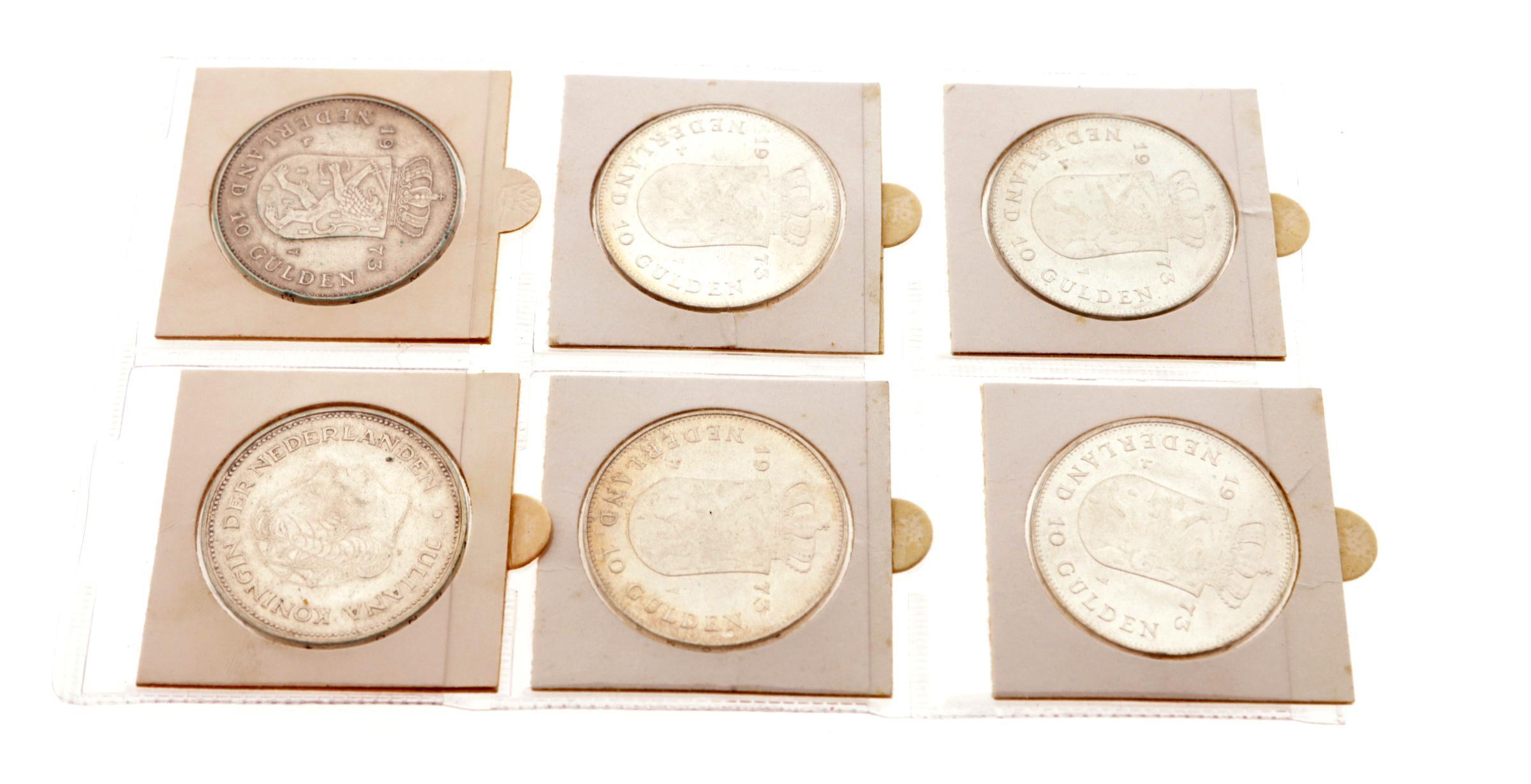 Zes 10 gulden muntstukken, Koningin Juliana 1948, 1973