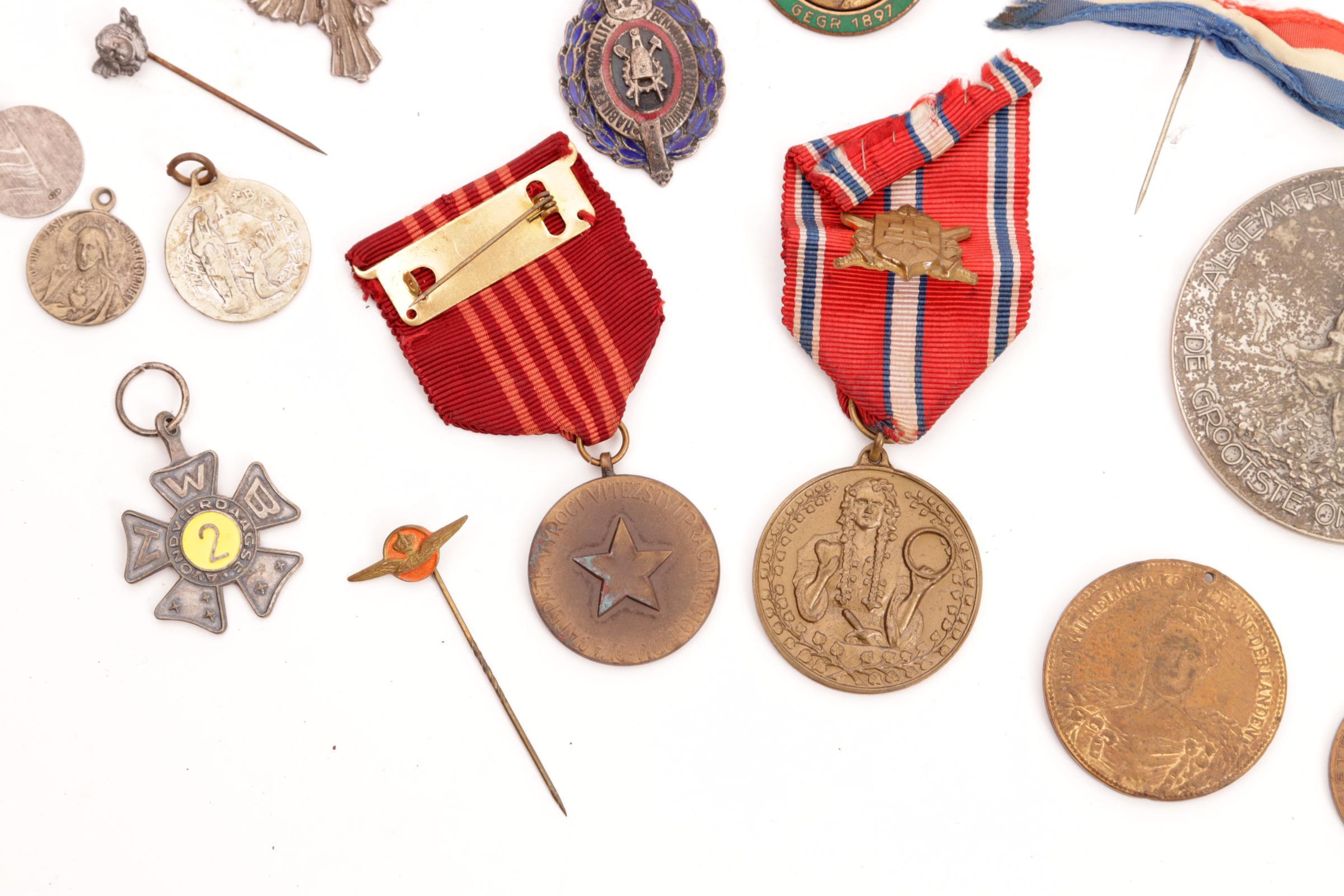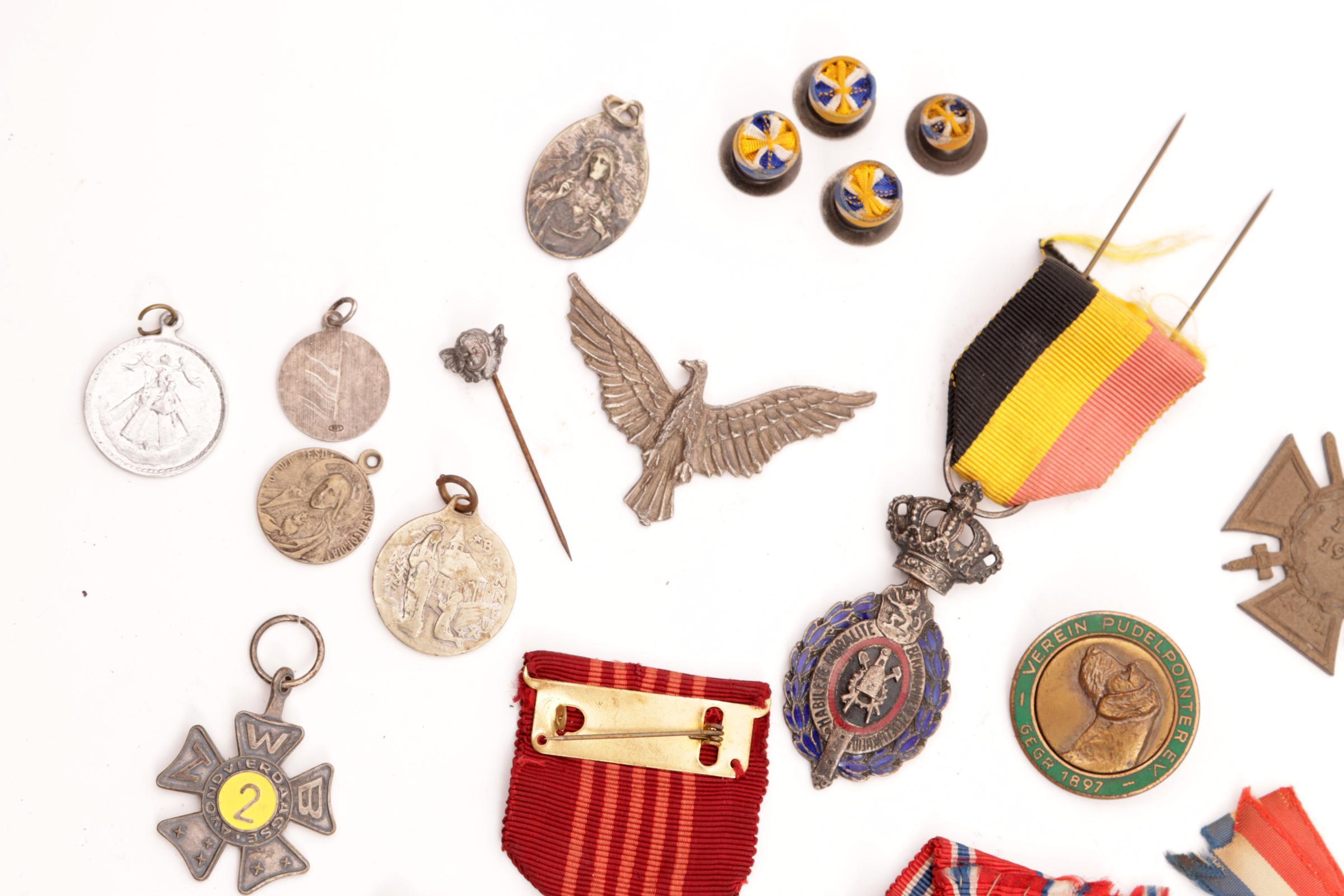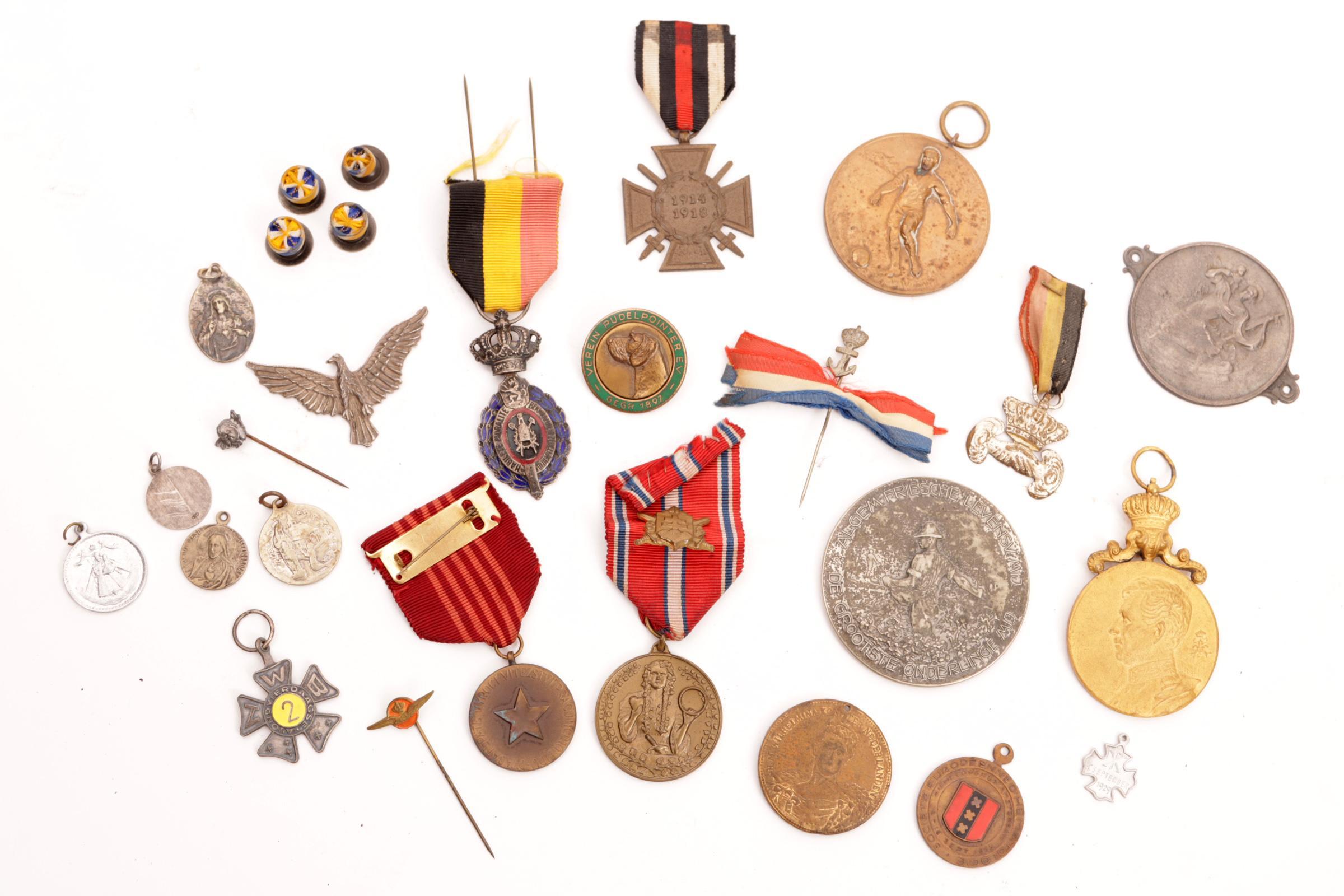 Kistje met inhoud van insignes en penningen w.o. zilver