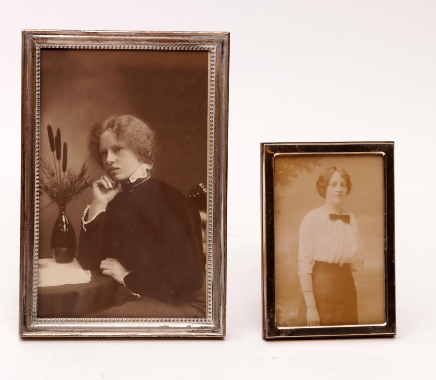 Twee 1e gehalte zilveren fotolijsten, 15 x 10,5 cm. en 10 x 7 cm.