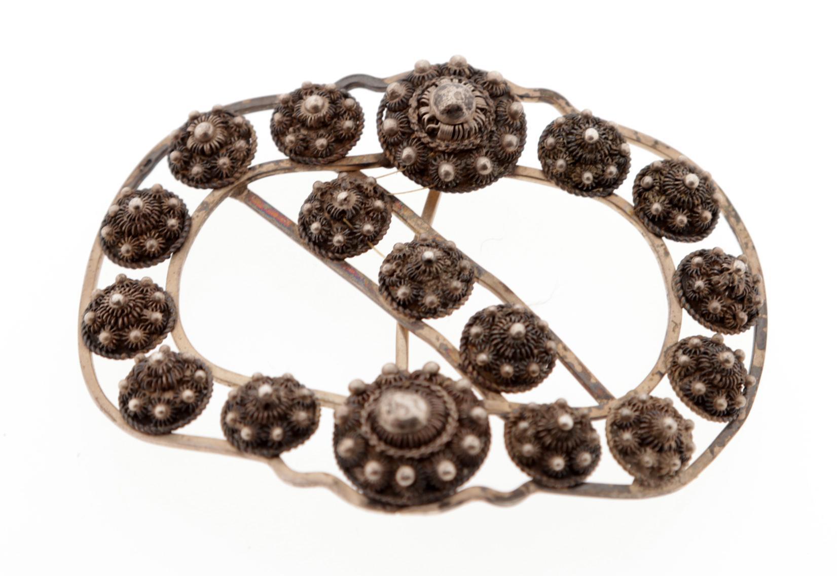 Koopje van een grote zilveren Zeeuwse knoopgesp en stel zilveren manchetknopen