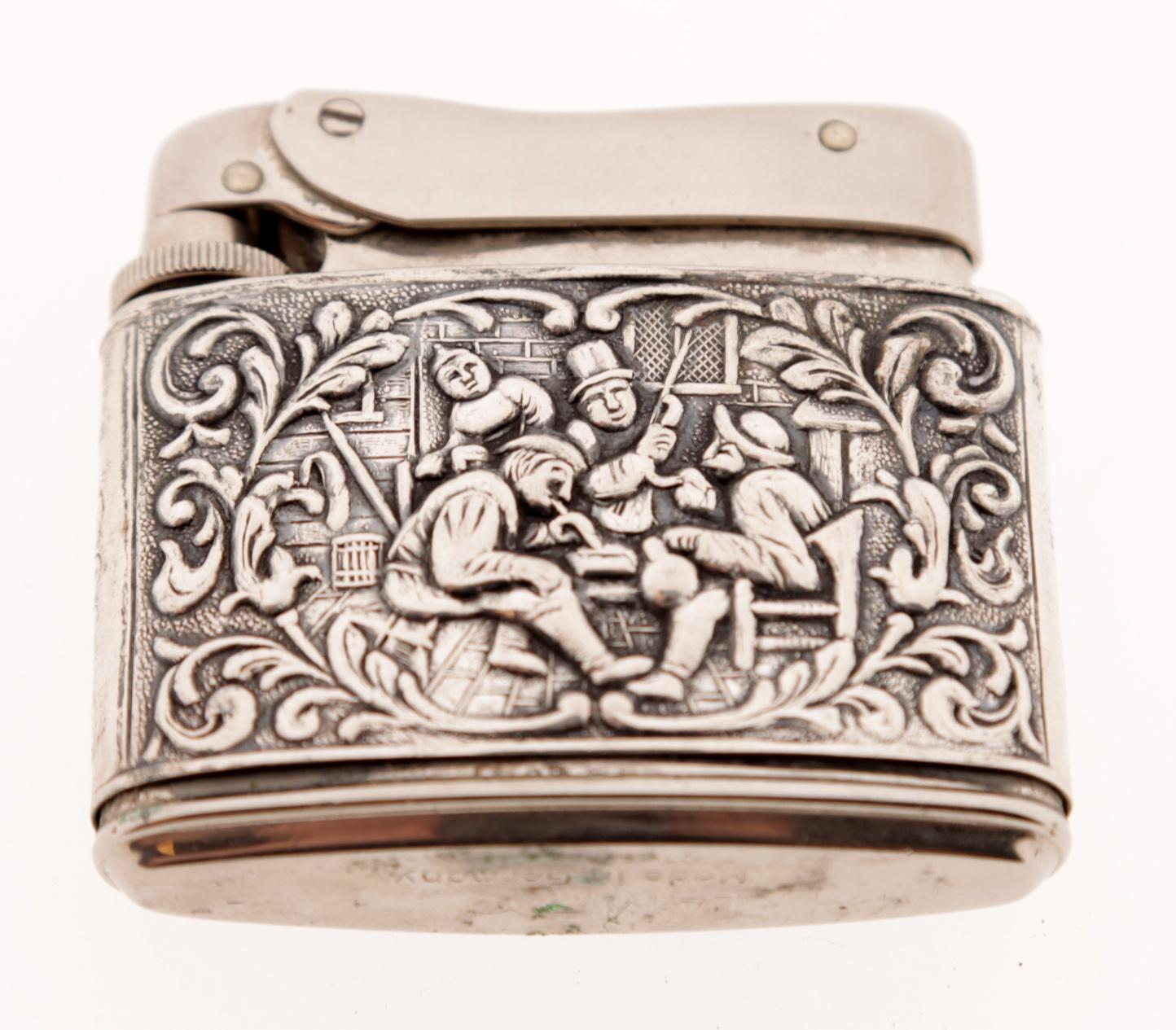 2 Zilveren strijkstokkendoosjes en zilveren aansteker
