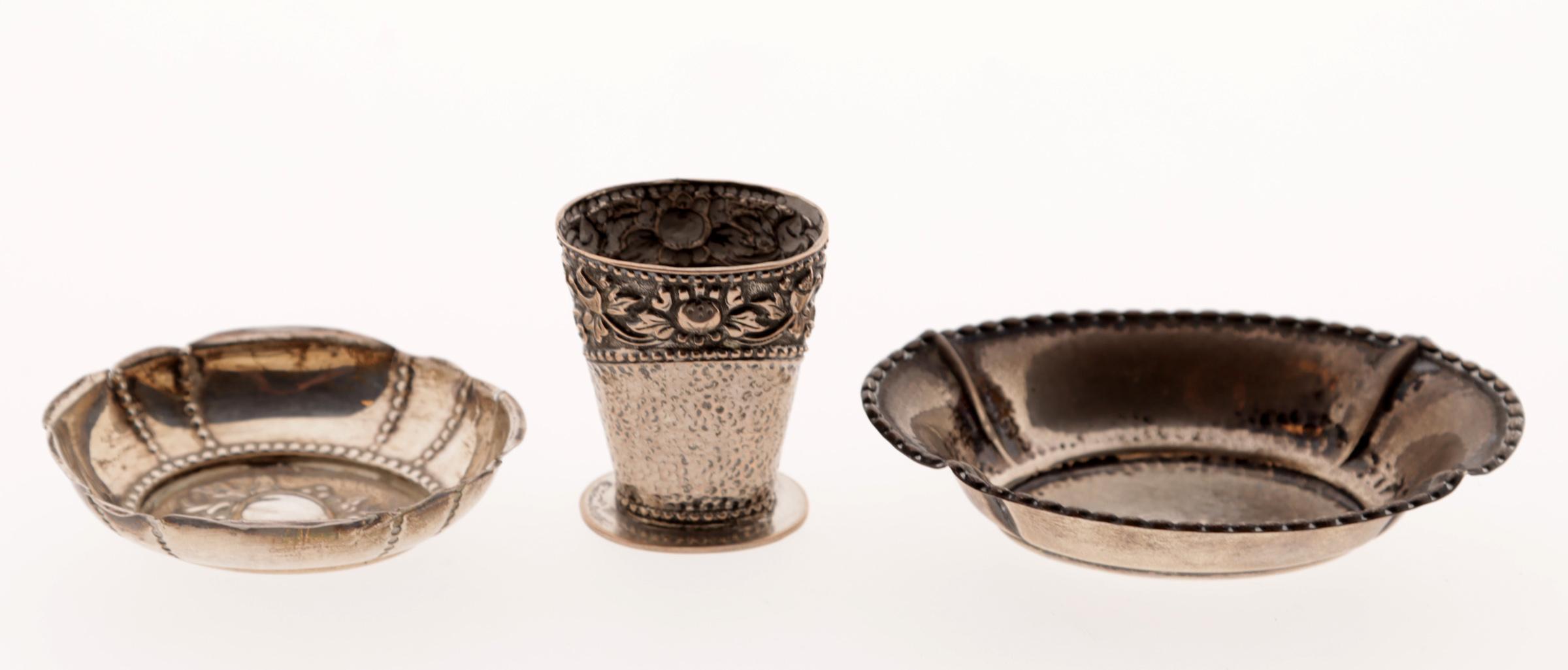Koopje van 2 zilveren schaaltjes en zilveren vaasje