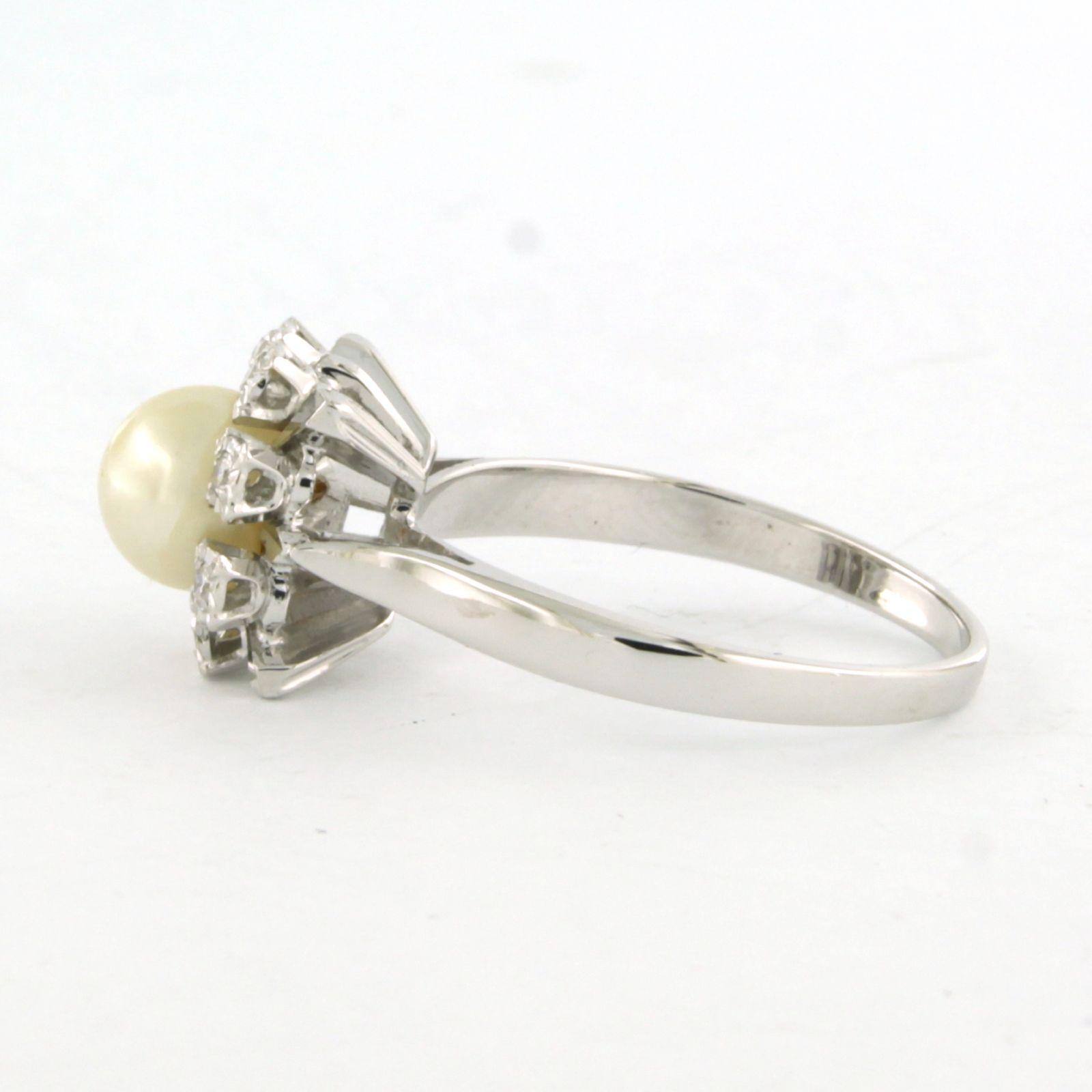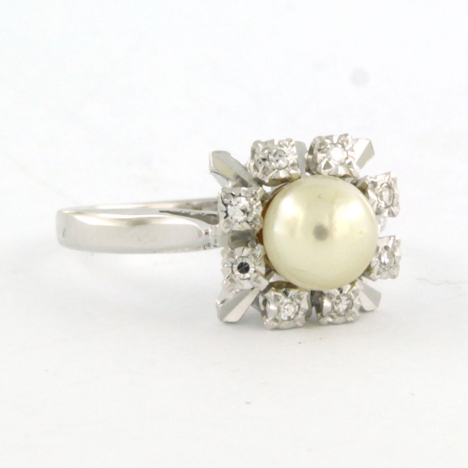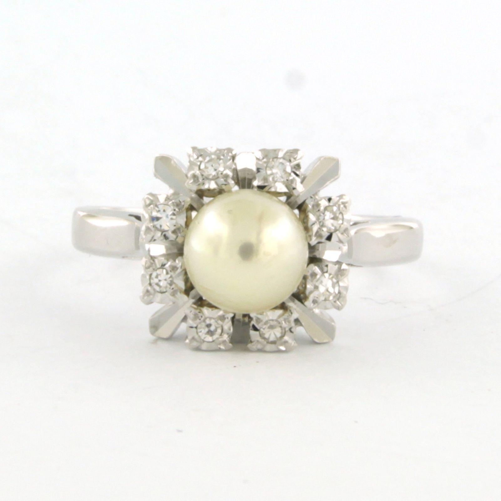 14 Kt. witgouden entourage ring met centraal een parel en als entourage single cut geslepen diamant tot. 0,05ct - F/G - VS/SI - ringmaat 18.25 (57)