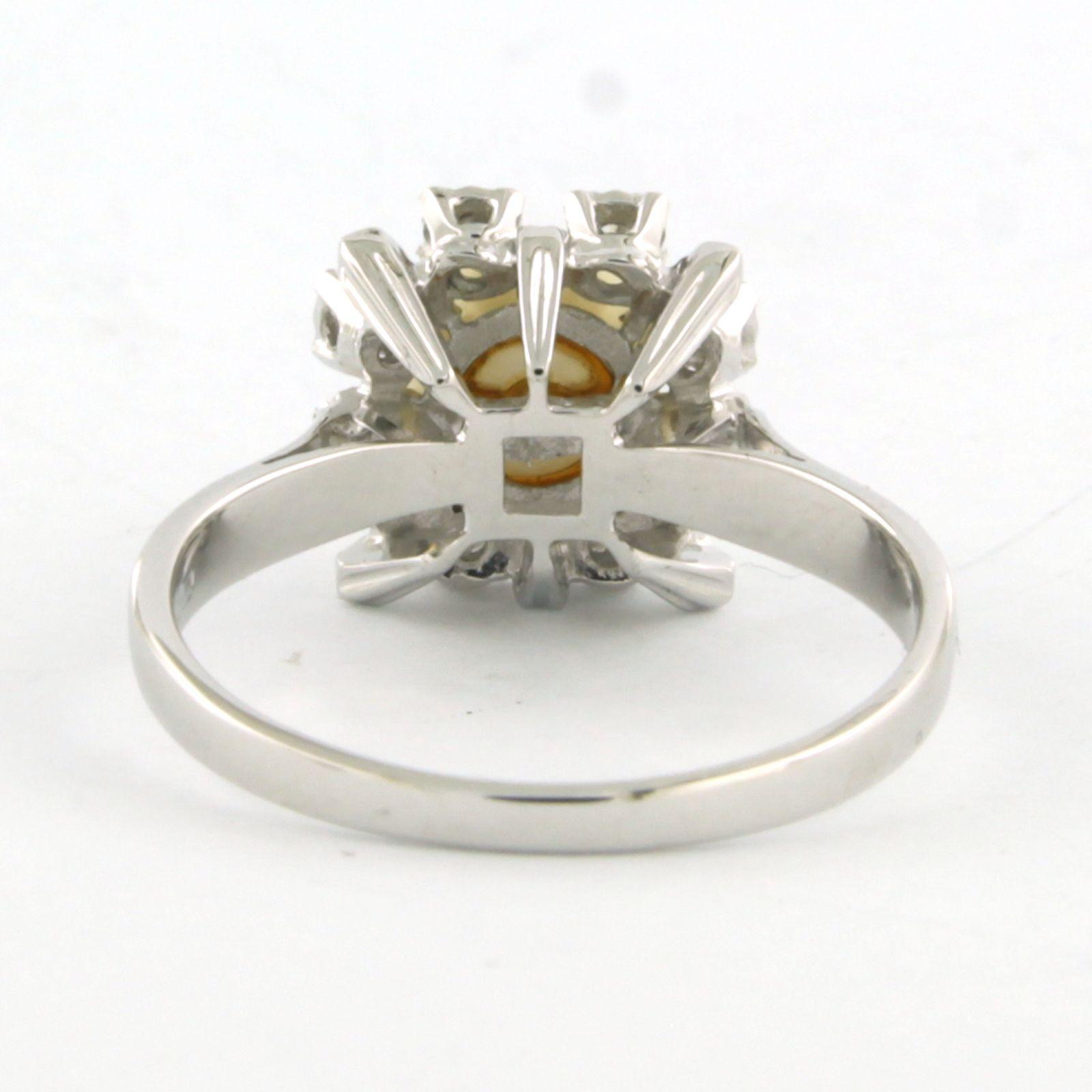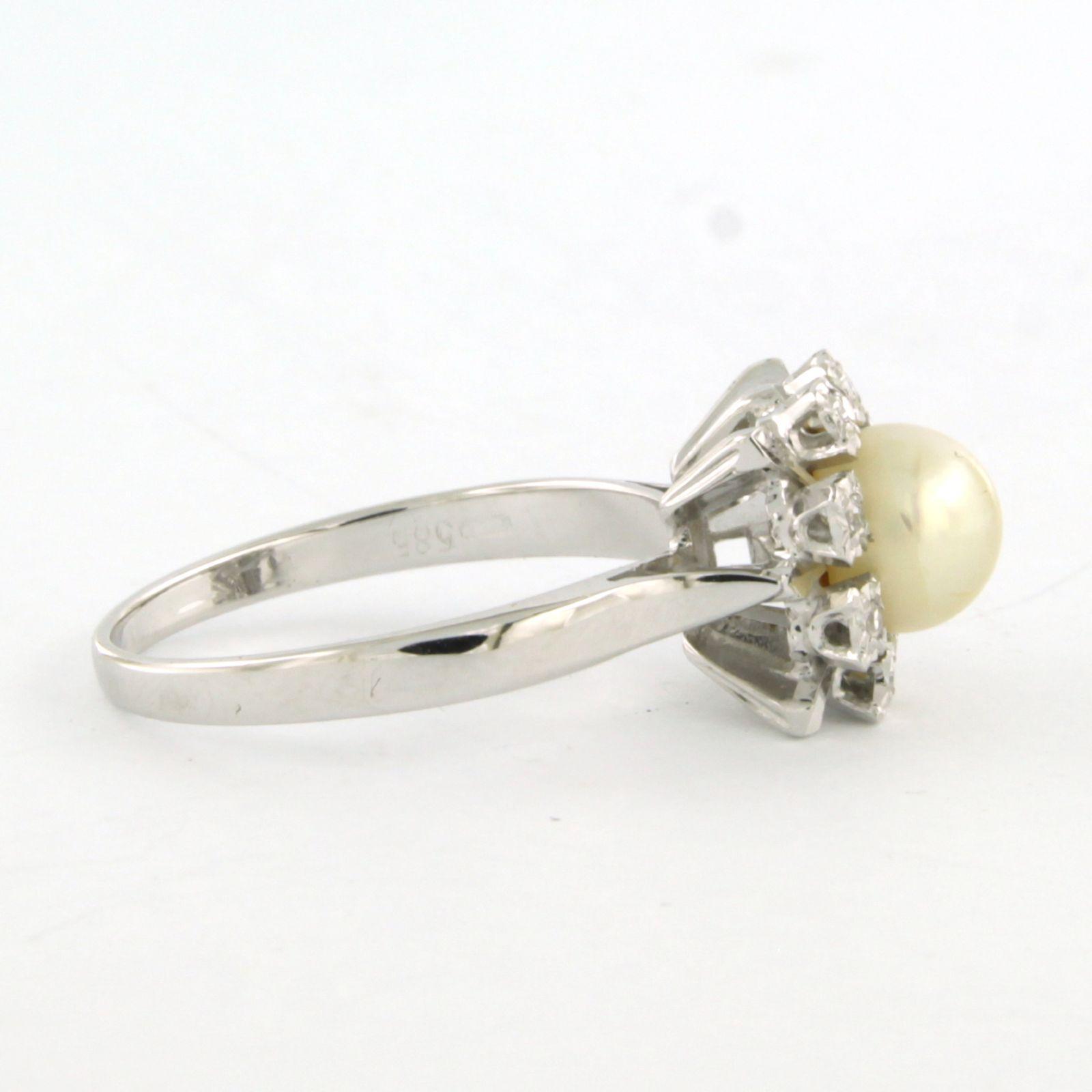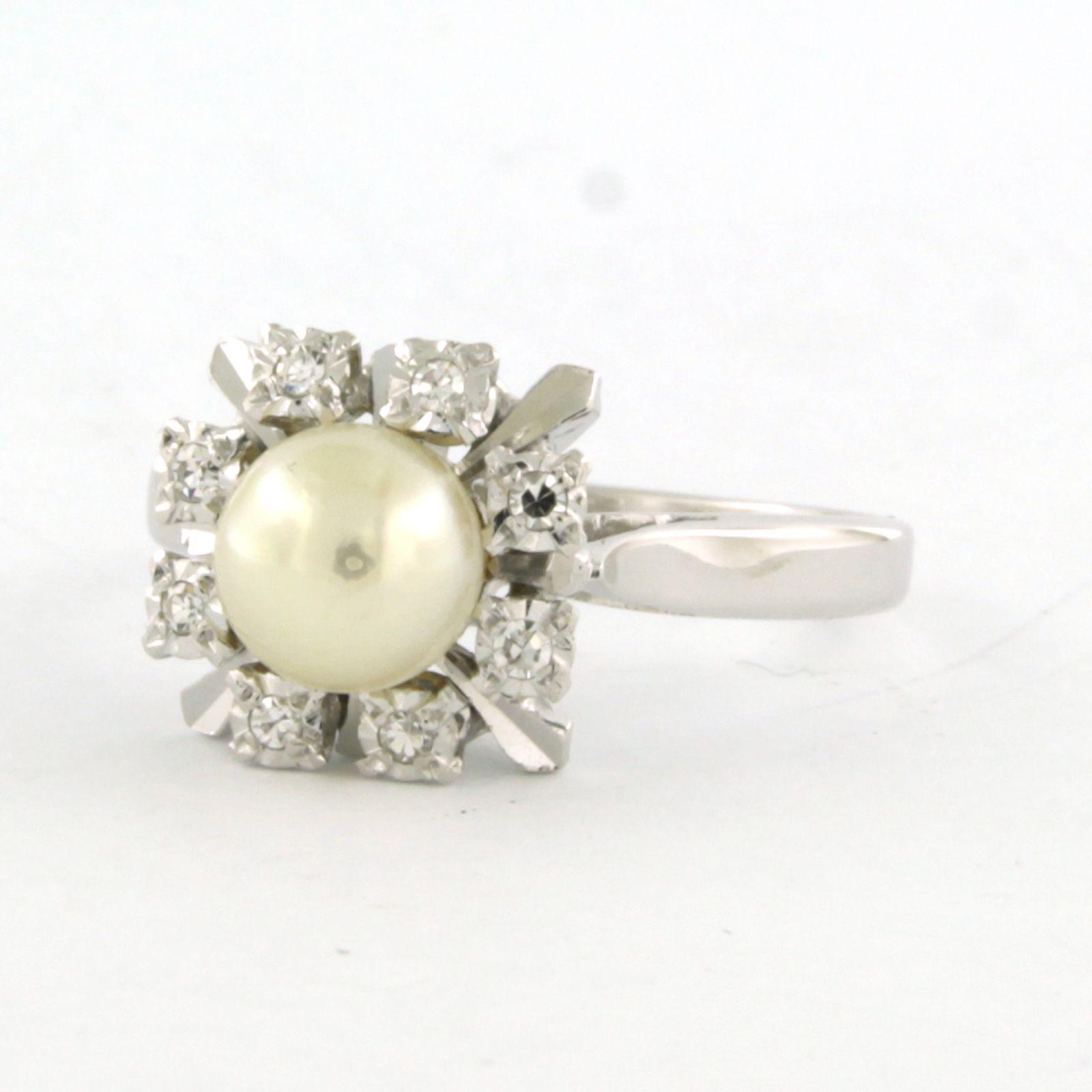 14 Kt. witgouden entourage ring met centraal een parel en als entourage single cut geslepen diamant tot. 0,05ct - F/G - VS/SI - ringmaat 18.25 (57)