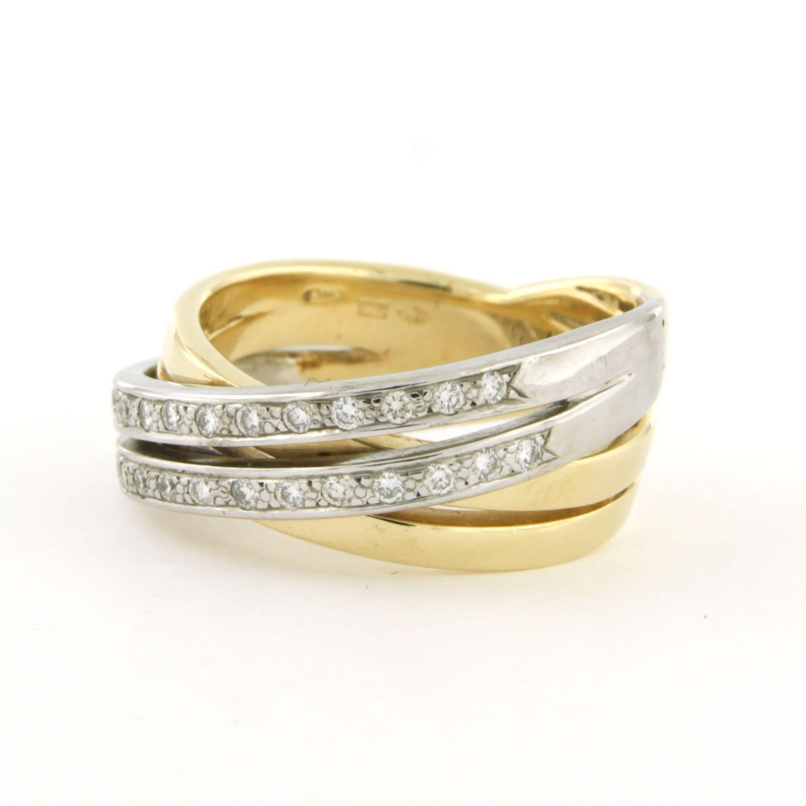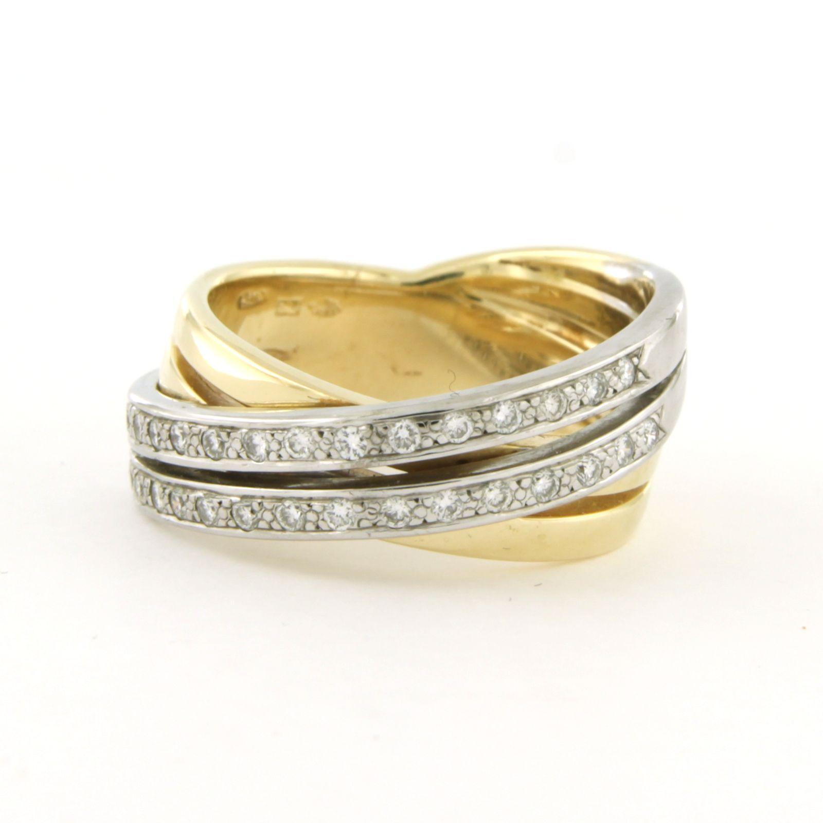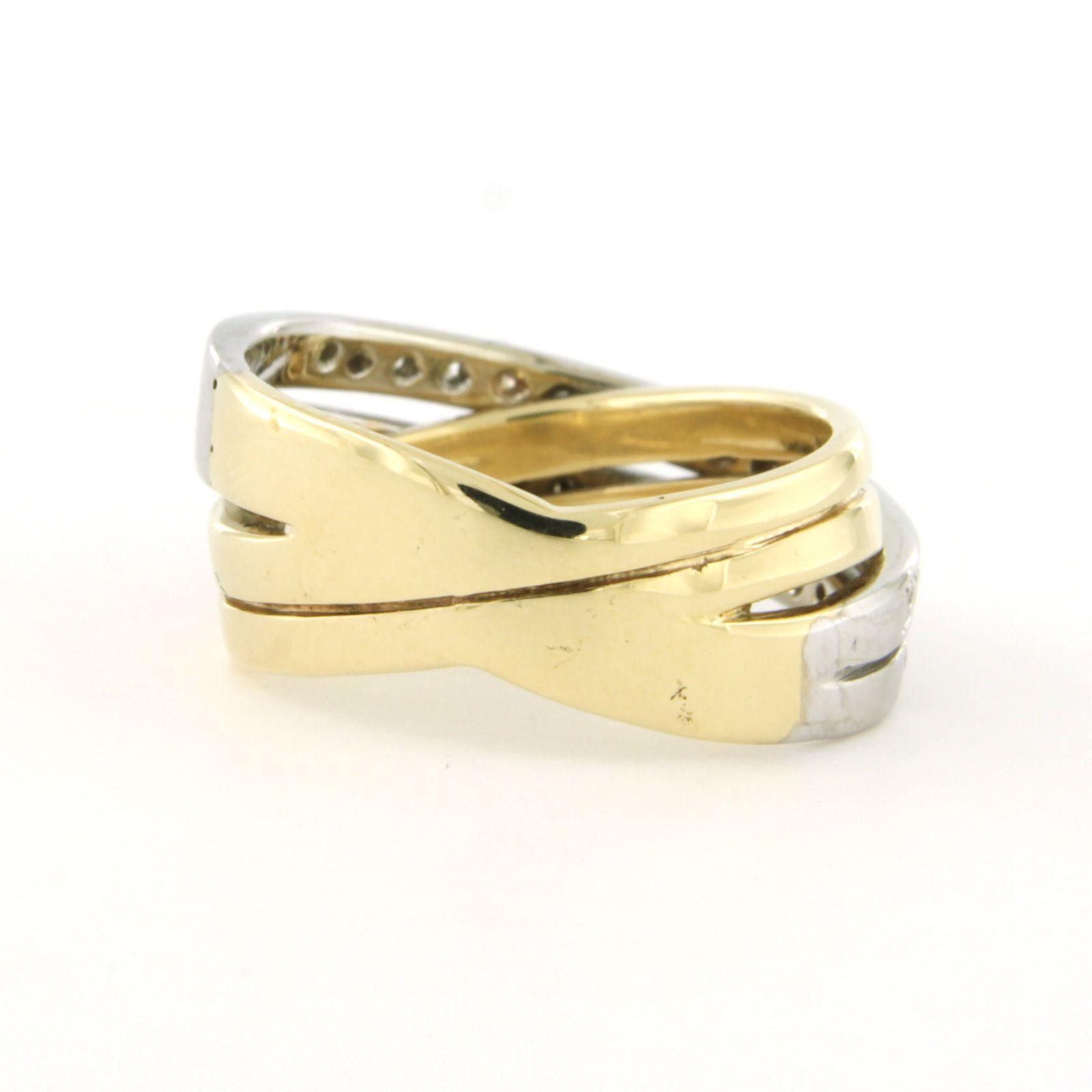 14 Kt. bicolour gouden cross-over ring bezet met briljant geslepen diamanten totaal circa 0.33ct – F/G - VS/SI - ringmaat 17.5(55)