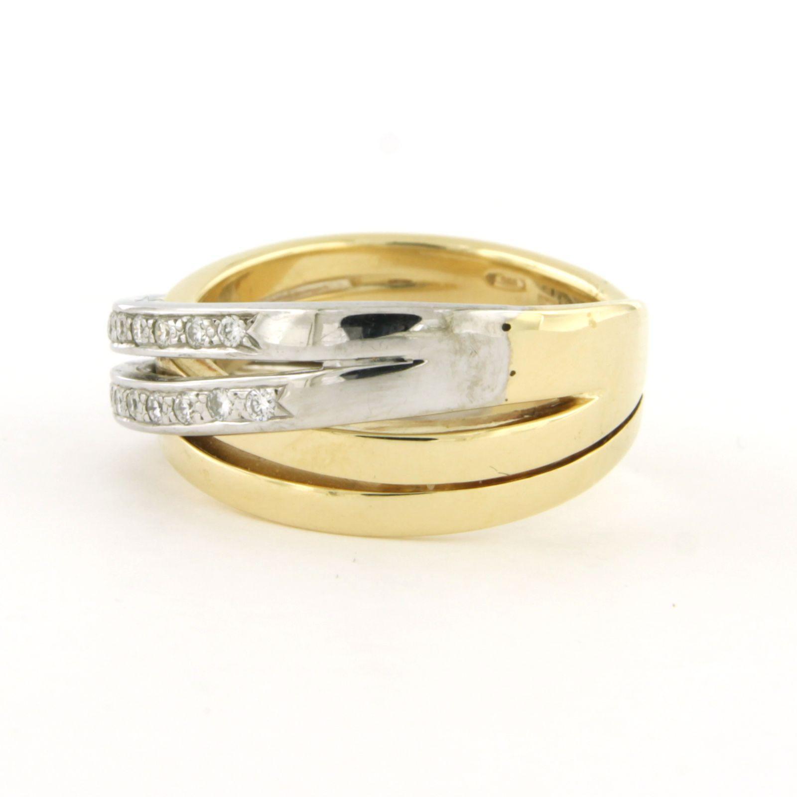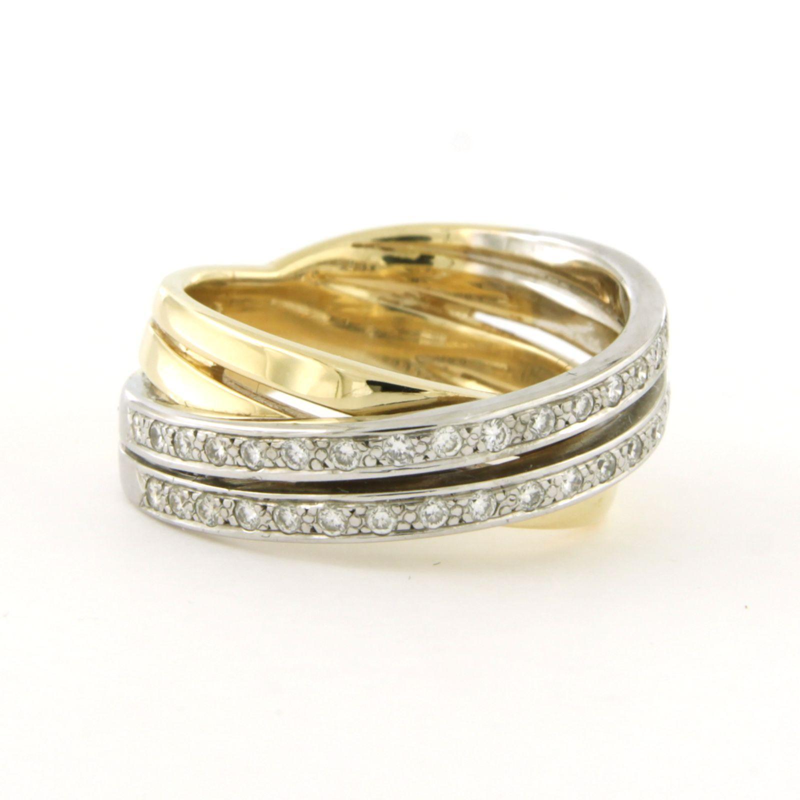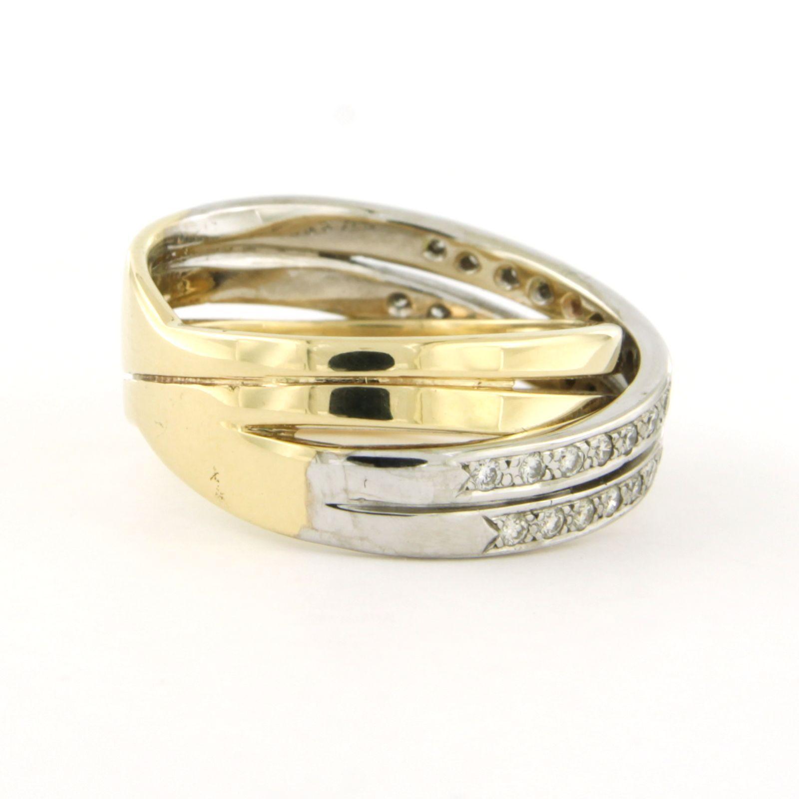 14 Kt. bicolour gouden cross-over ring bezet met briljant geslepen diamanten totaal circa 0.33ct – F/G - VS/SI - ringmaat 17.5(55)