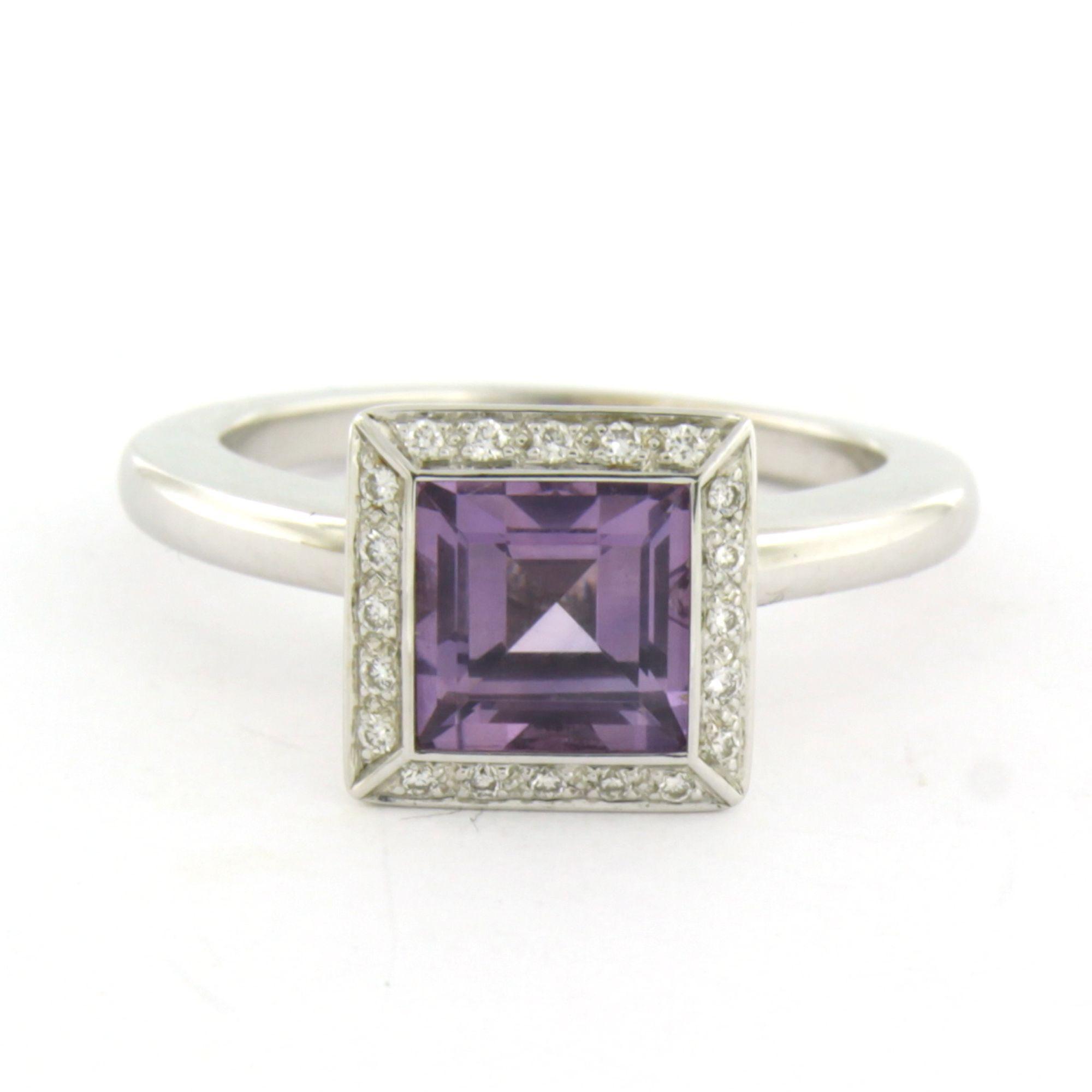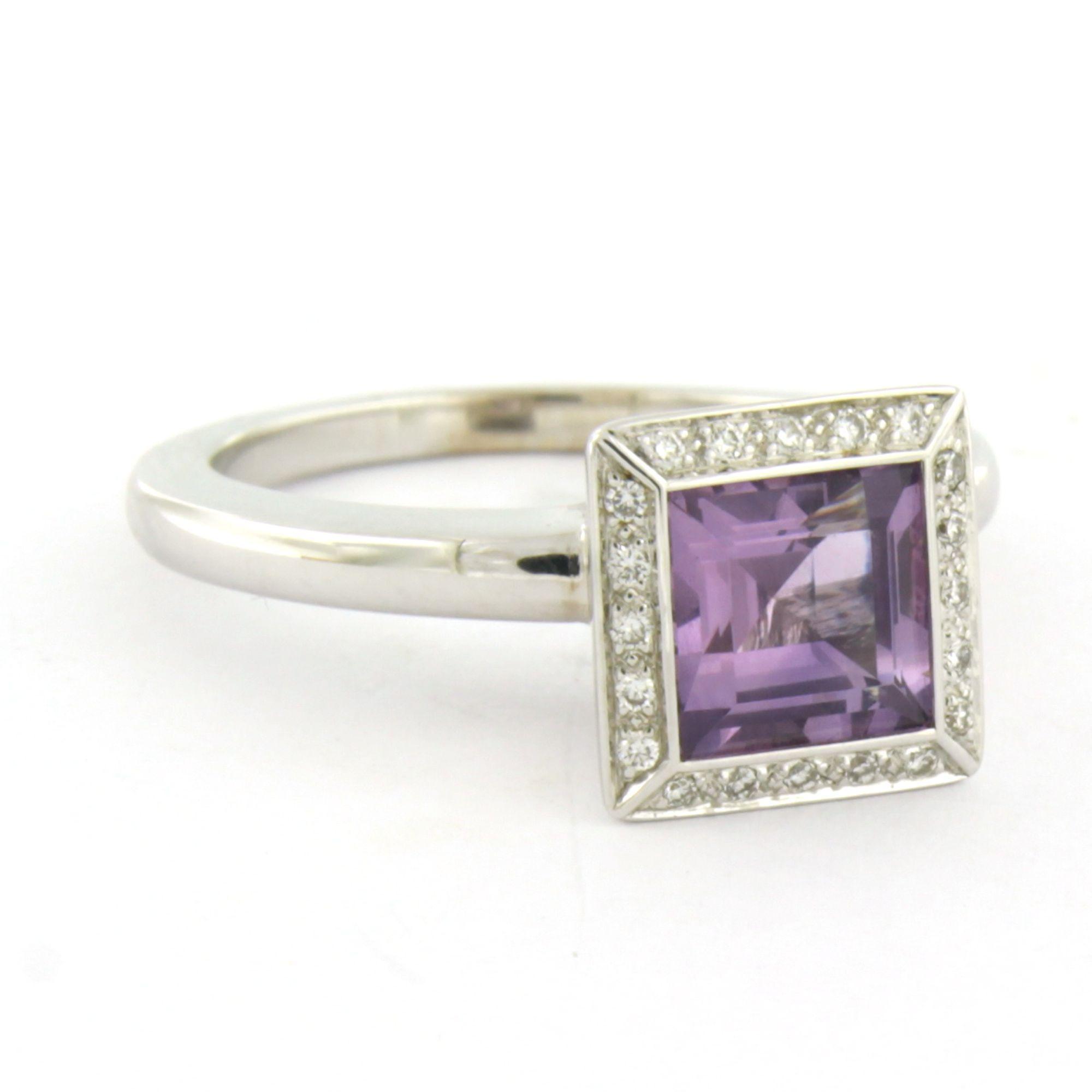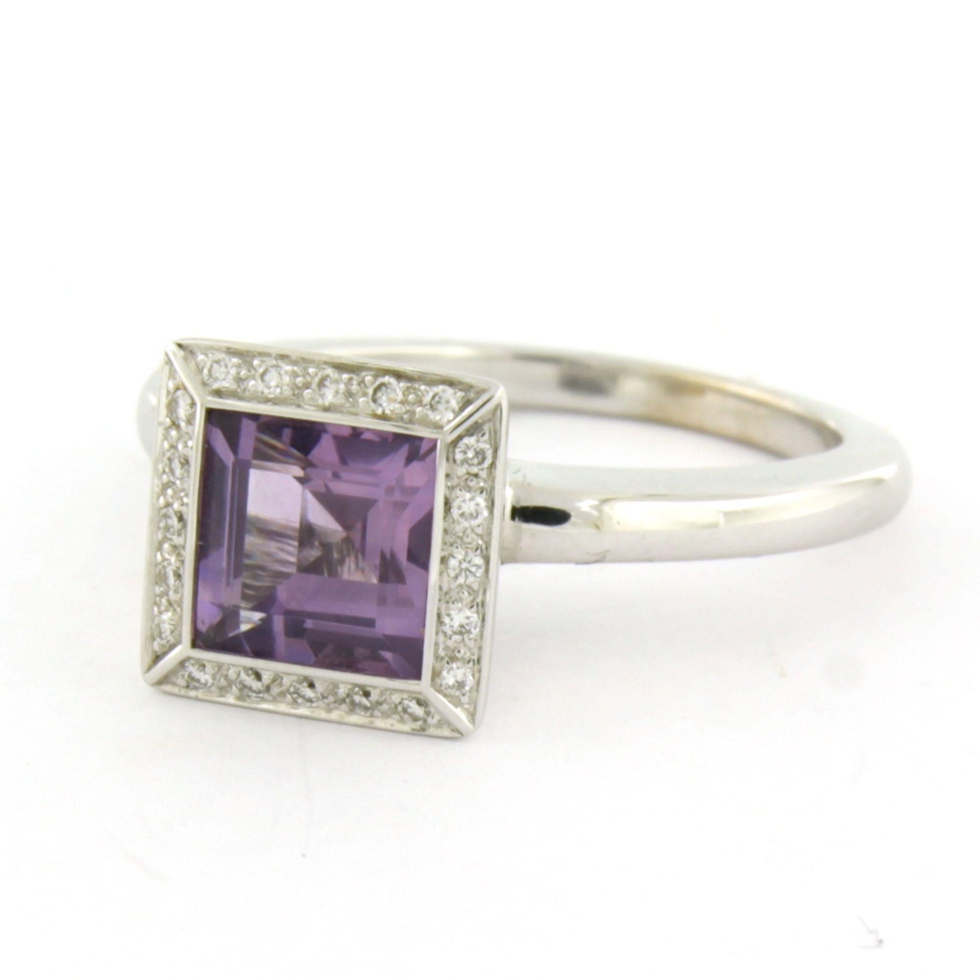 18 Kt. witgouden ring bezet met centraal een amethist en erom heen briljant geslepen diamant tot. 0.10ct - F/G - VS/SI - ringmaat 17.5(55)