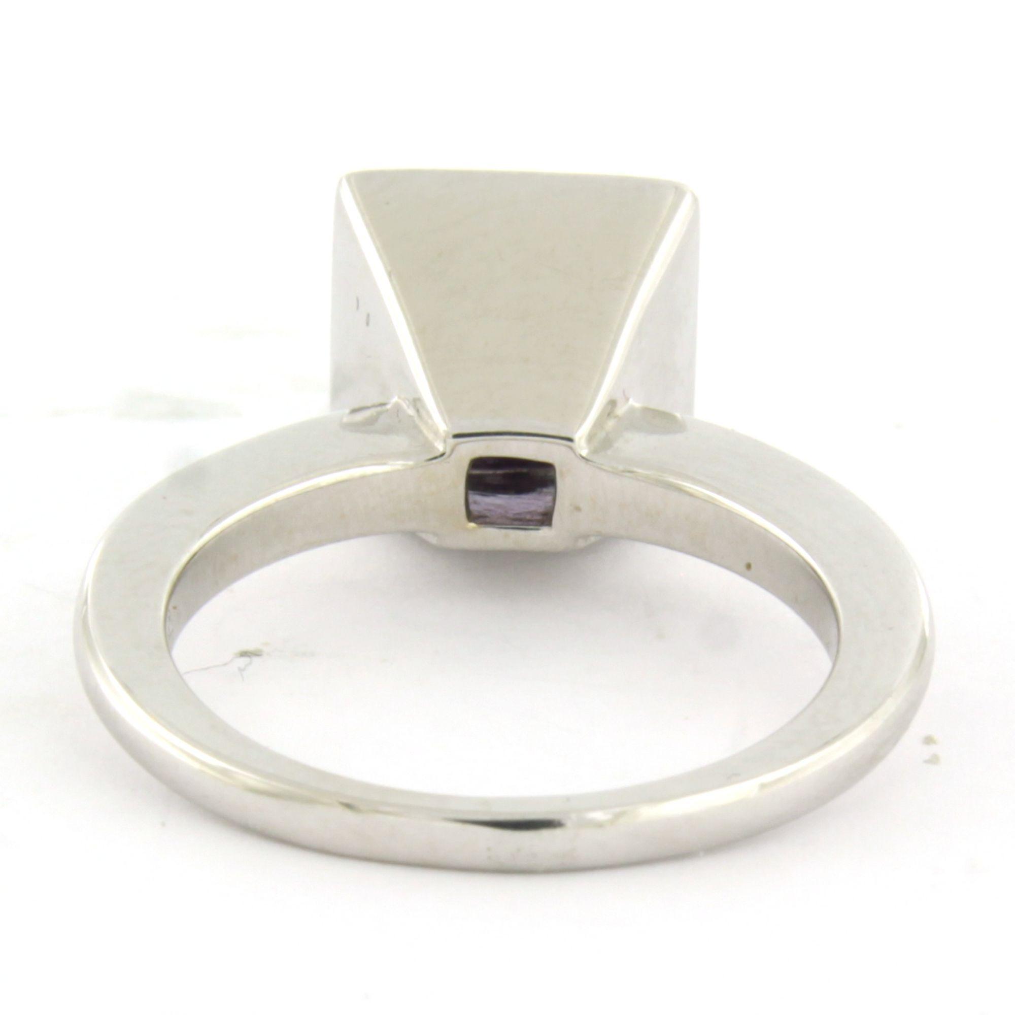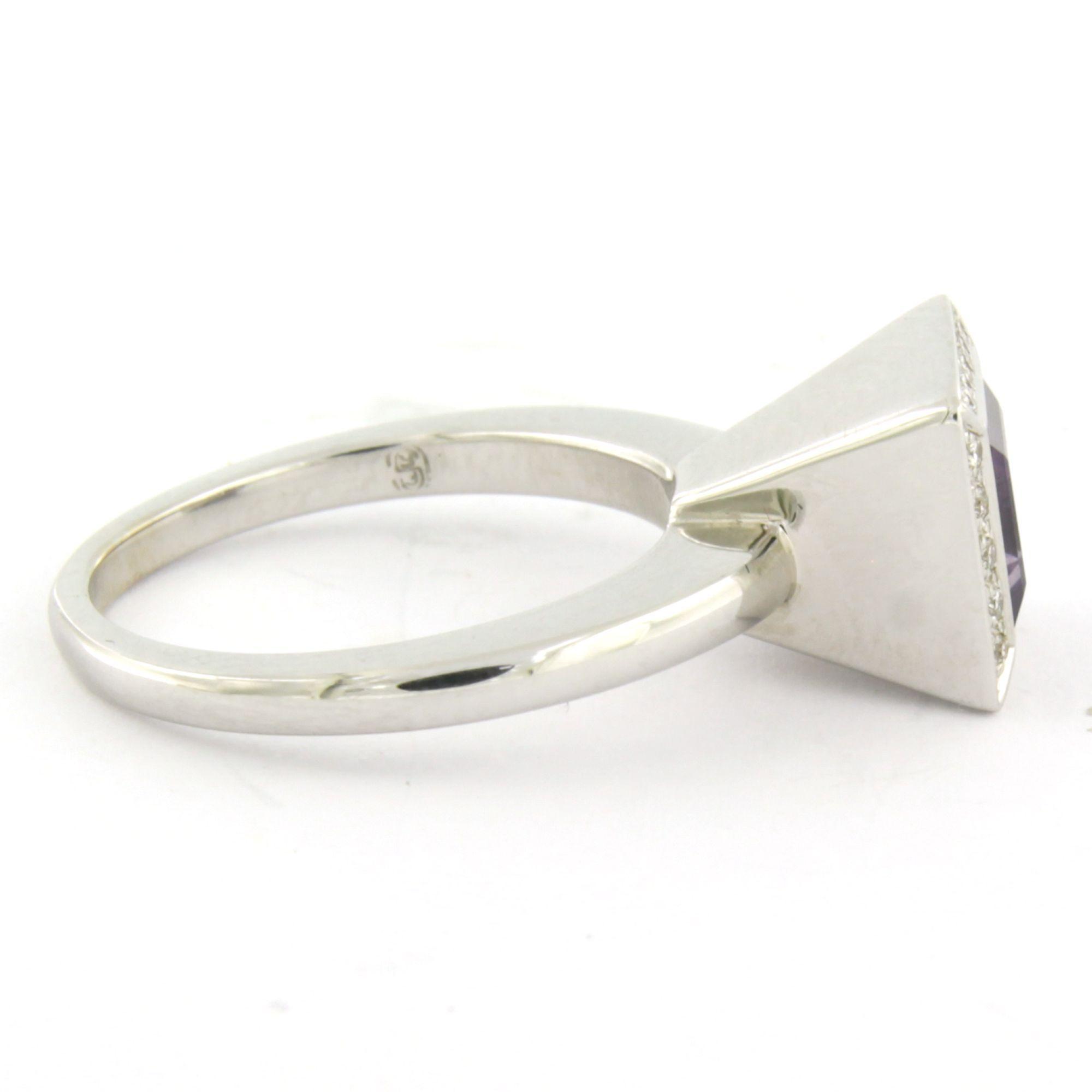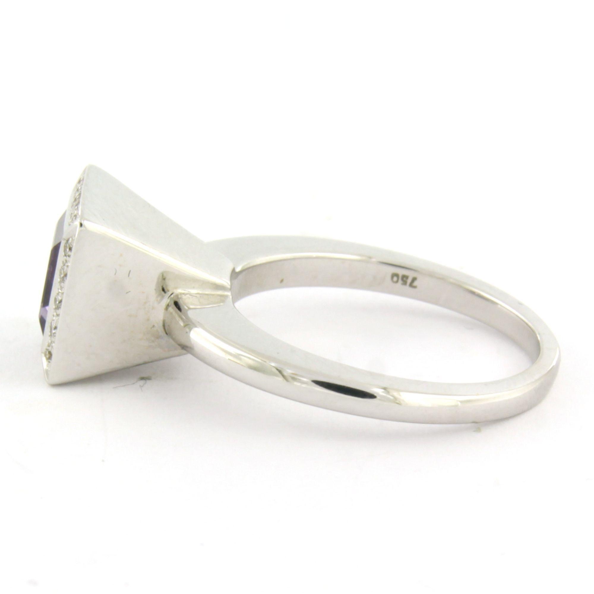 18 Kt. witgouden ring bezet met centraal een amethist en erom heen briljant geslepen diamant tot. 0.10ct - F/G - VS/SI - ringmaat 17.5(55)