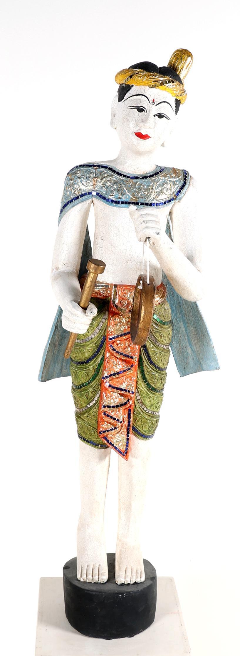 Beschilderd houten beeld van een Thaise man, h.114 cm.