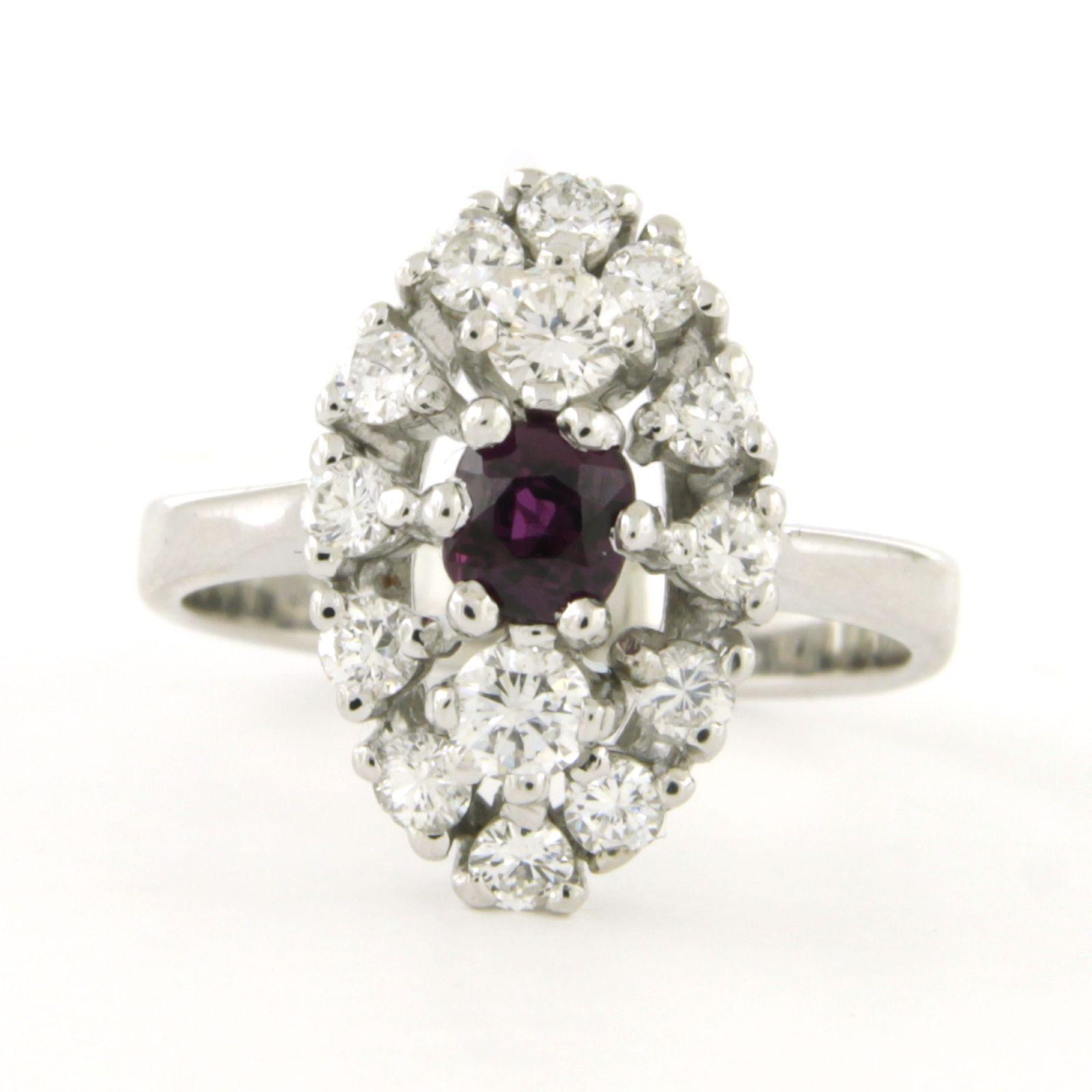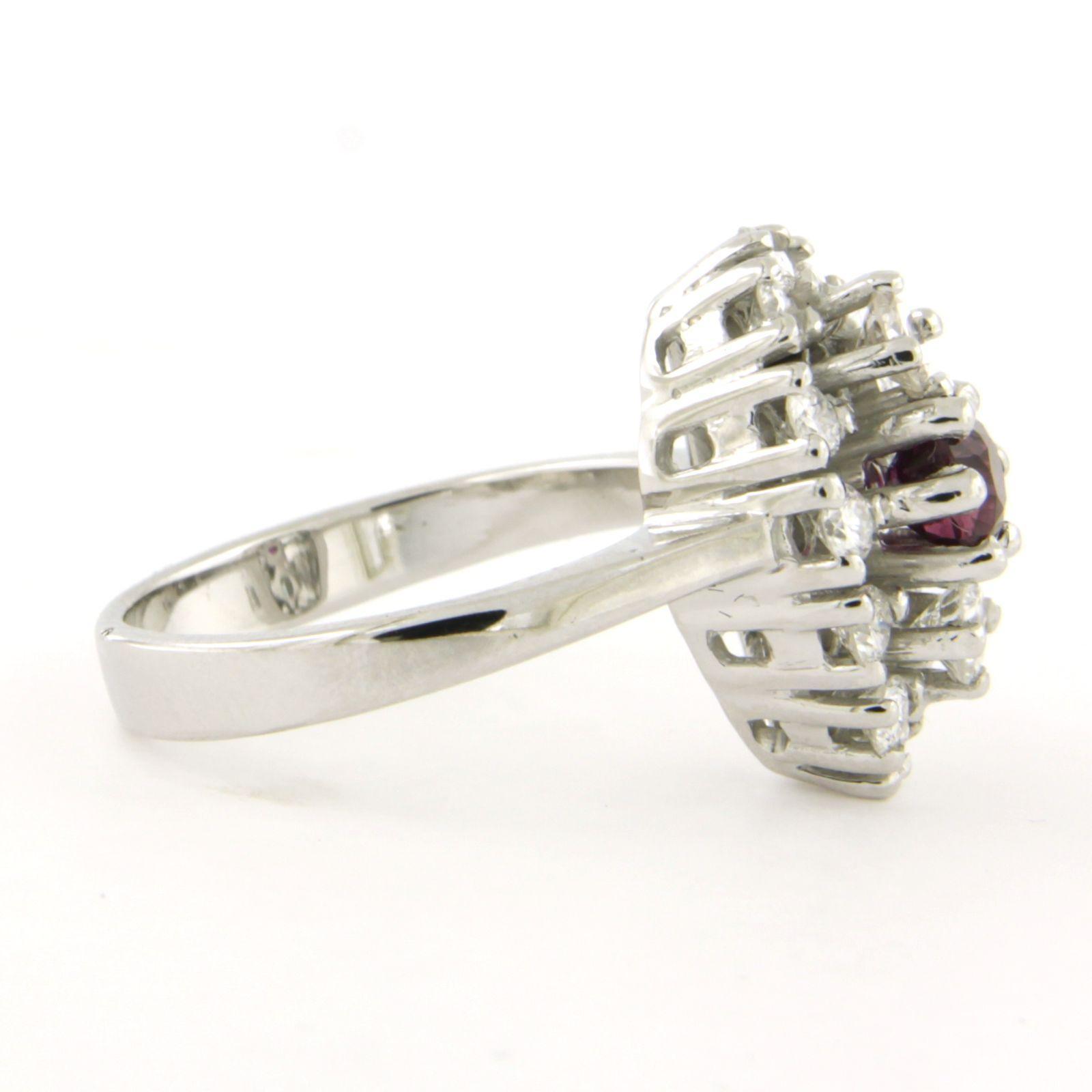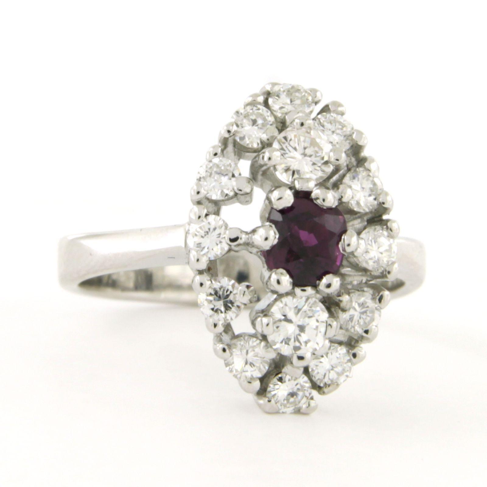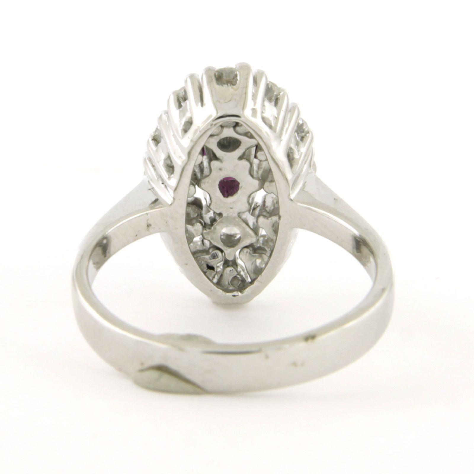 14 Kt. witgouden ring bezet met robijn en briljant geslepen diamant totaal circa 0.70ct - F/G - VS/SI - ringmaat 17(53)