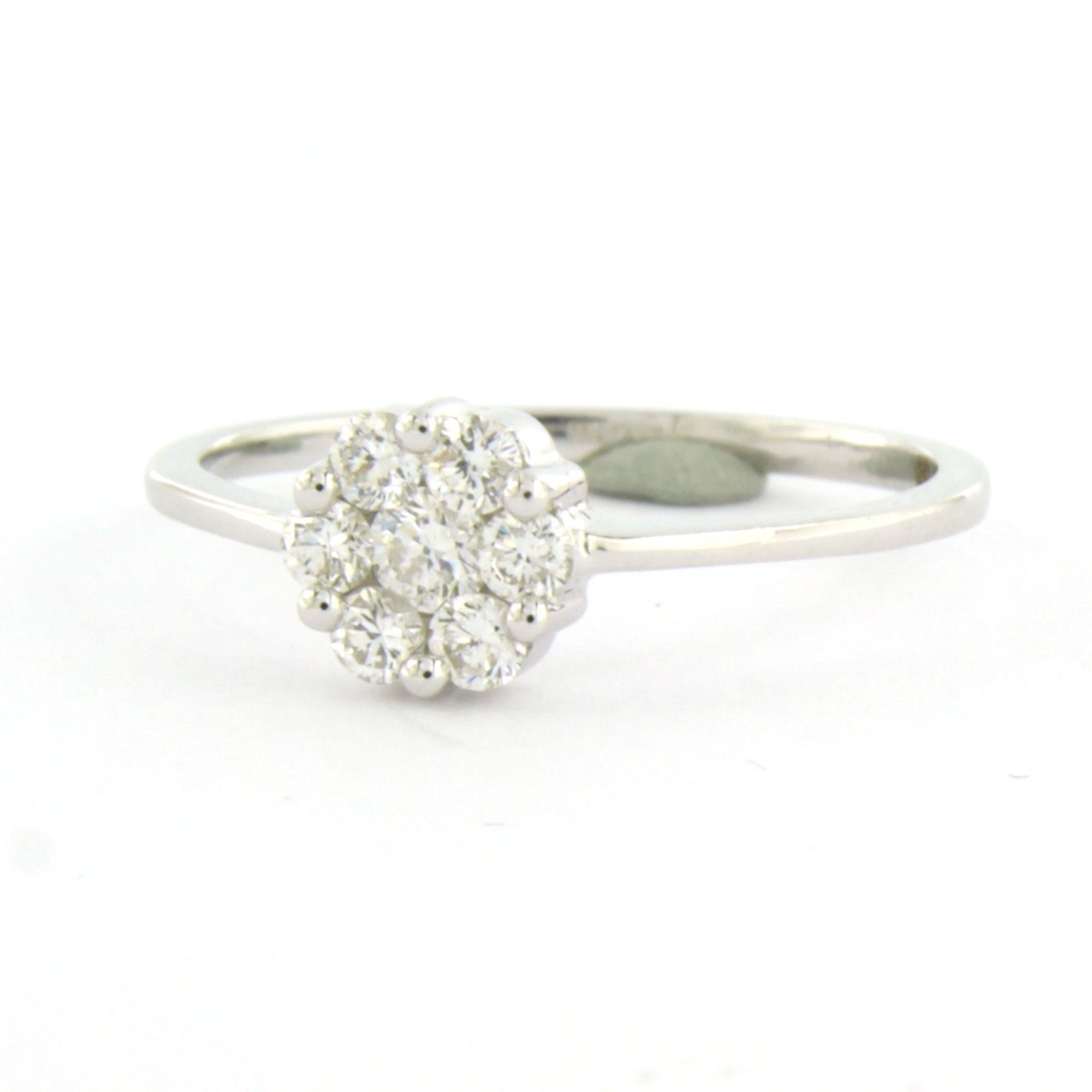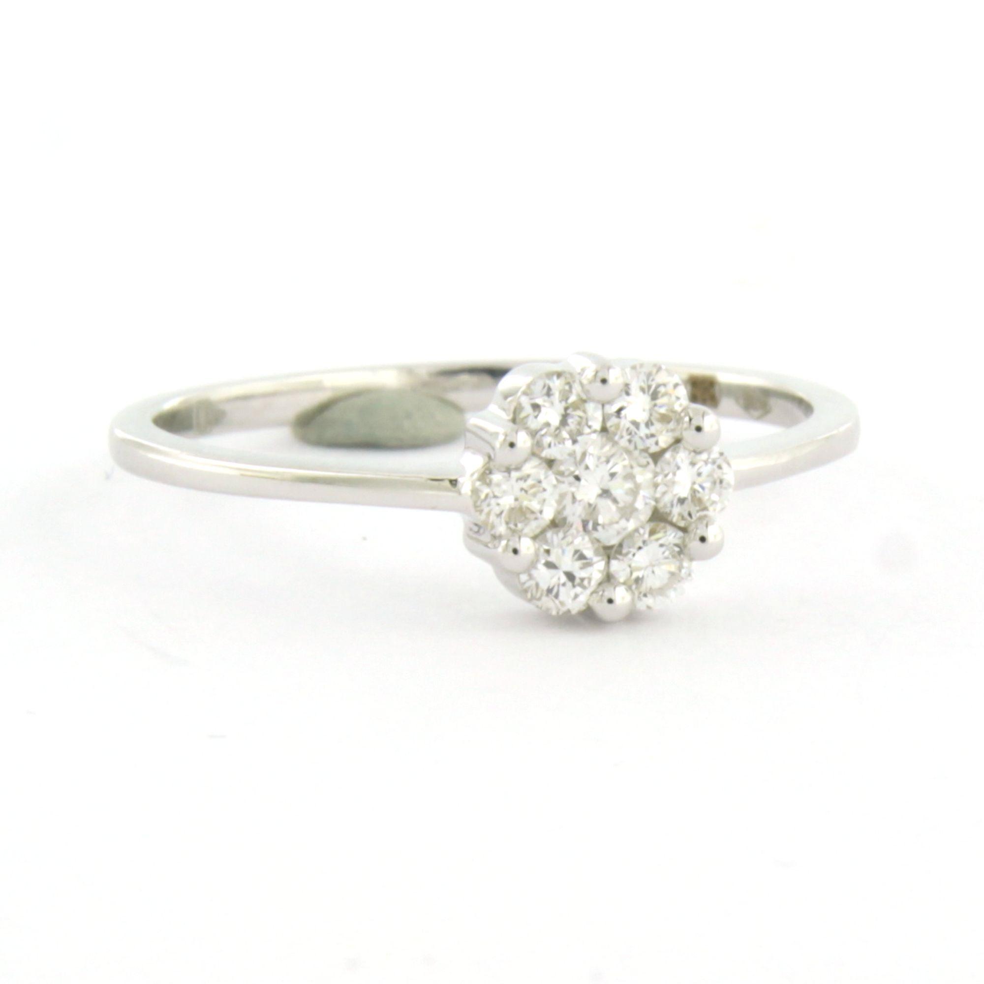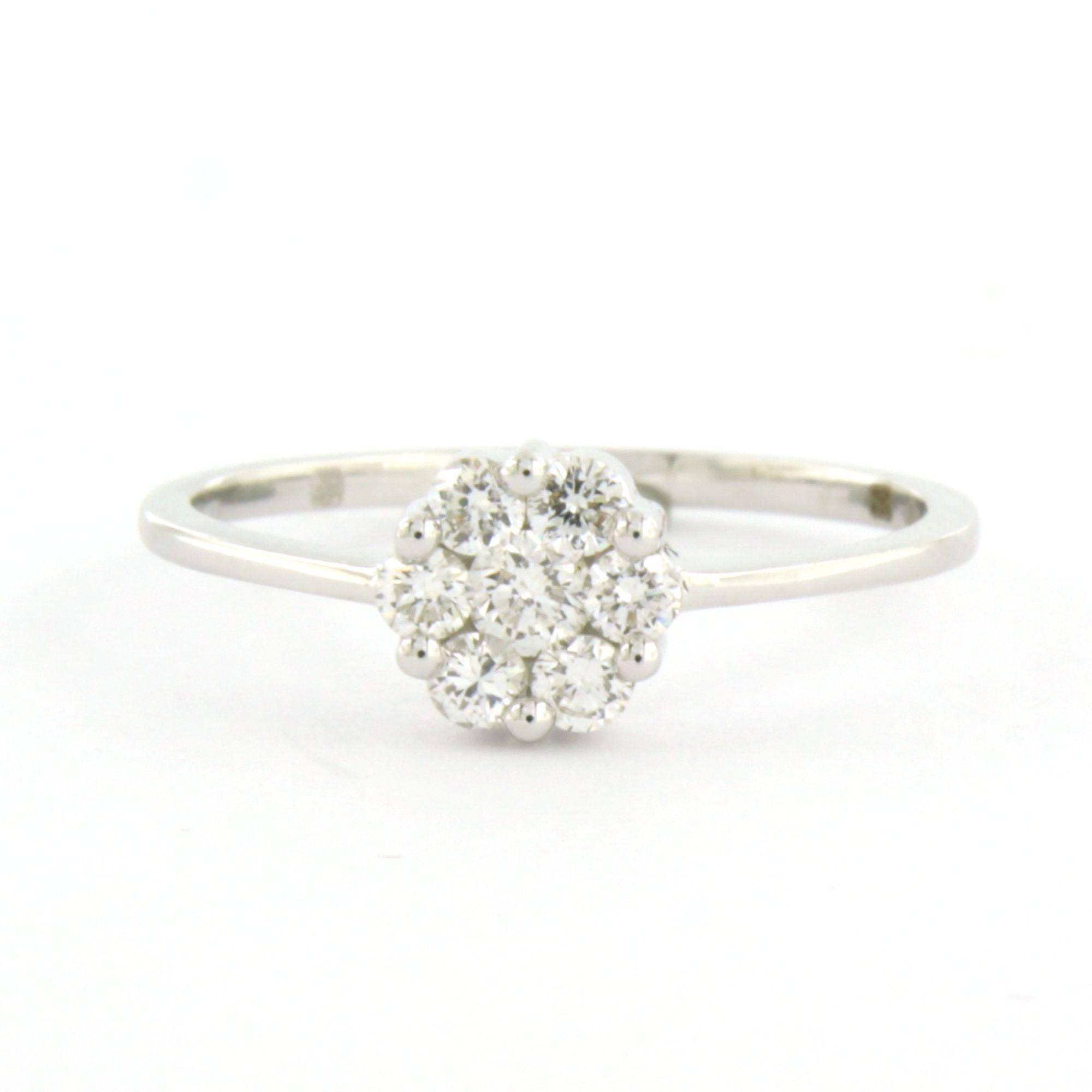18 Kt. witgouden ring bezet met briljant geslepen en single cut geslepen diamanten totaal 0,40ct - F/G - VS/SI - ringmaat 18 (57)