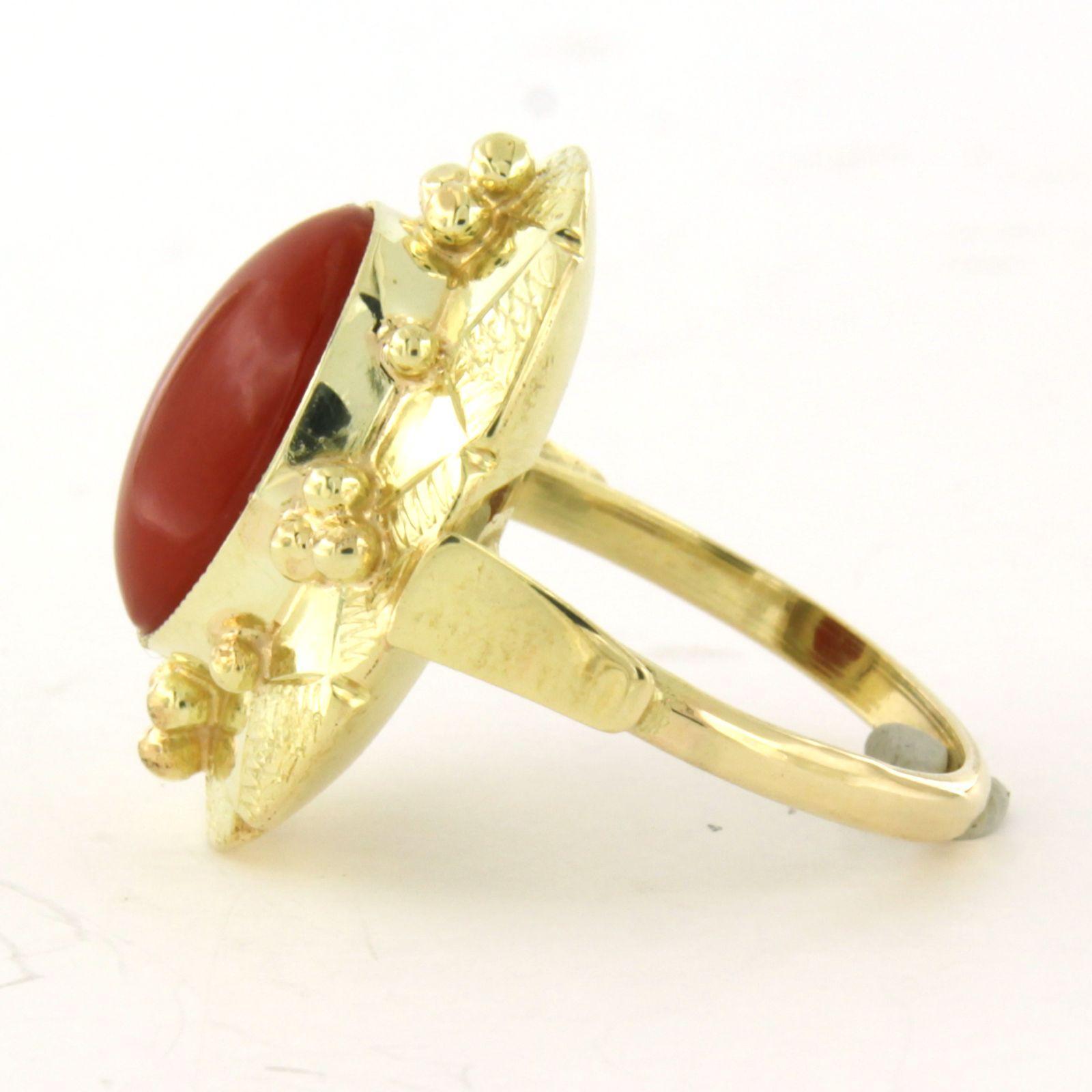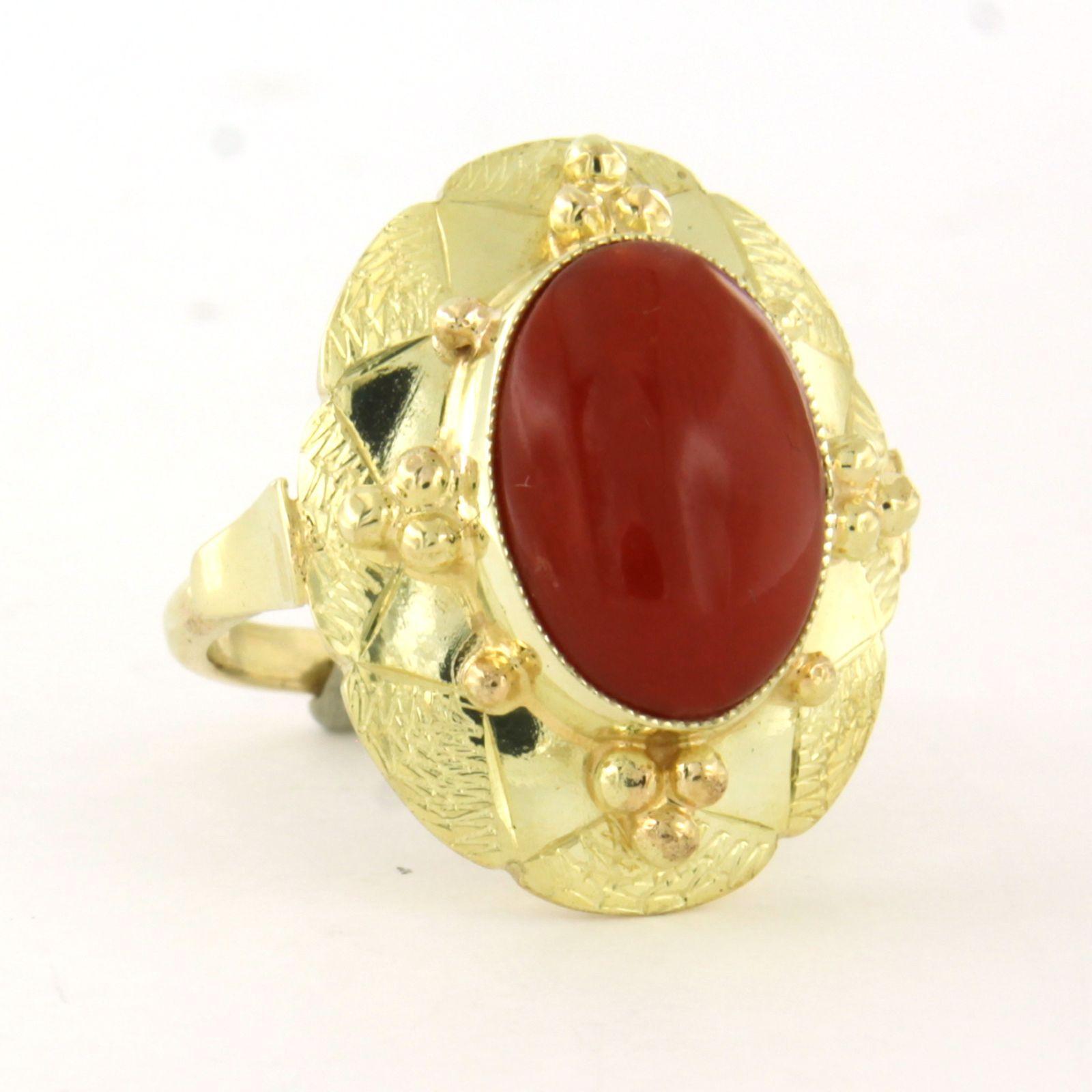 14 Kt. geelgouden ring bezet met koraal - 6.7 gram - ringmaat 17.25(54)