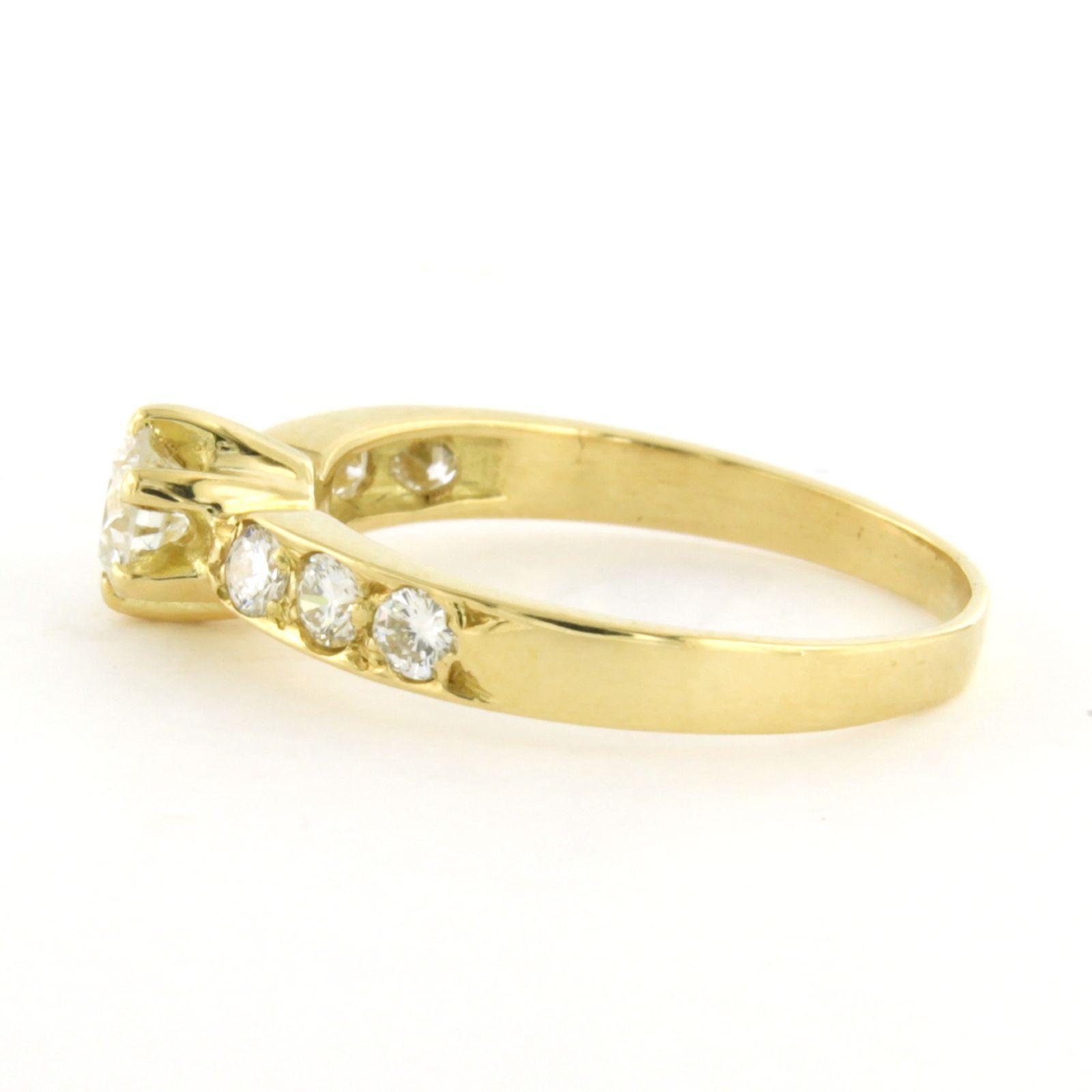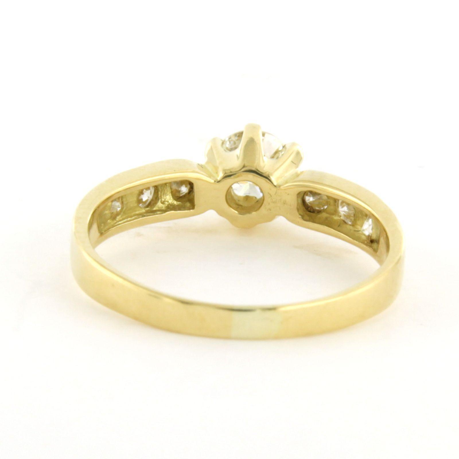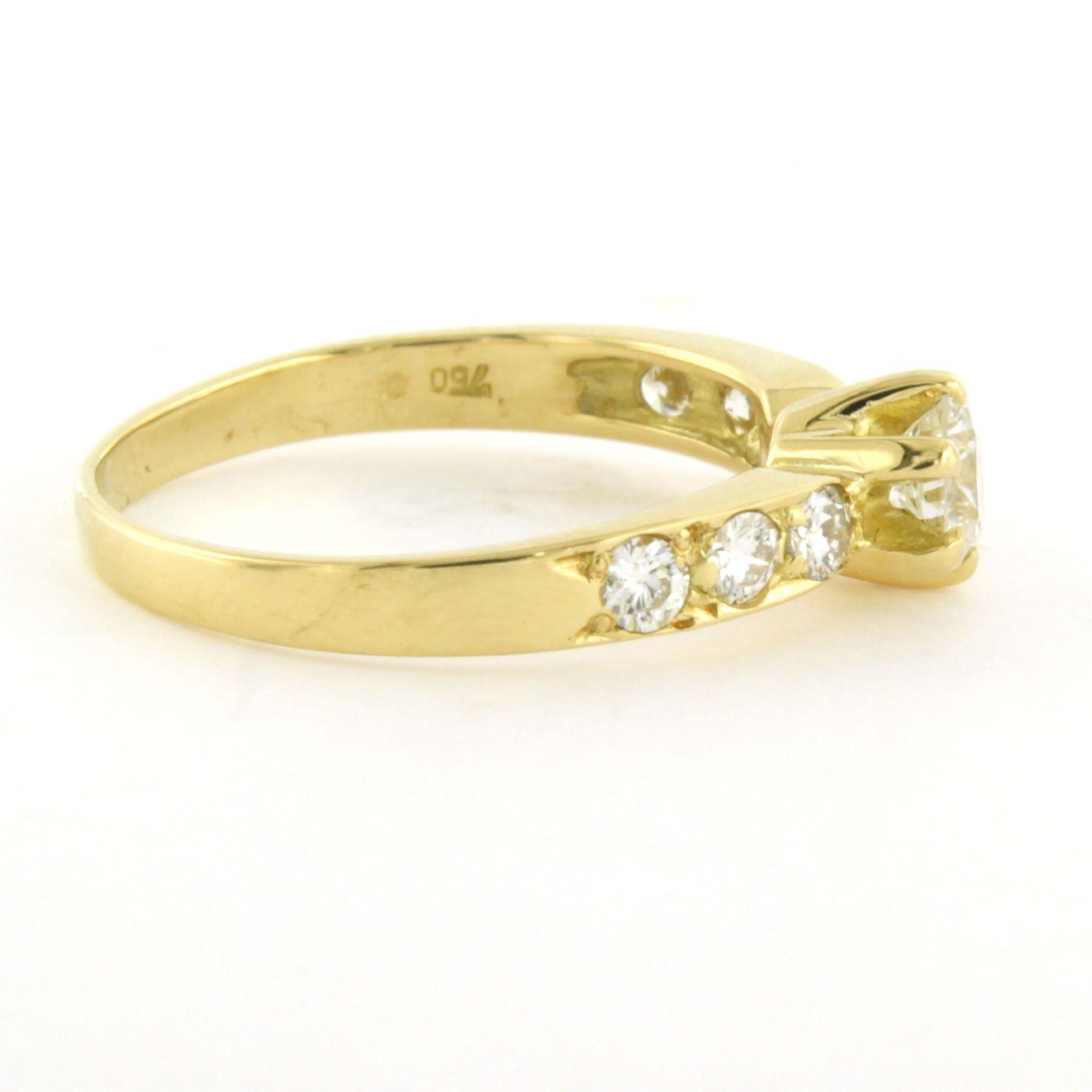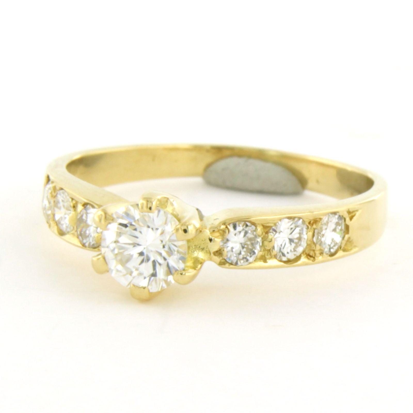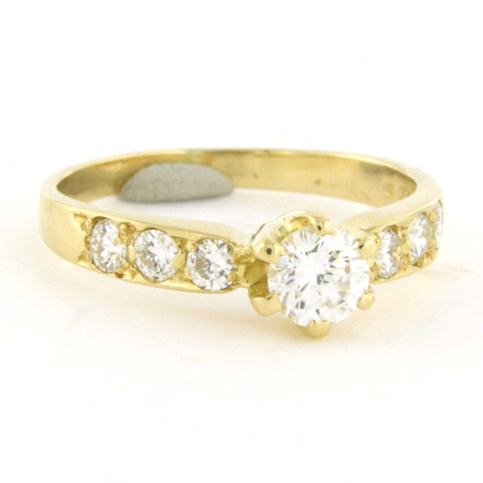 18 Kt. geelgouden ring bezet met briljant geslepen diamant tot. 0.76ct - ringmaat 17(53)