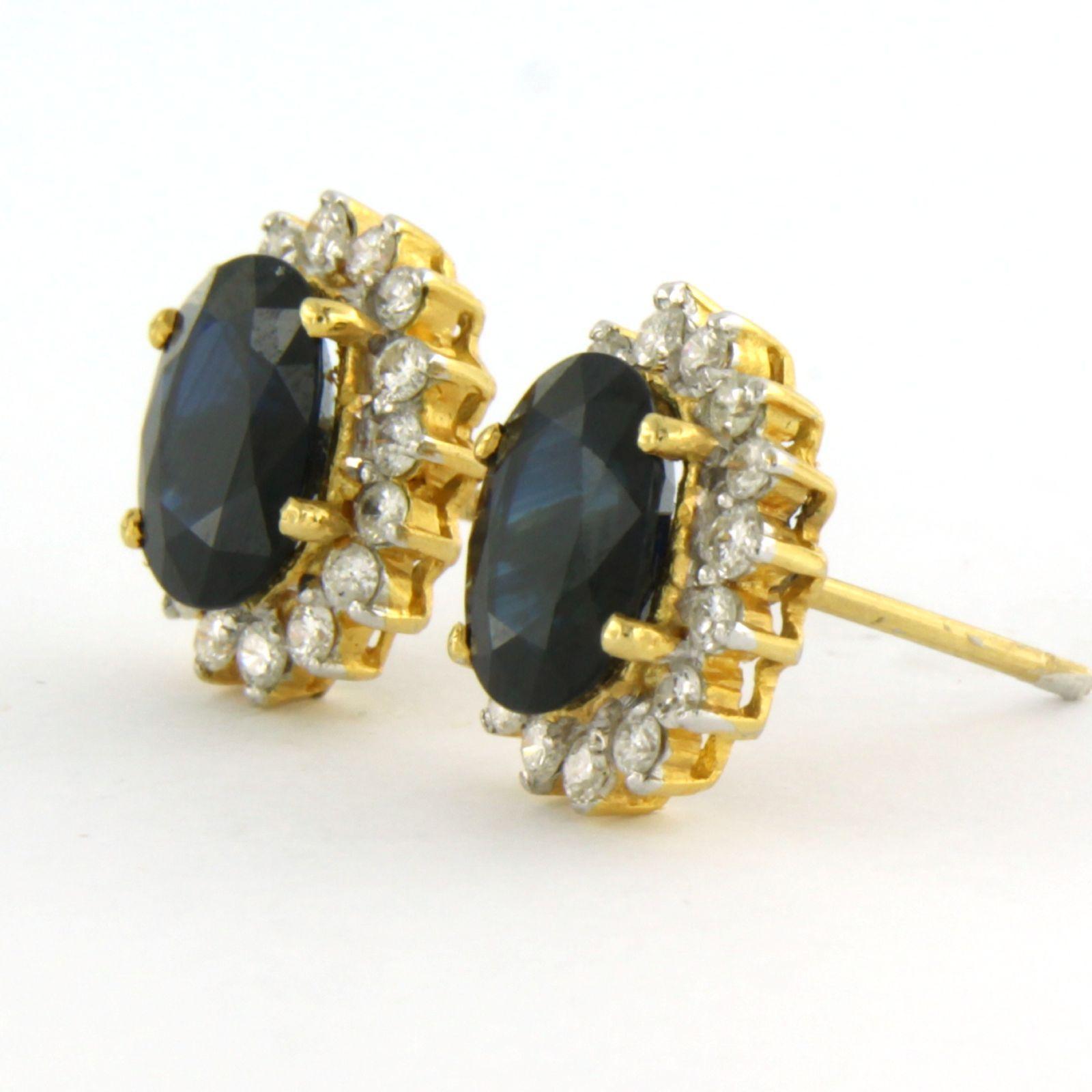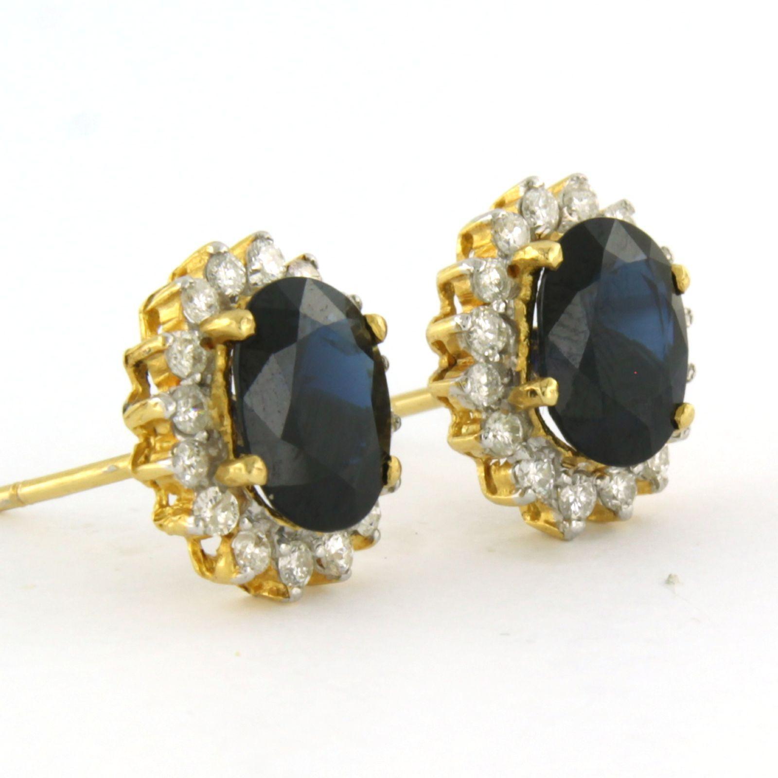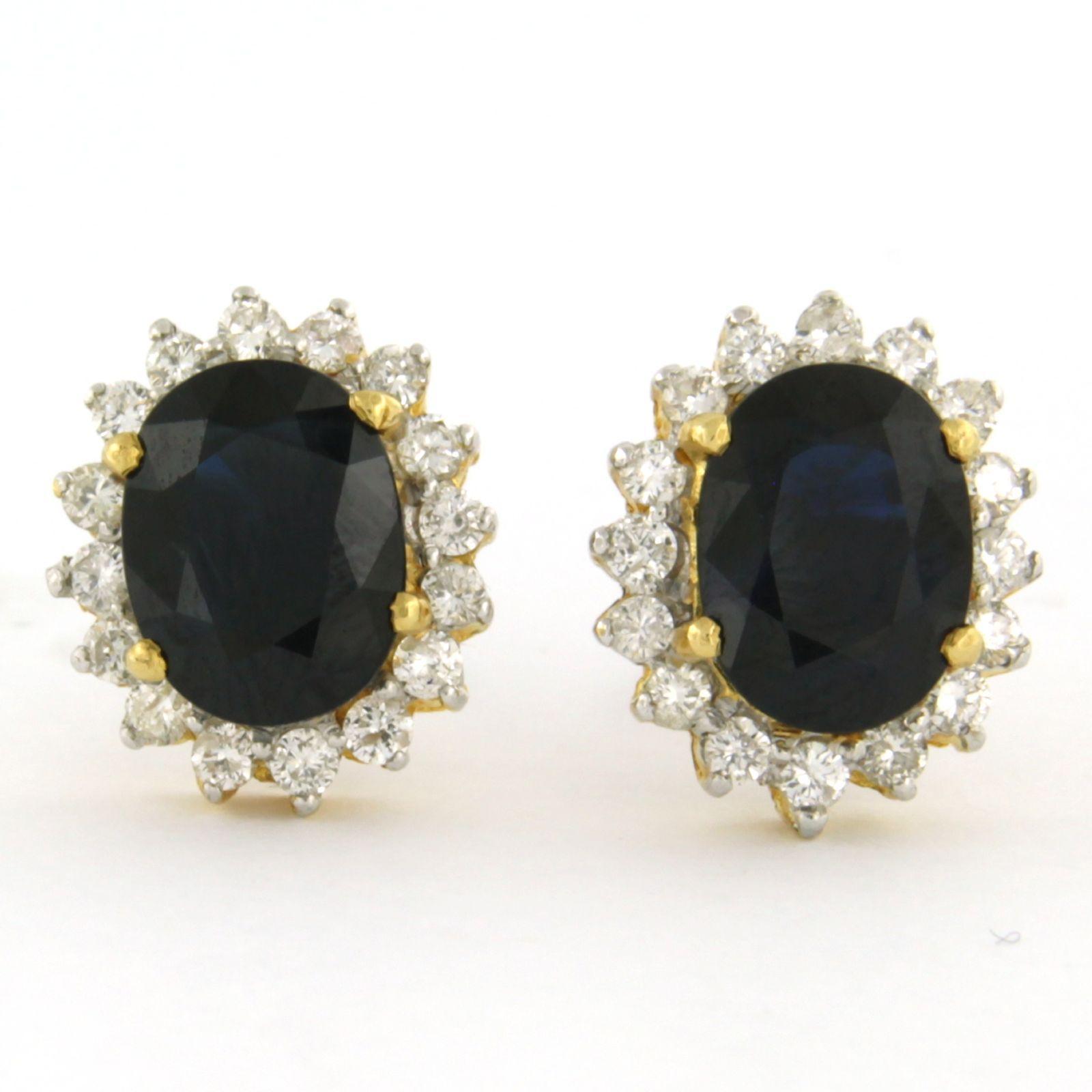 18 Kt. bicolour gouden oorknoppen bezet met saffier en briljant geslepen diamant tot. 0.50ct – G/H – VS/SI