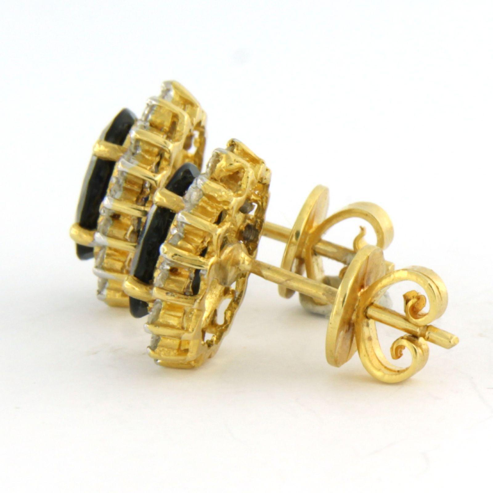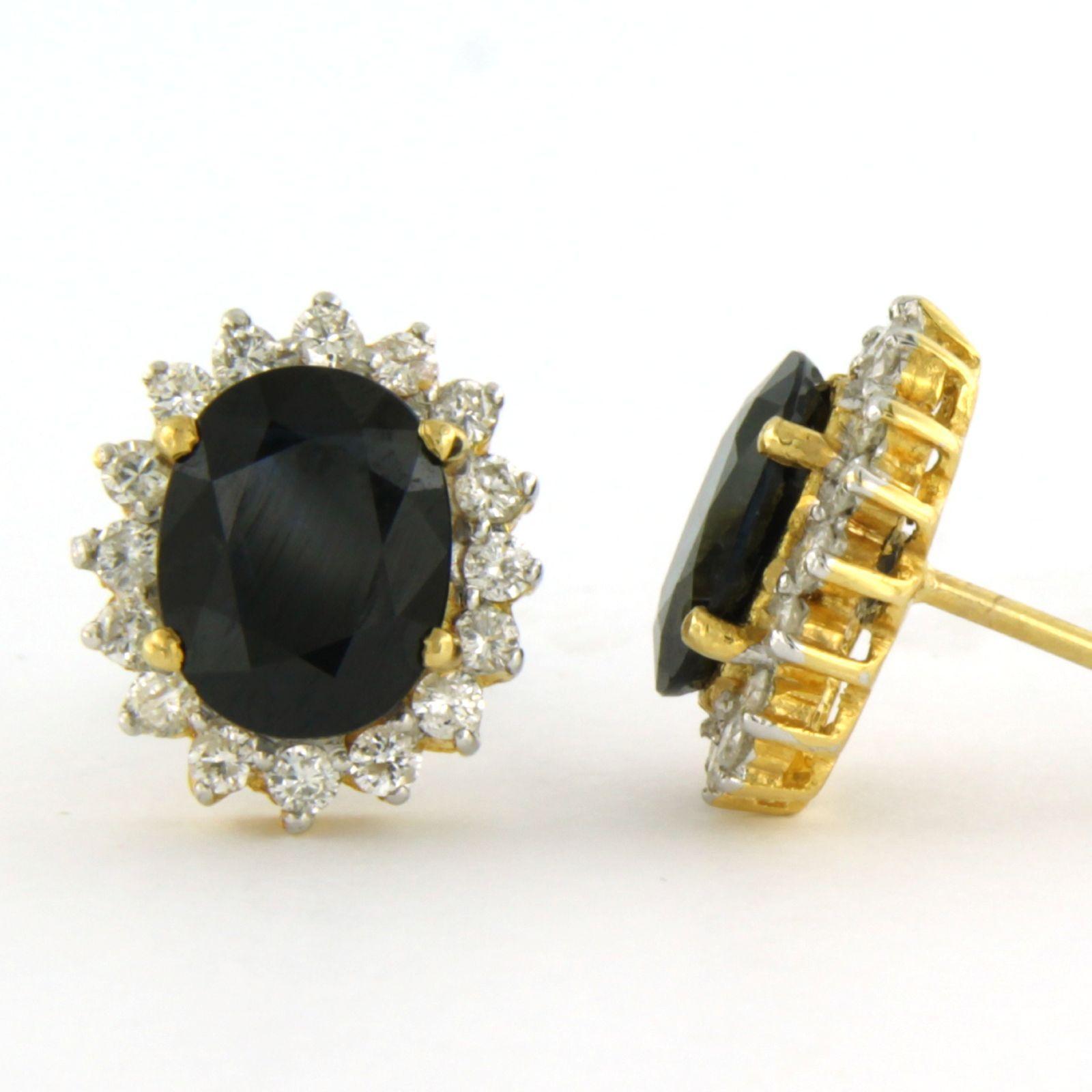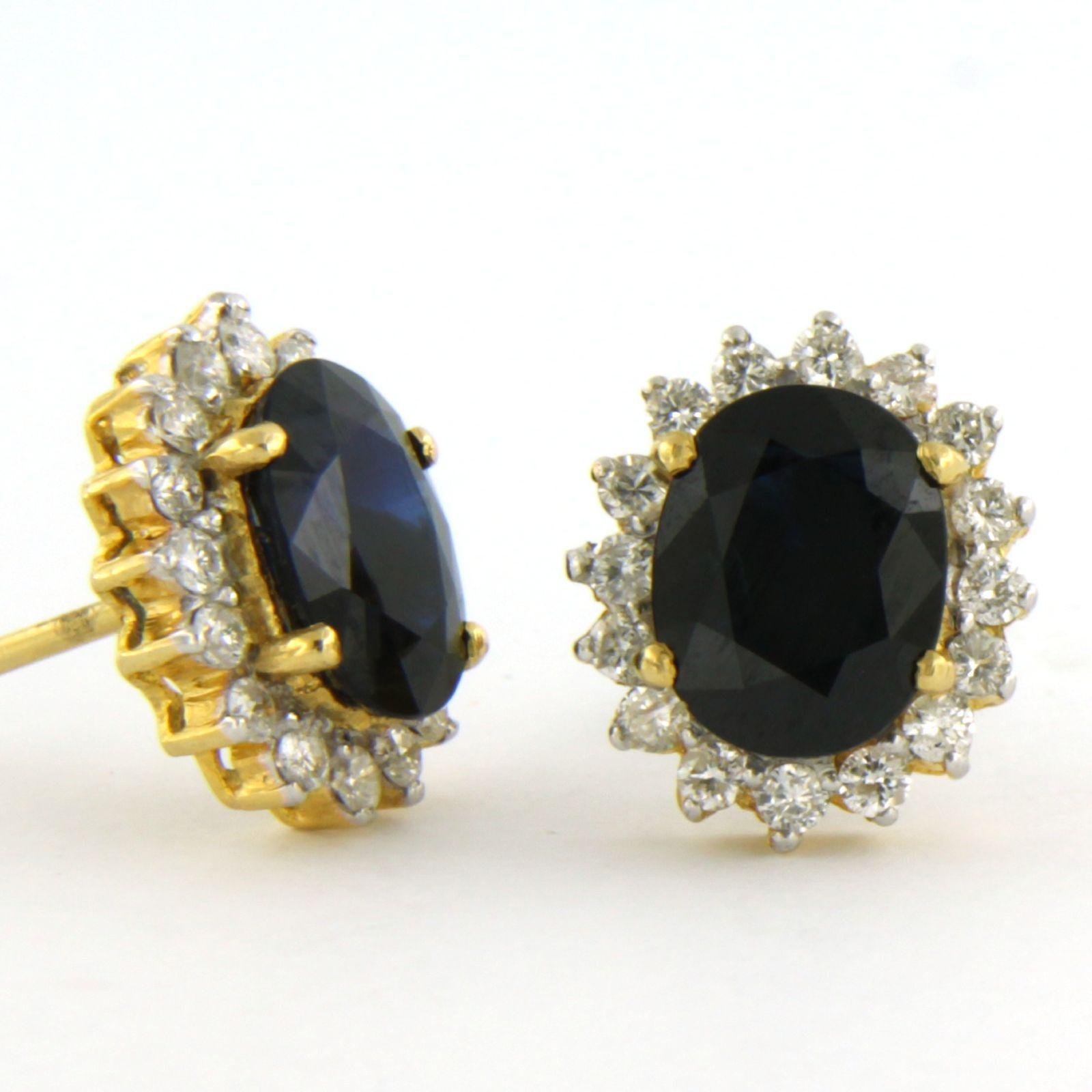 18 Kt. bicolour gouden oorknoppen bezet met saffier en briljant geslepen diamant tot. 0.50ct – G/H – VS/SI