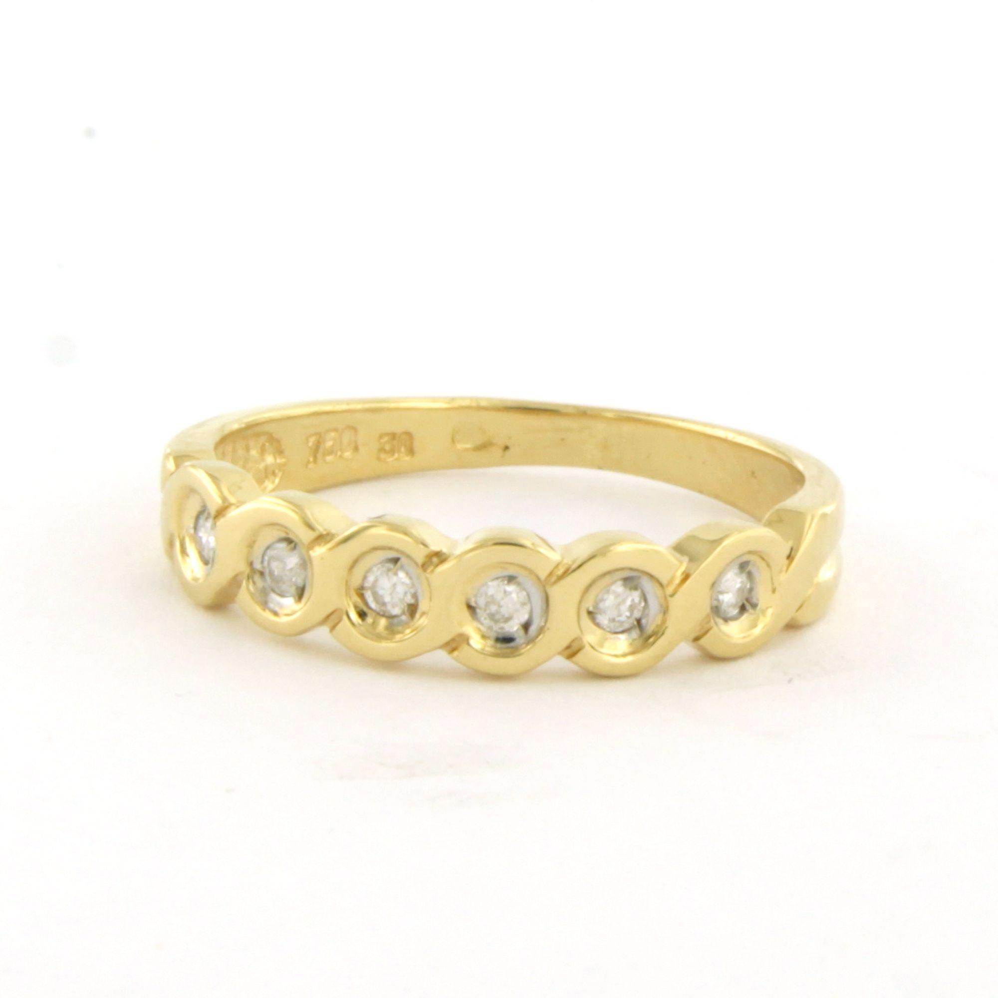 18 Kt. geelgouden ring bezet met briljant geslepen diamant tot. 0.10ct - ringmaat 16.25(51)