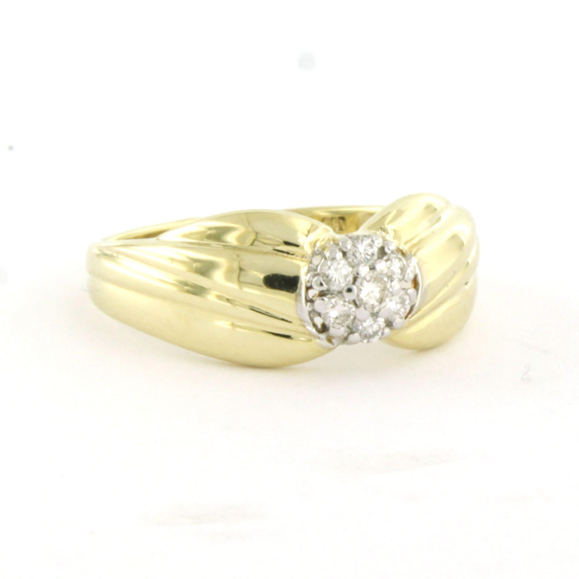 18 Kt. bicolour gouden ring bezet met briljant geslepen diamant tot. 0.18ct - ringmaat 17.25(54)