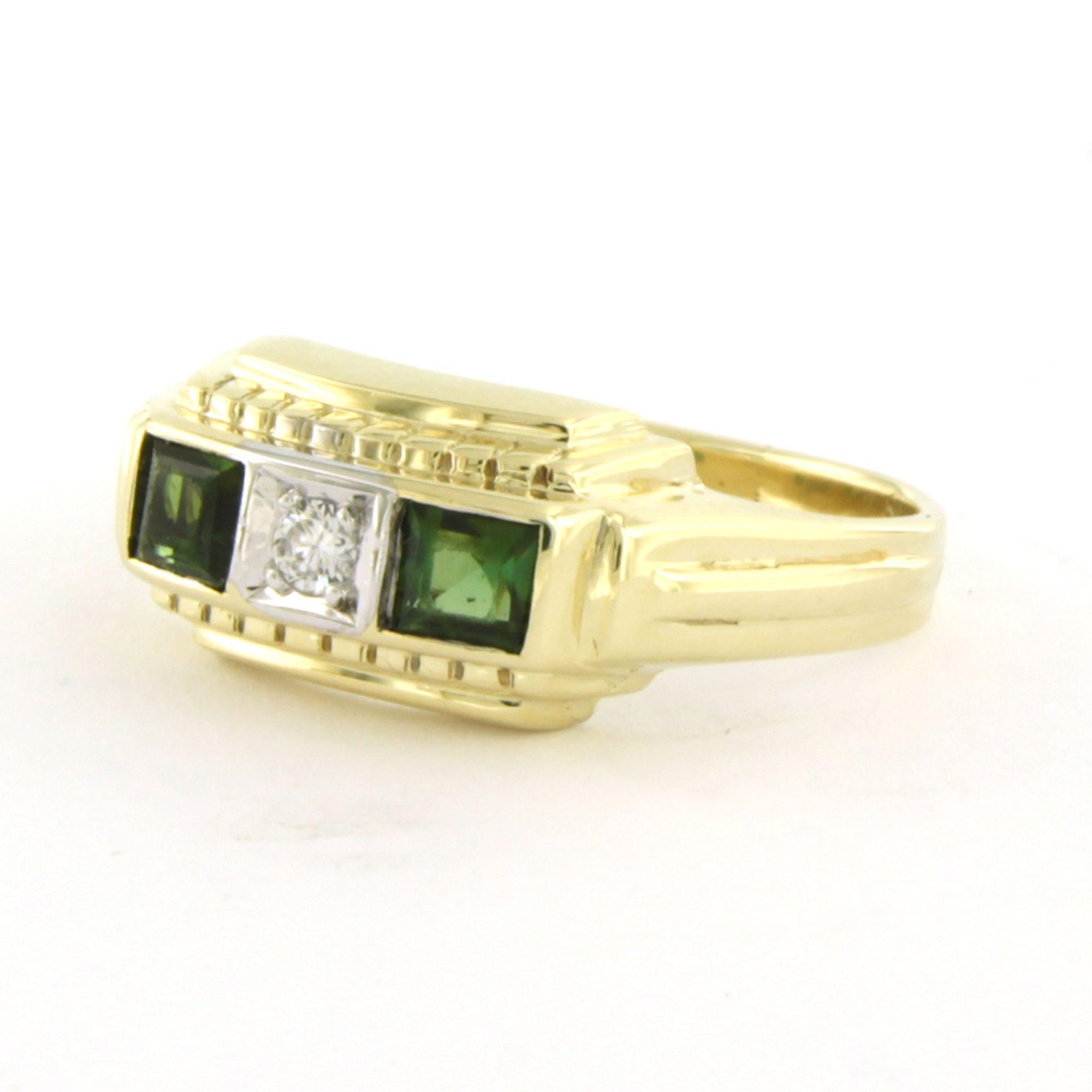 14 Kt. bicolour gouden ring bezet met toermalijn en briljant geslepen diamant tot. 0.05ct =- F/G - VS/SI - ringmaat 17.25(54)