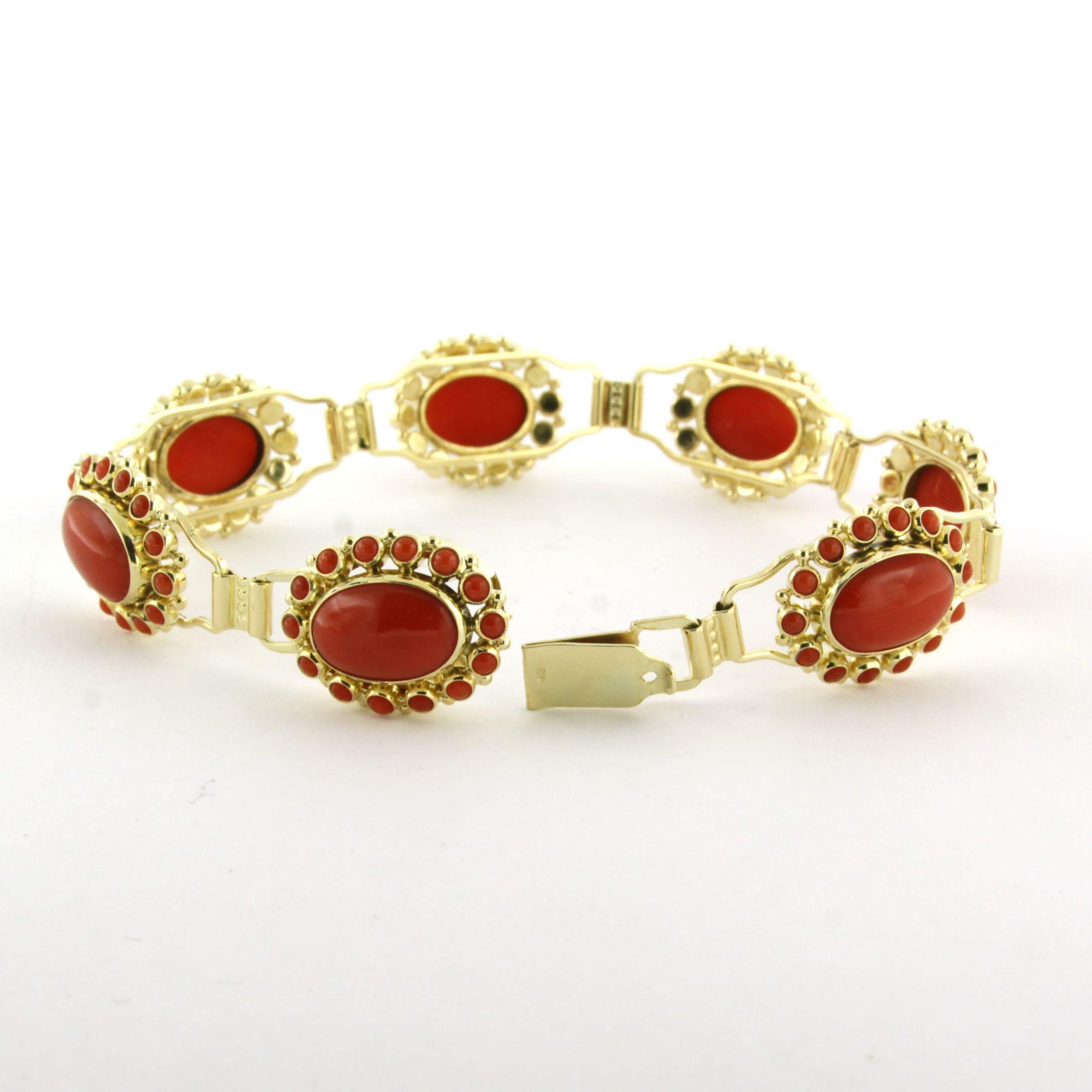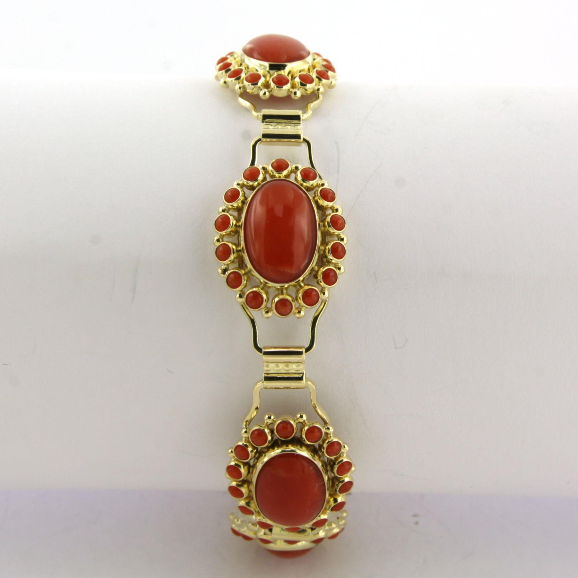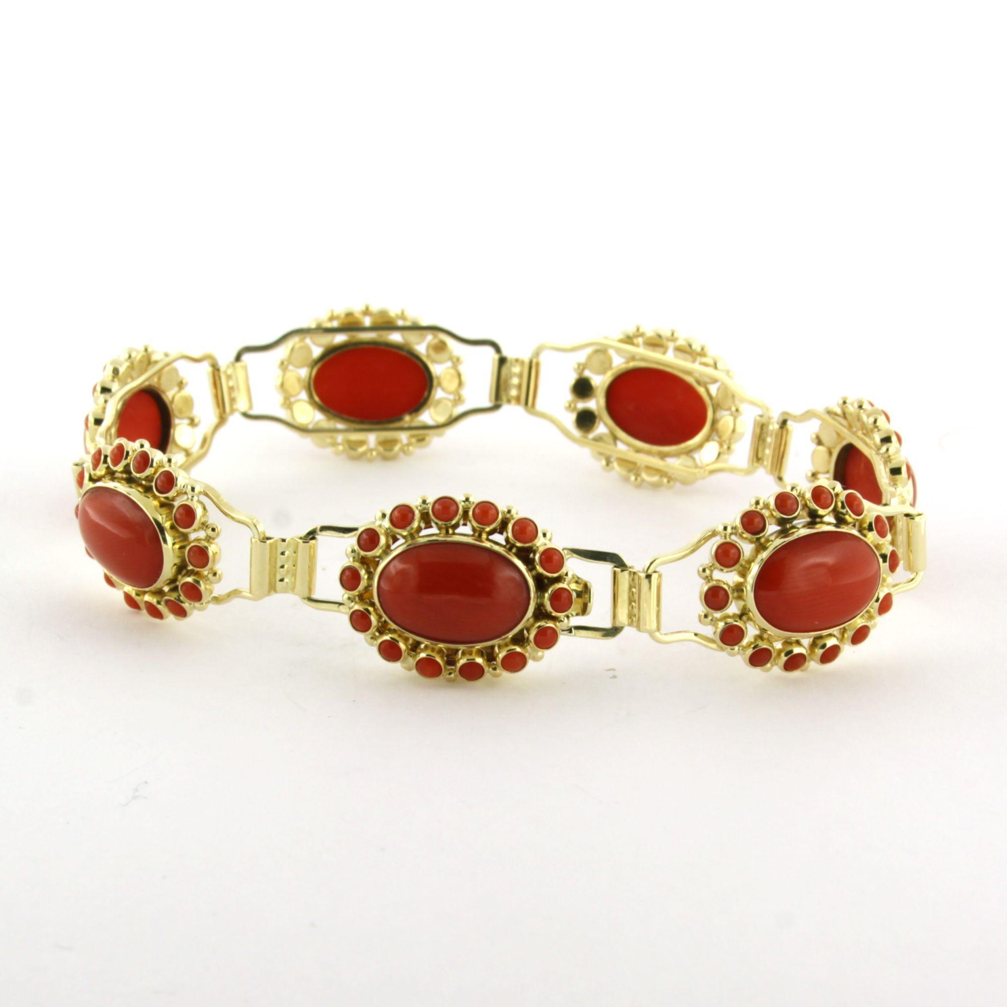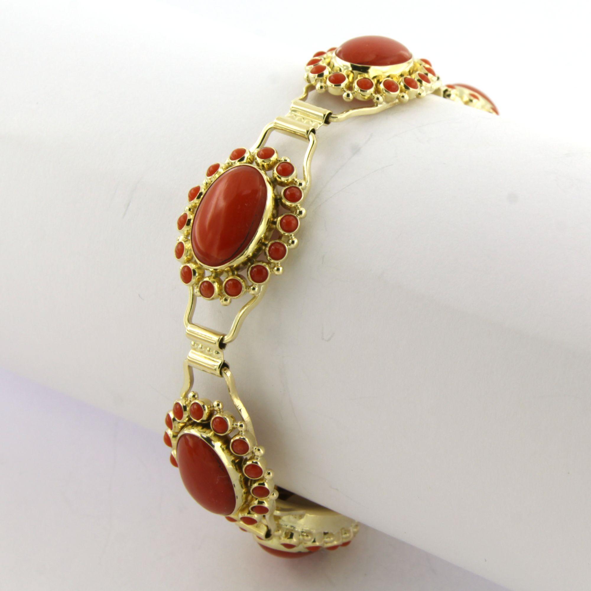 14 Kt. geelgouden schakelarmband bezet met koraal - 18.6 gram