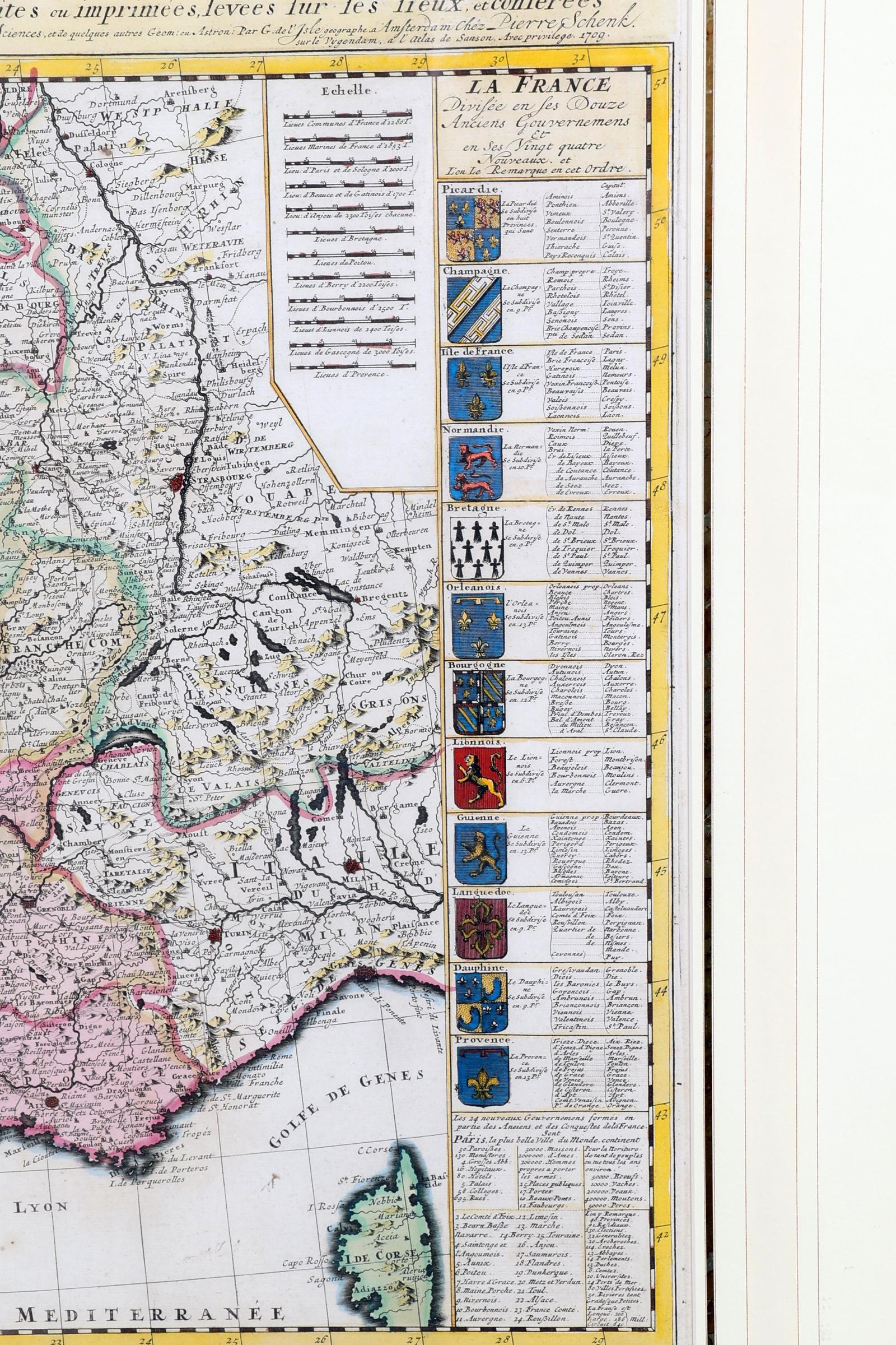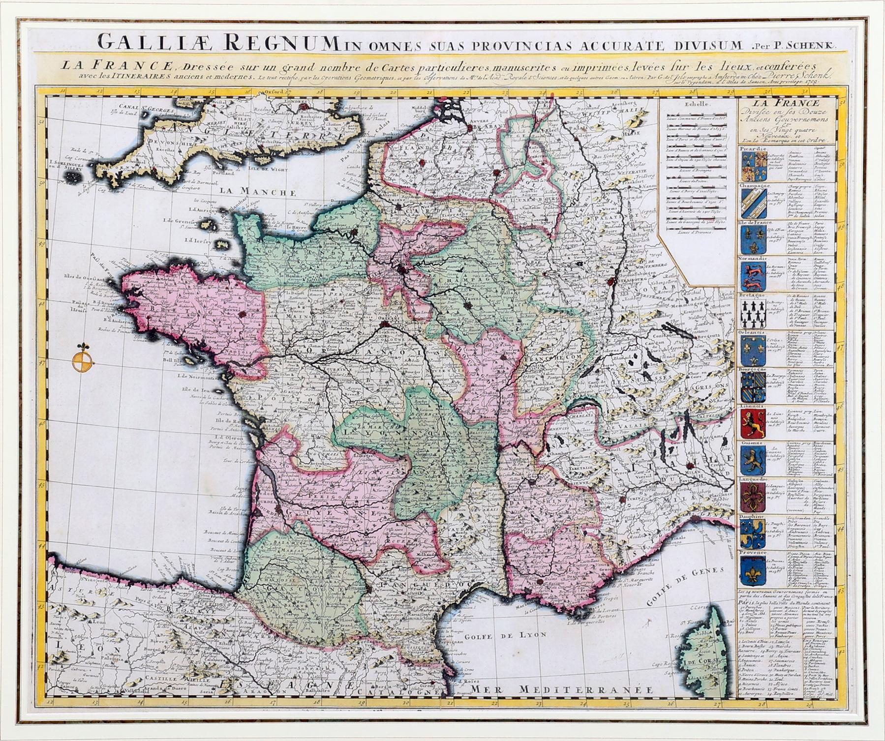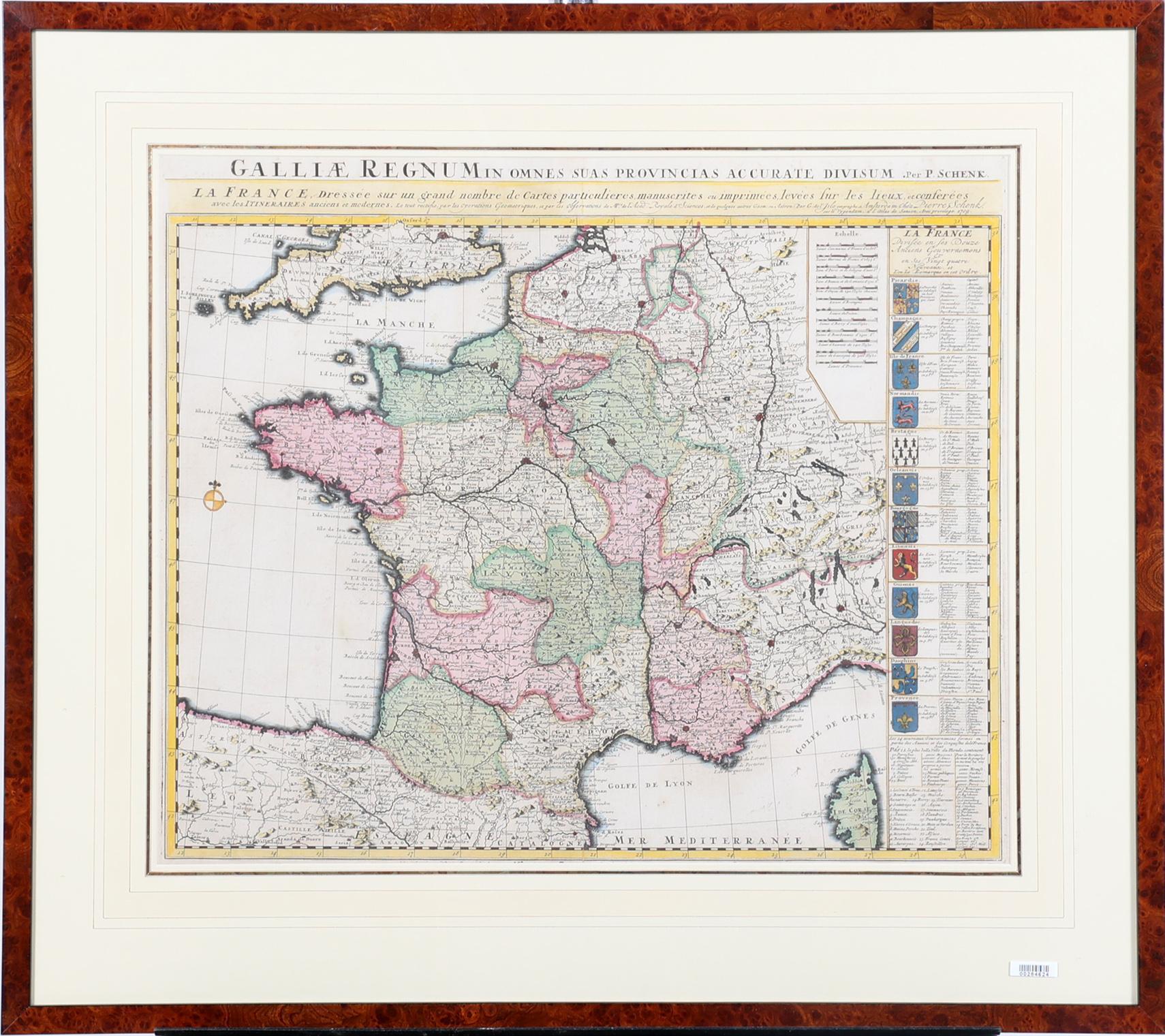 Antieke kaart in lijst, La France, 50 x 60 cm.