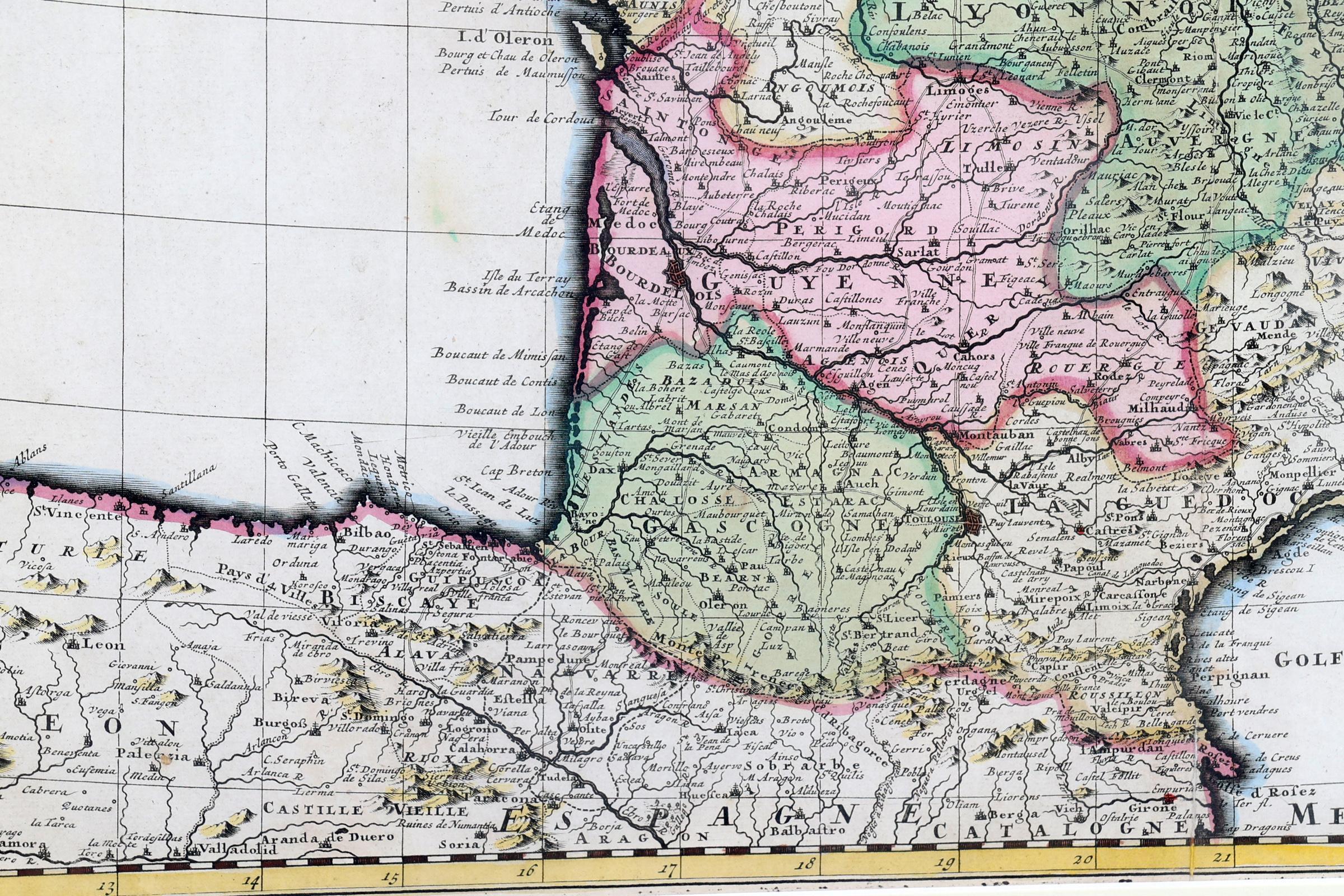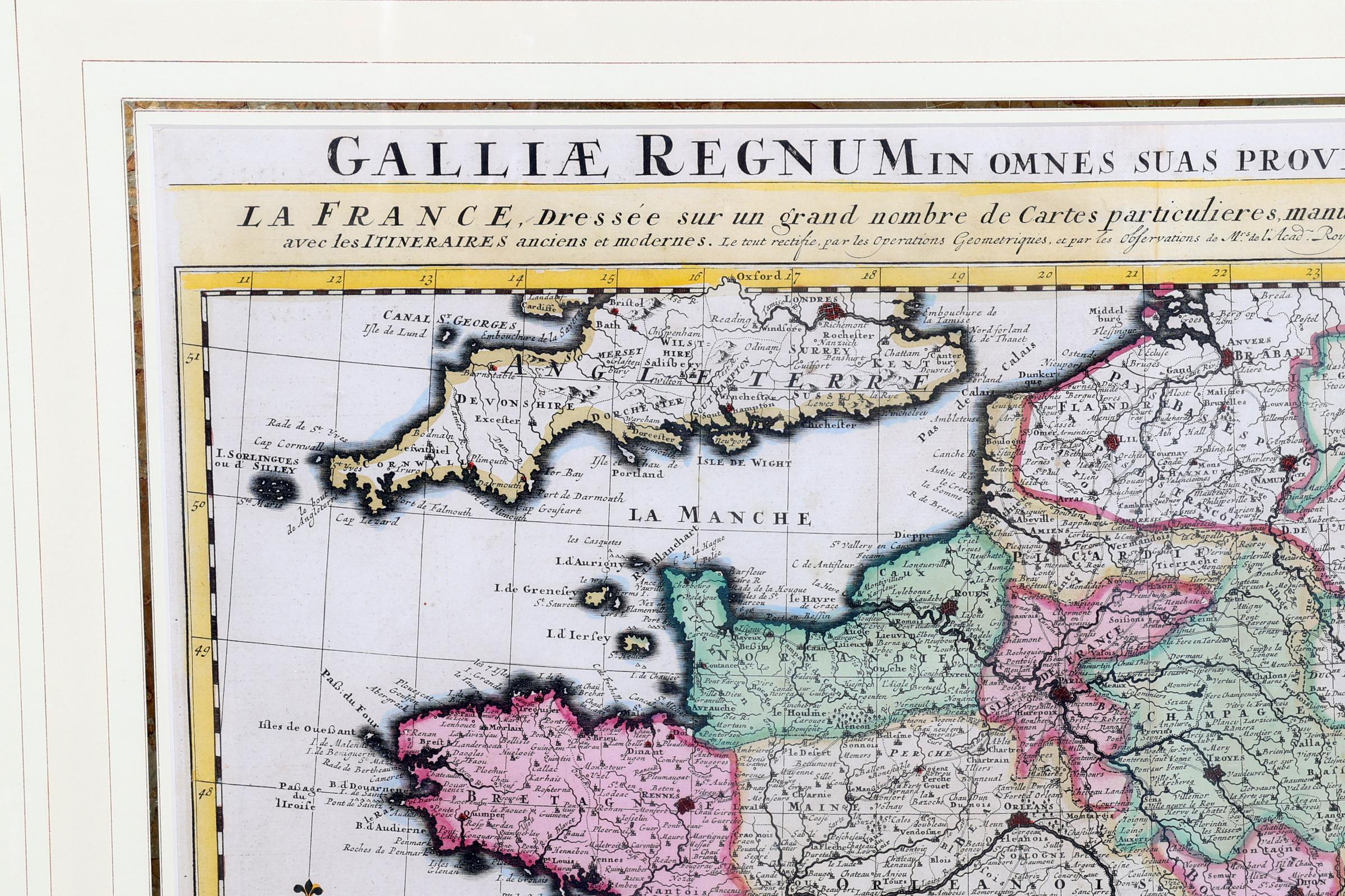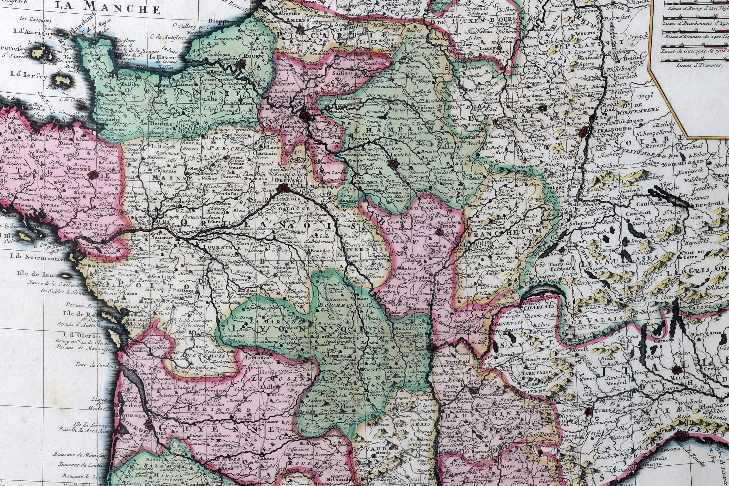 Antieke kaart in lijst, La France, 50 x 60 cm.