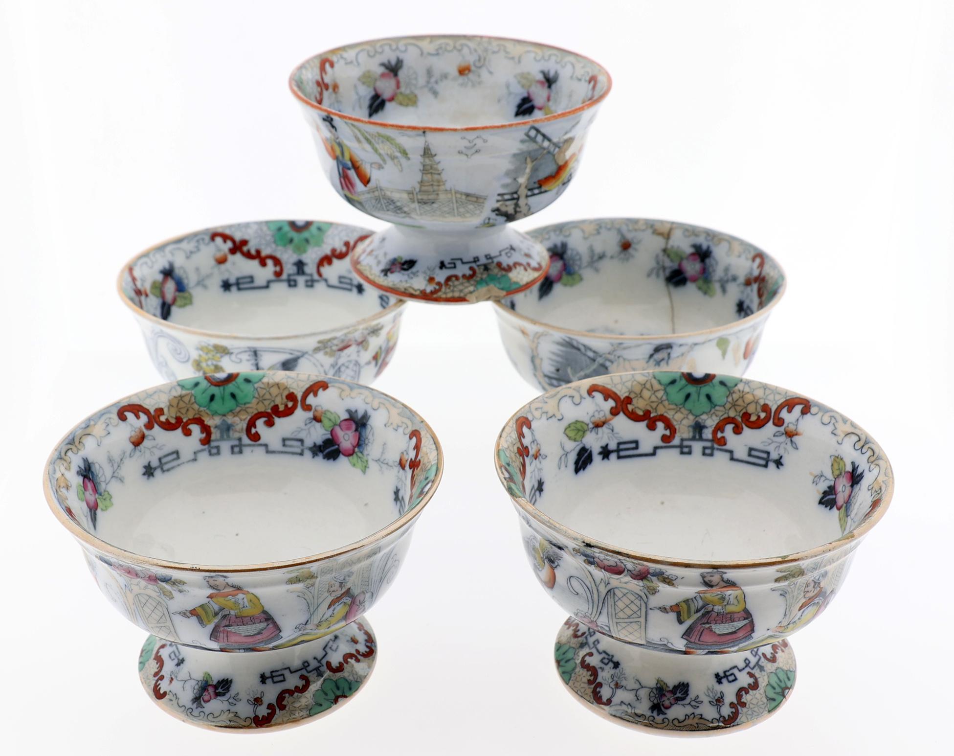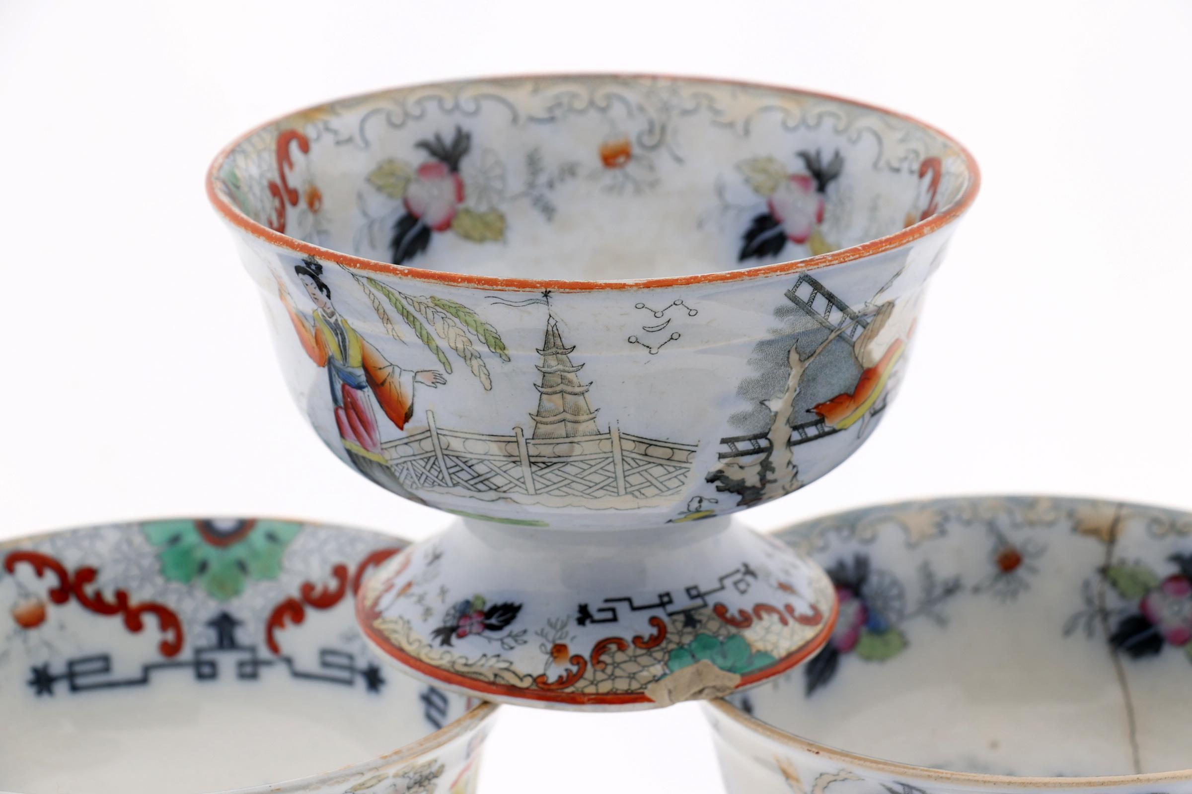 Koop van 5 oude aardewerken Pacha kast kommen, Petrus Regout Maastricht (deels defect)