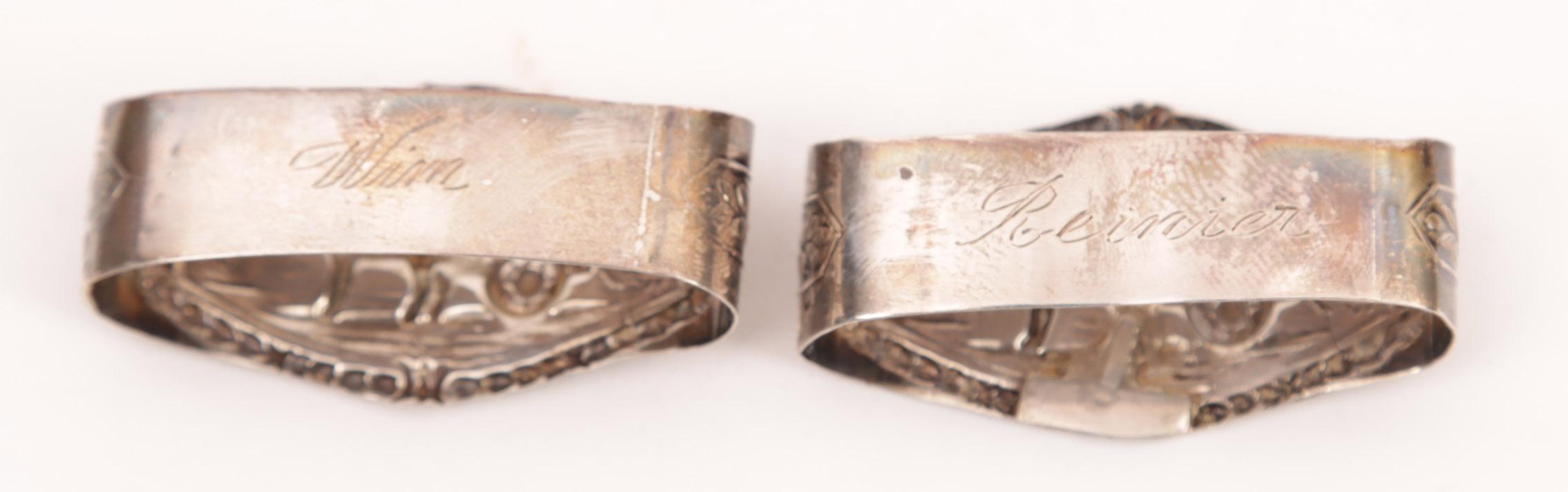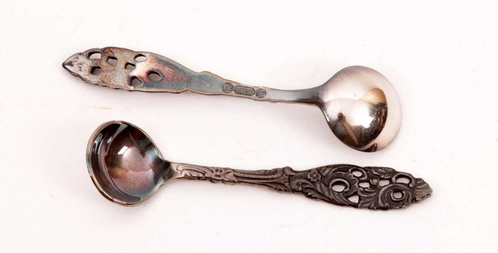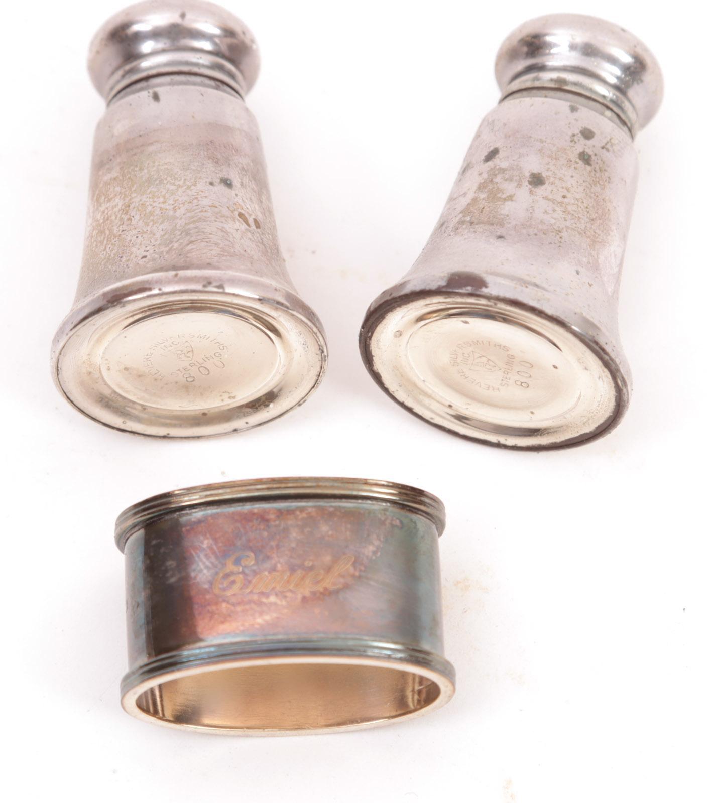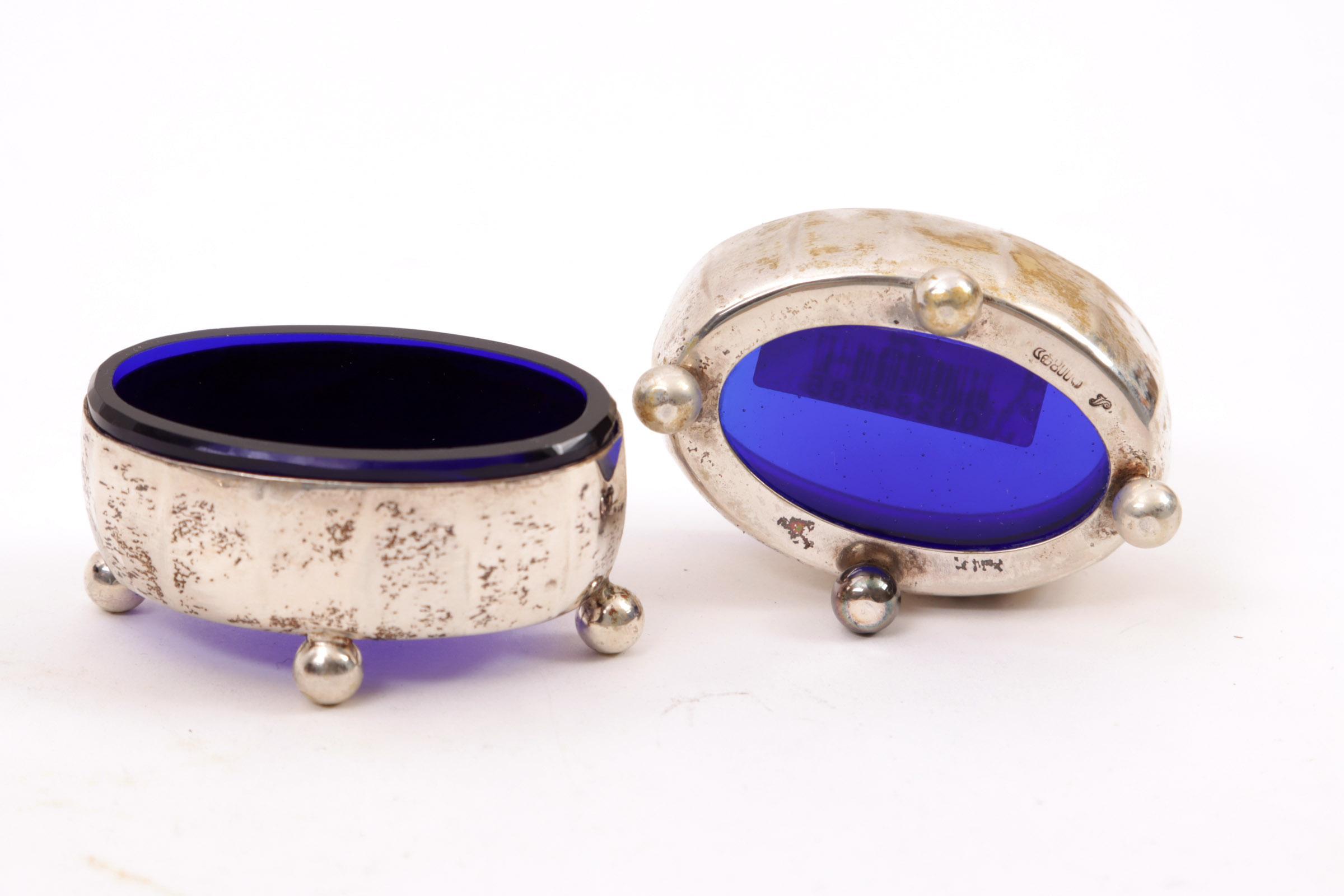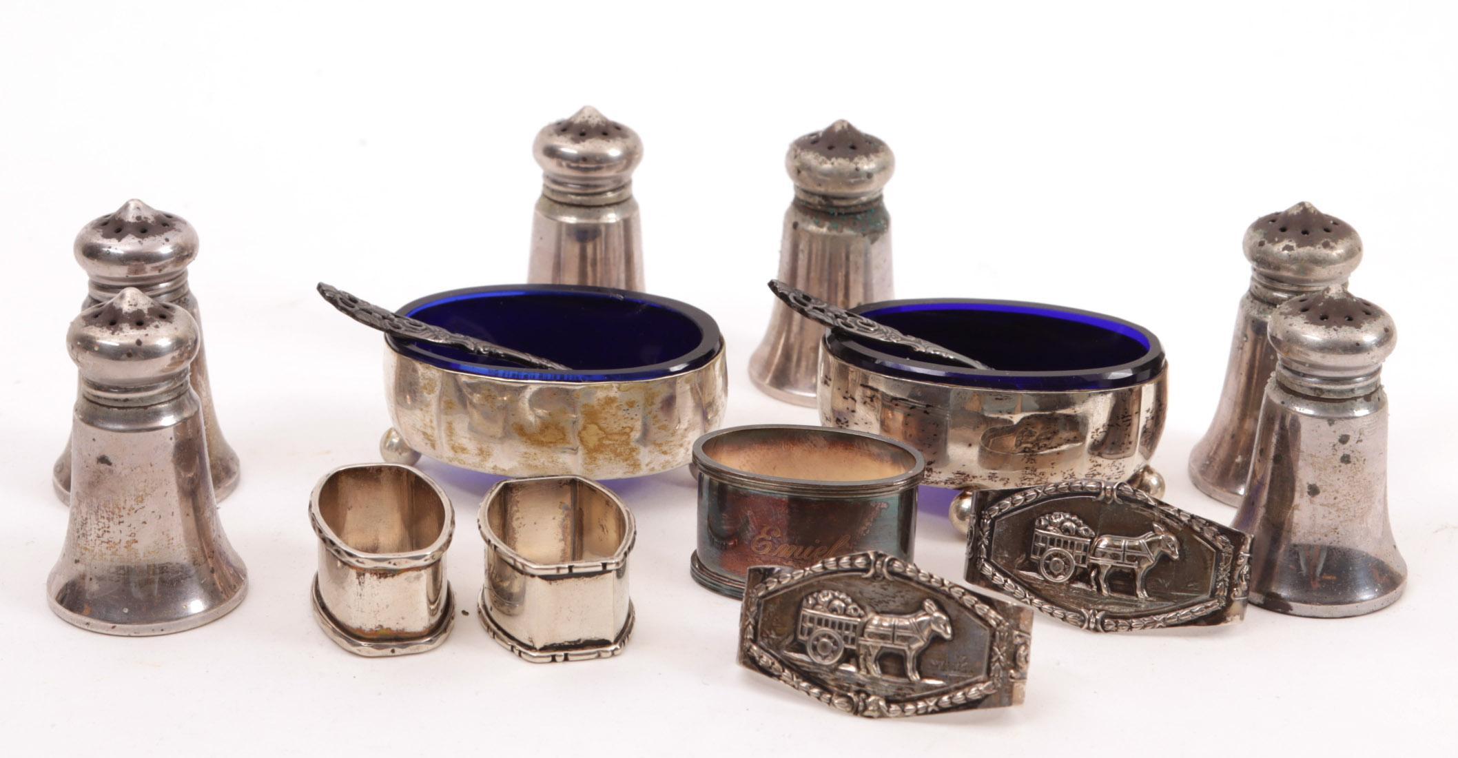 6 Sterling zilveren zoutvaatjes, 2 zoutbakken met blauw glazen binnenbak en diverse vingerdoekringen