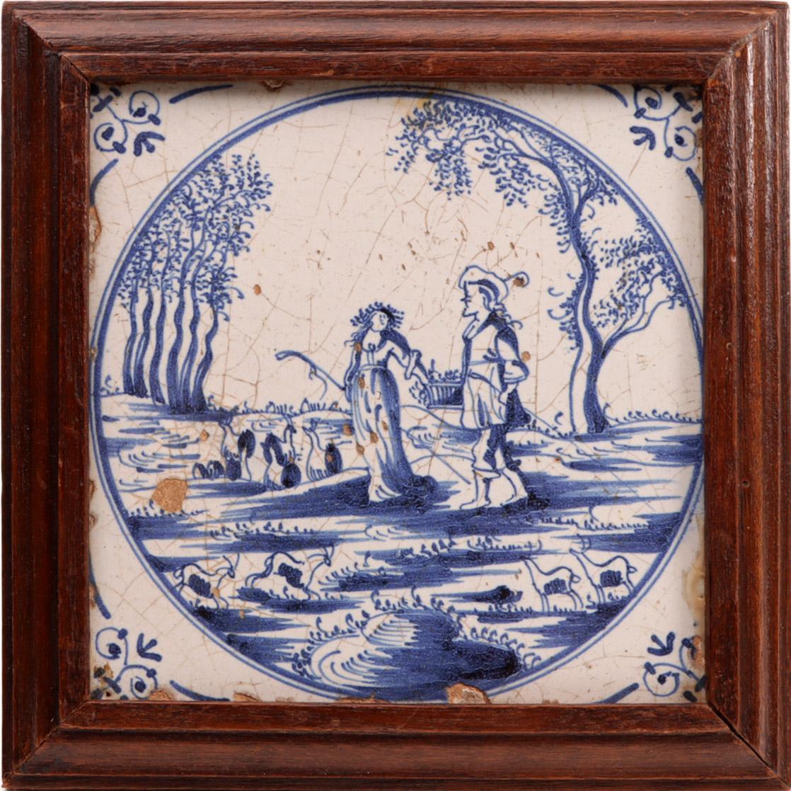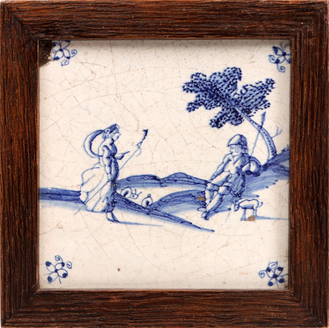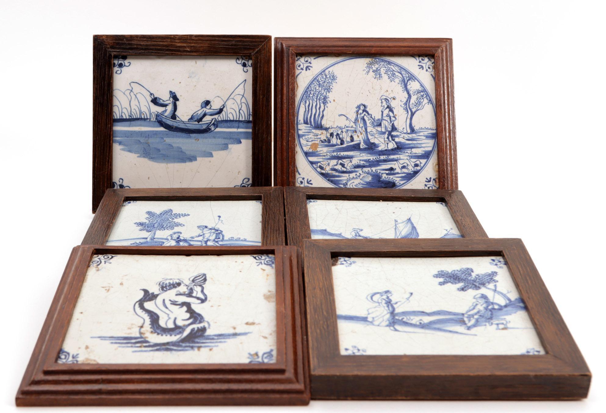6 Antieke blauw/wit gedecoreerde tegels