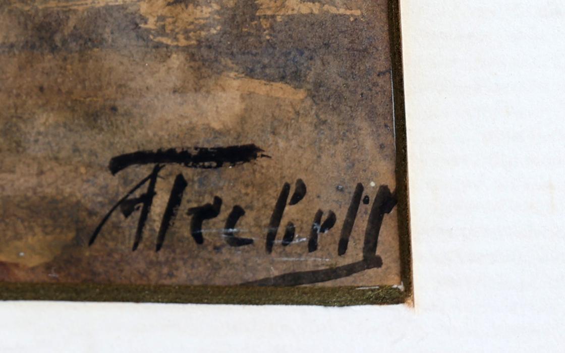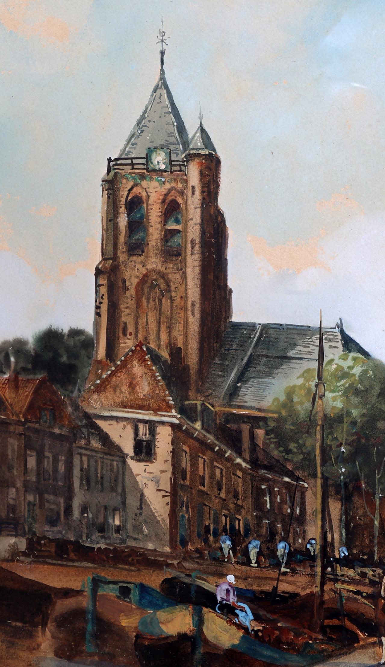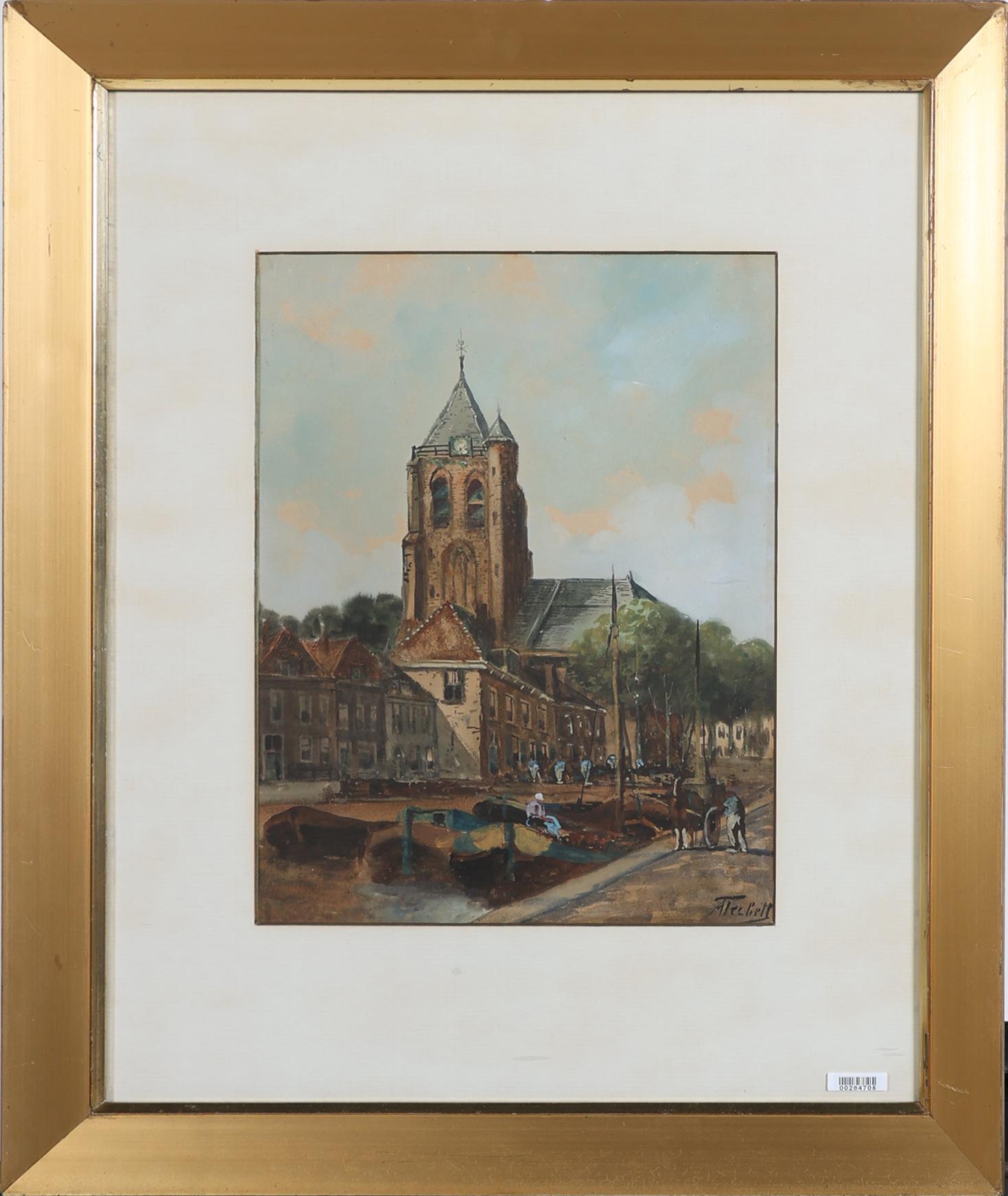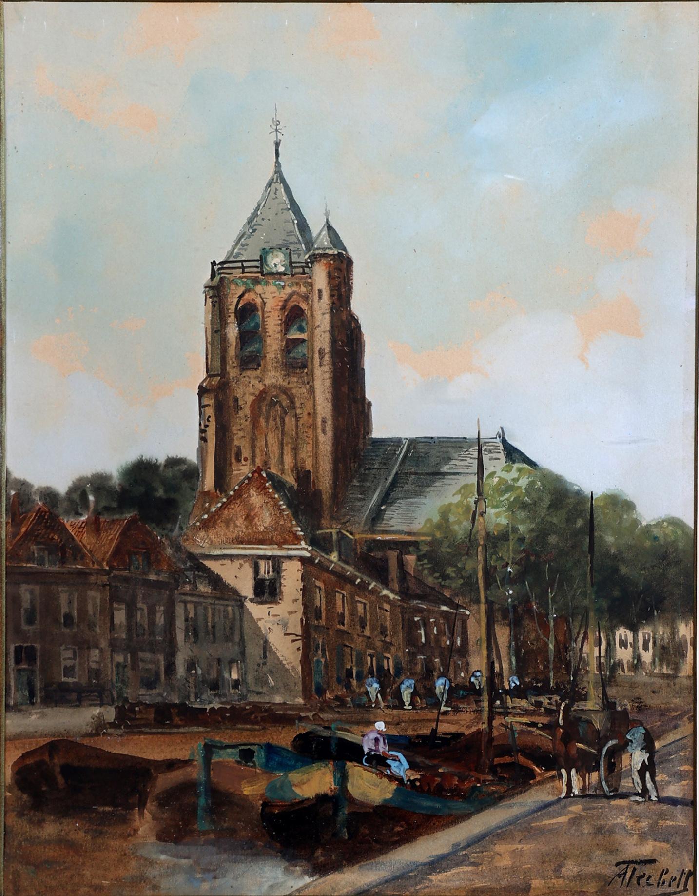 A. Teebelt, Zicht op een kerk, gouache op papier 38 x 29 cm.
