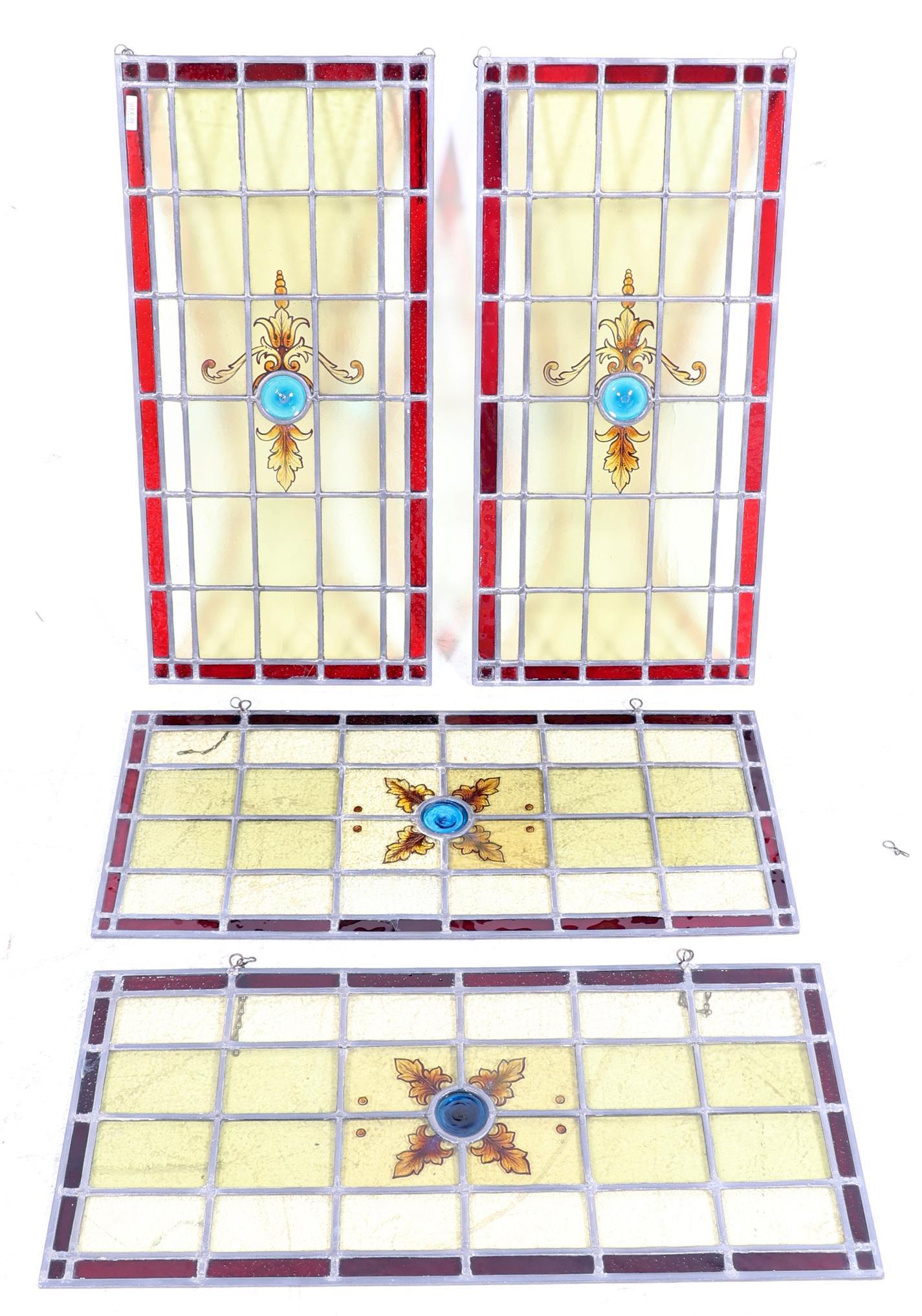 4 Oude glas-in-lood ramen, 66 x 31 cm.