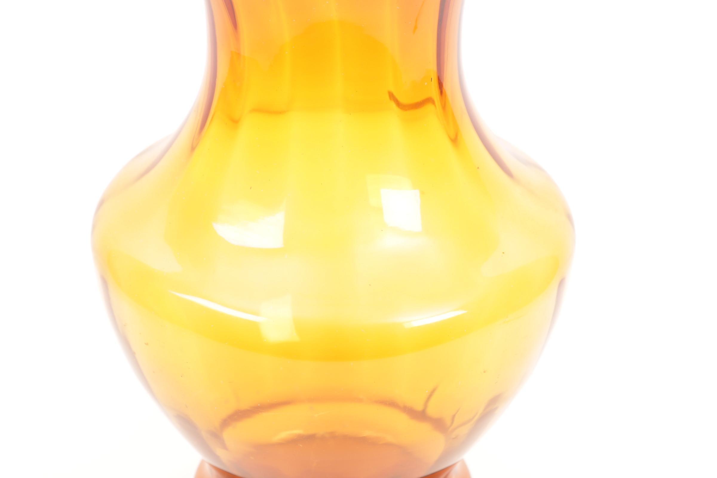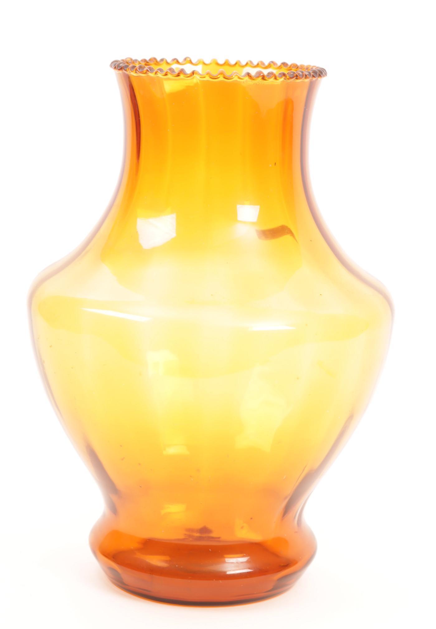 Amberkleurige glazen Art Deco vaas, Dayen, h.33 cm.