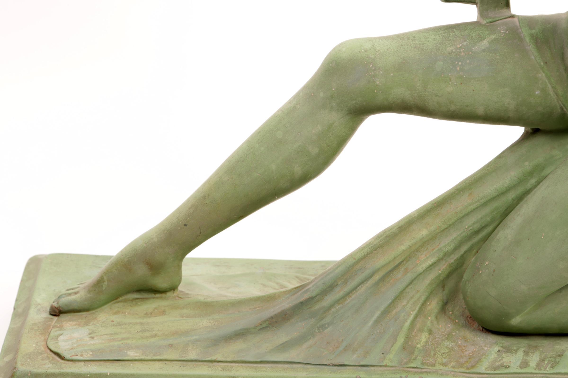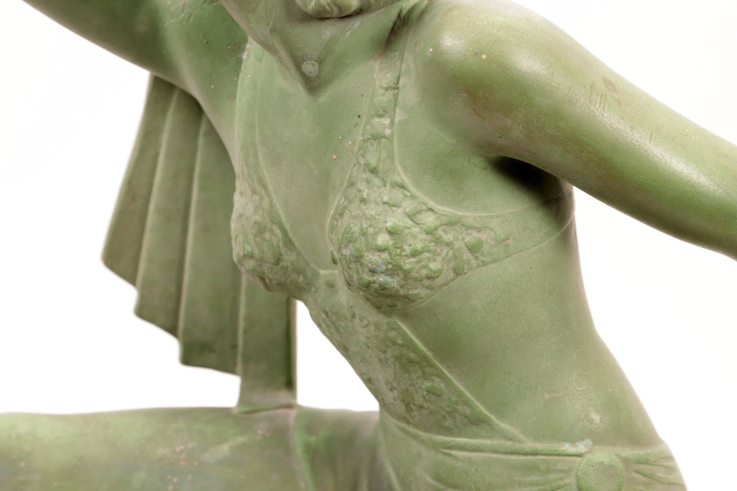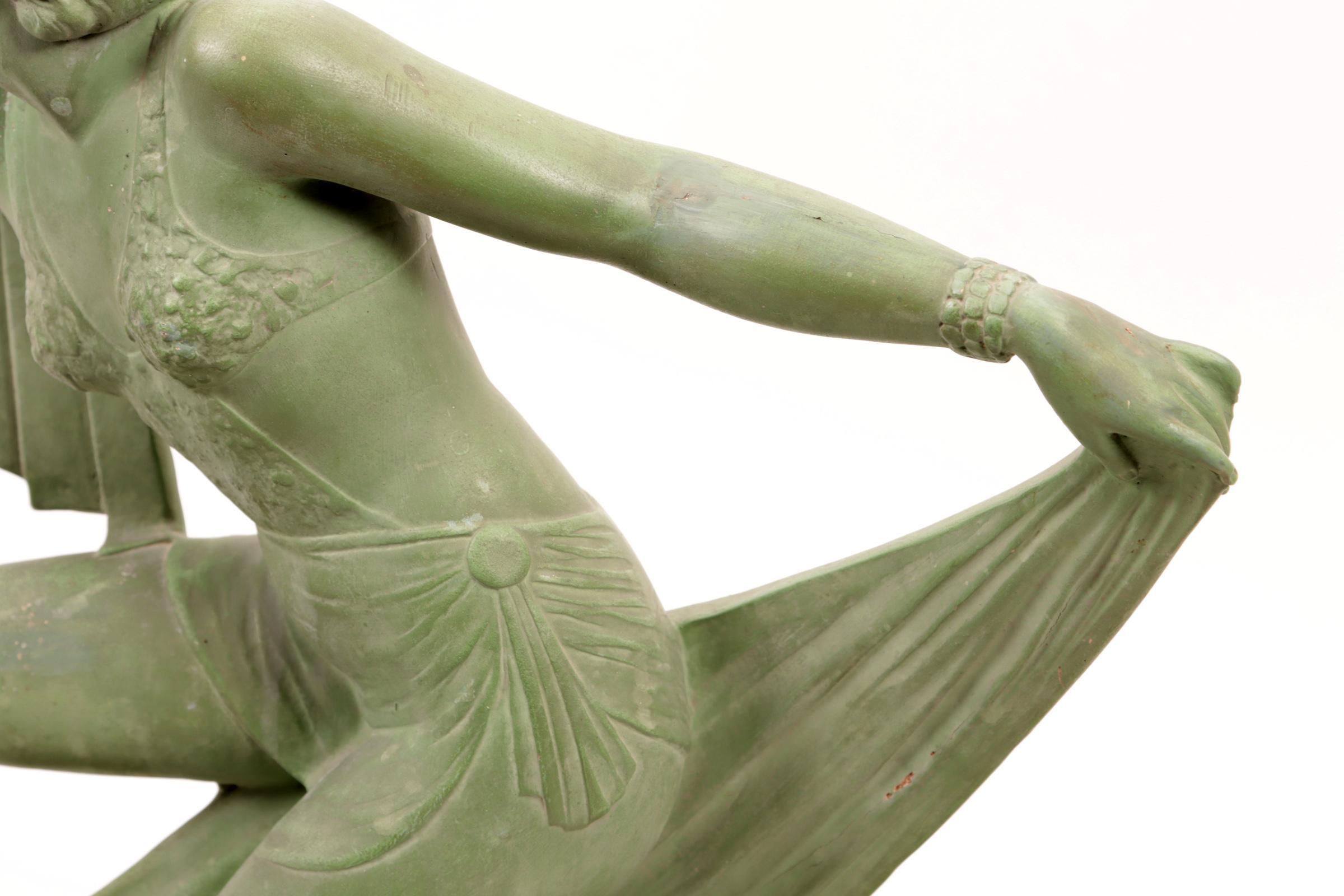 Art Deco beeld van dame met tamboerijn, h.53 cm.