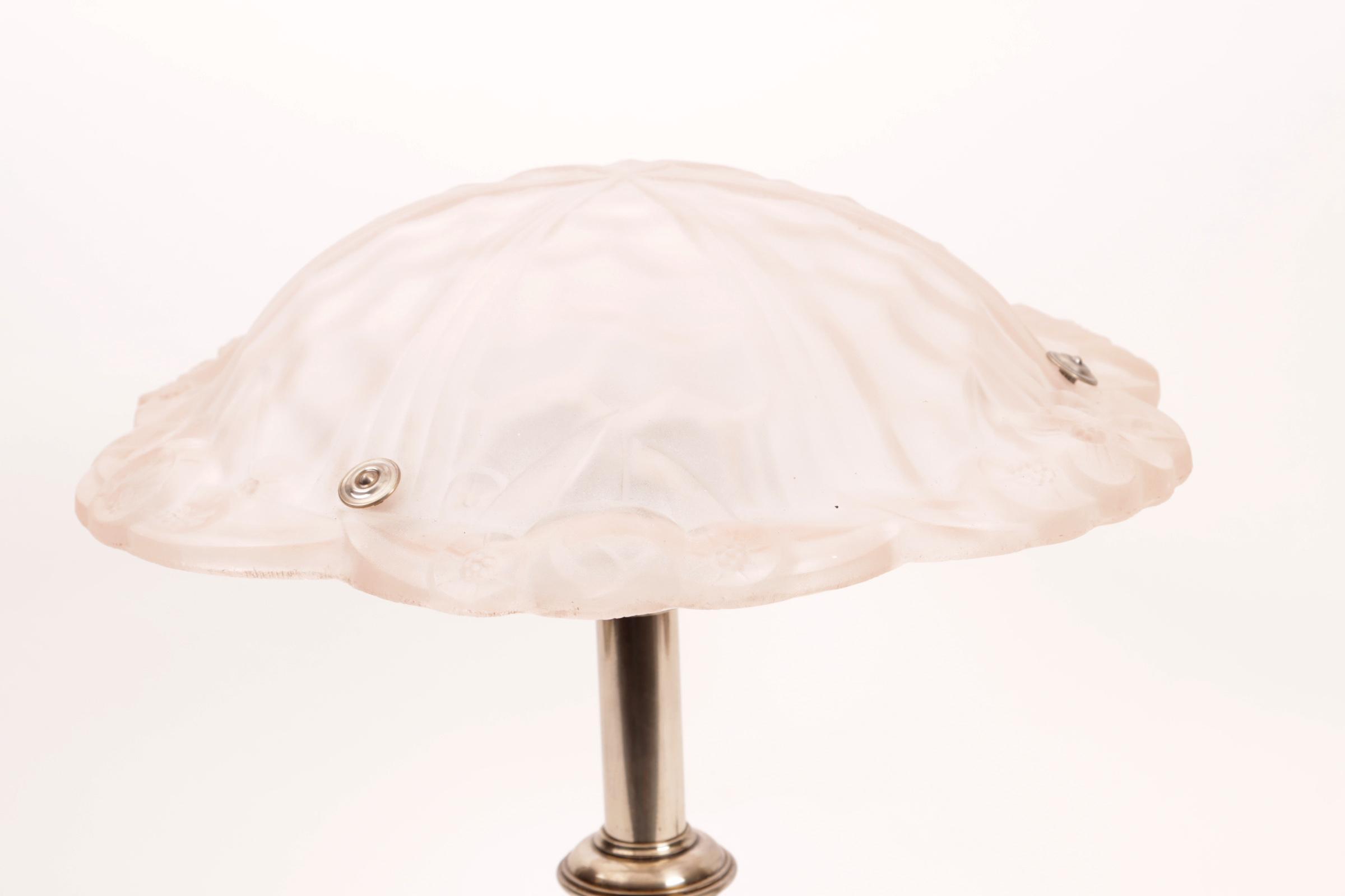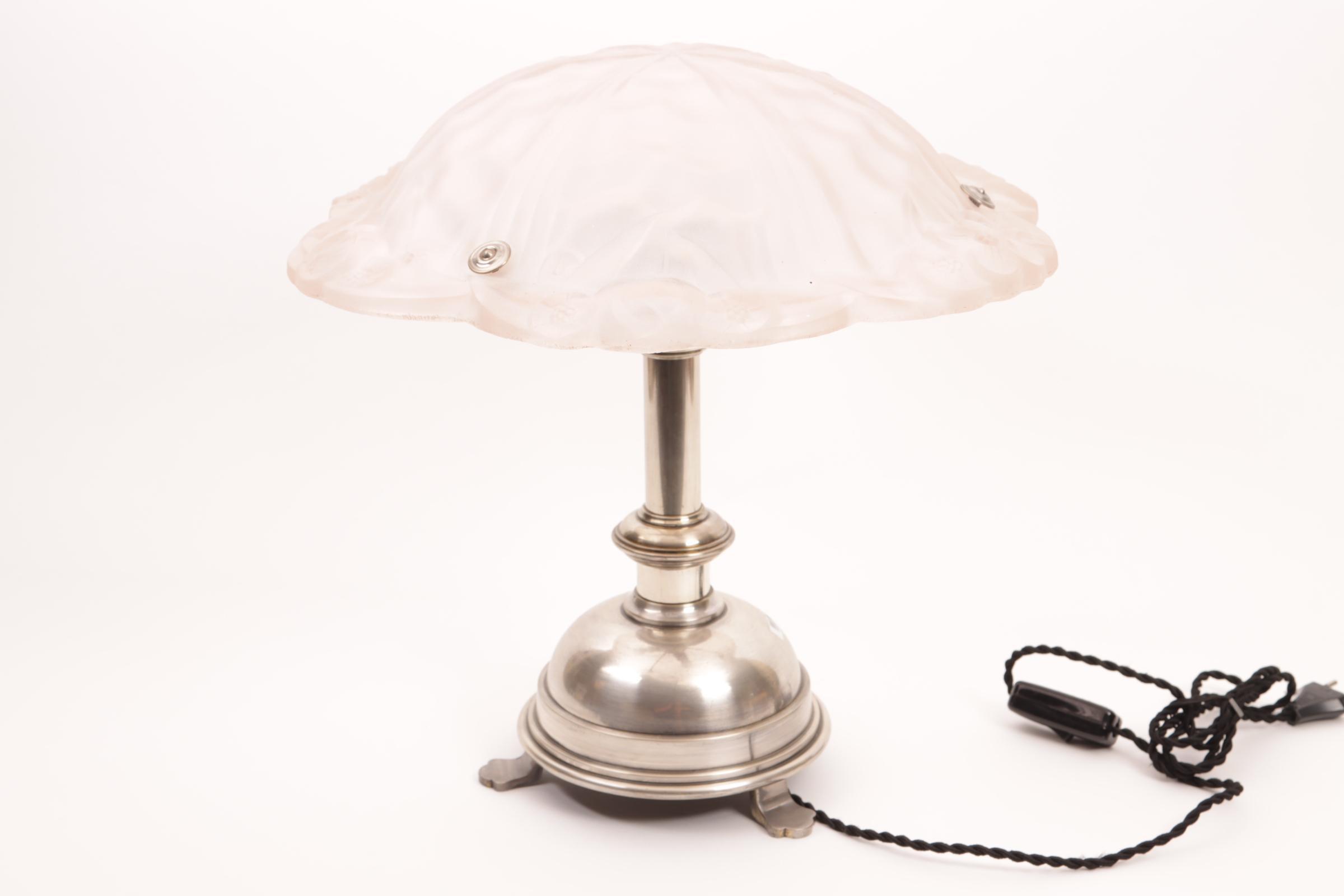 Tafellamp met gesatineerde glazen kap, h.41 cm.