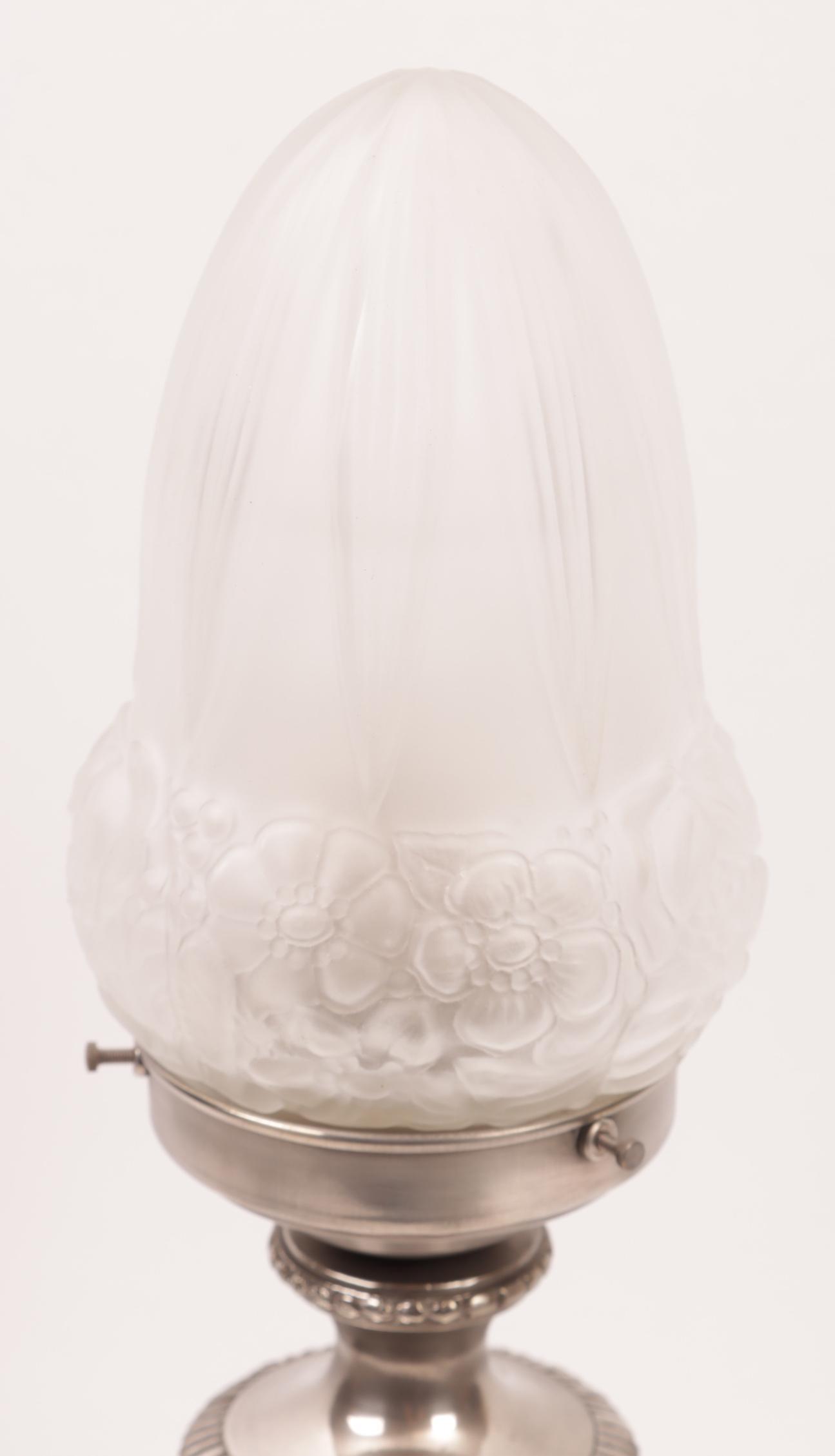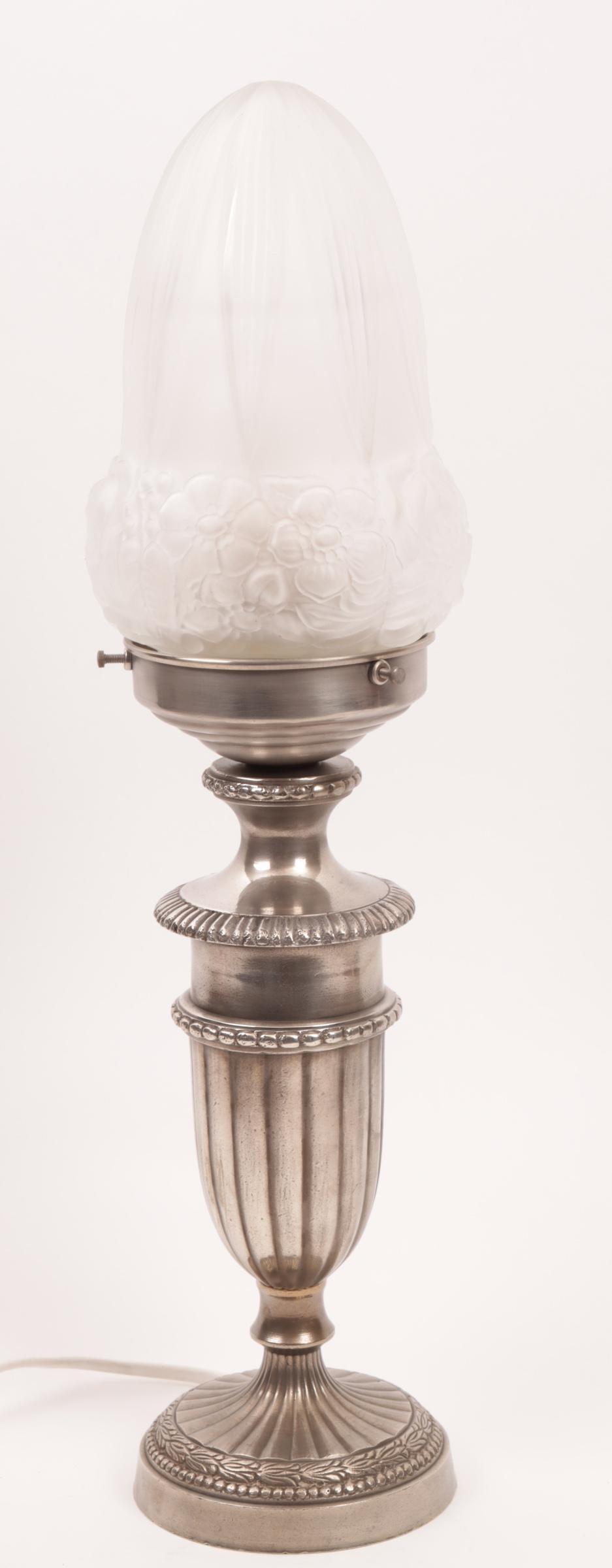Tafellamp met gesatineerd glazen kap, h.42 cm.