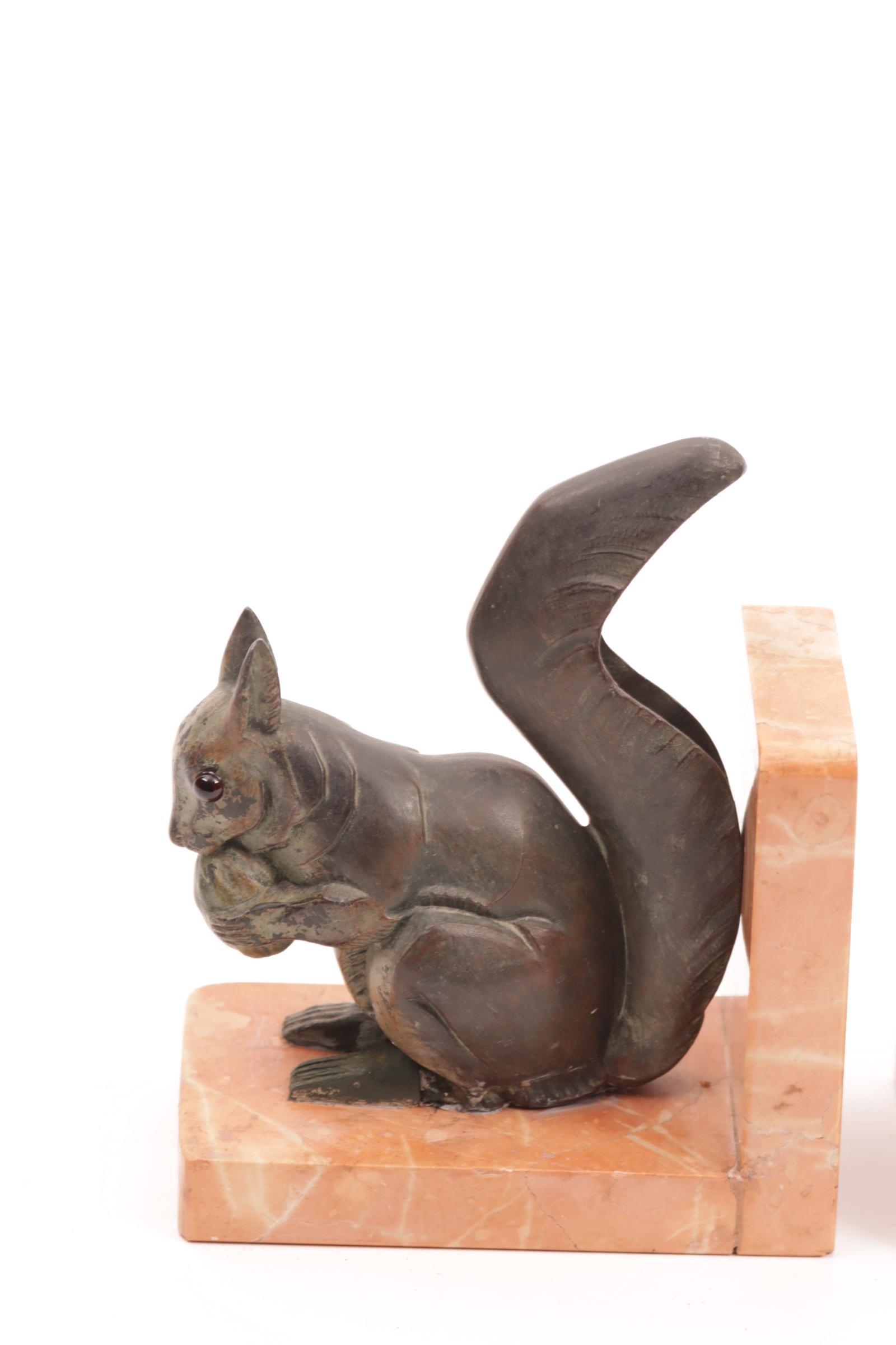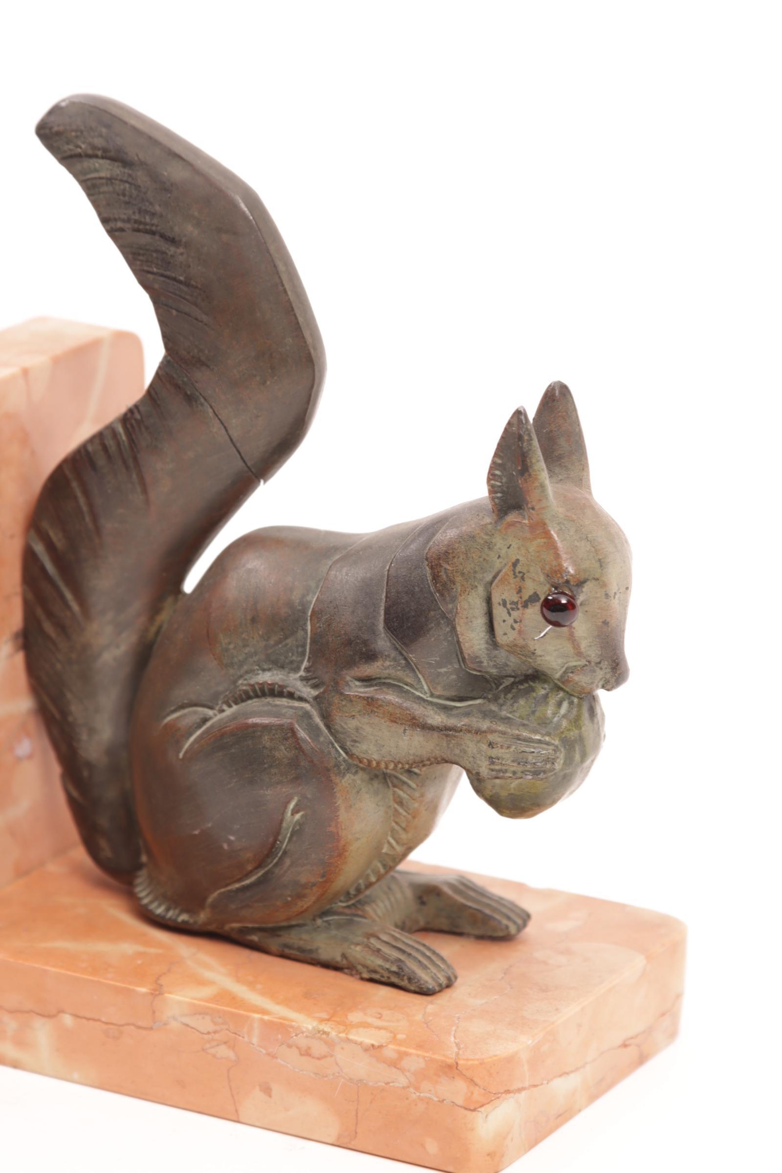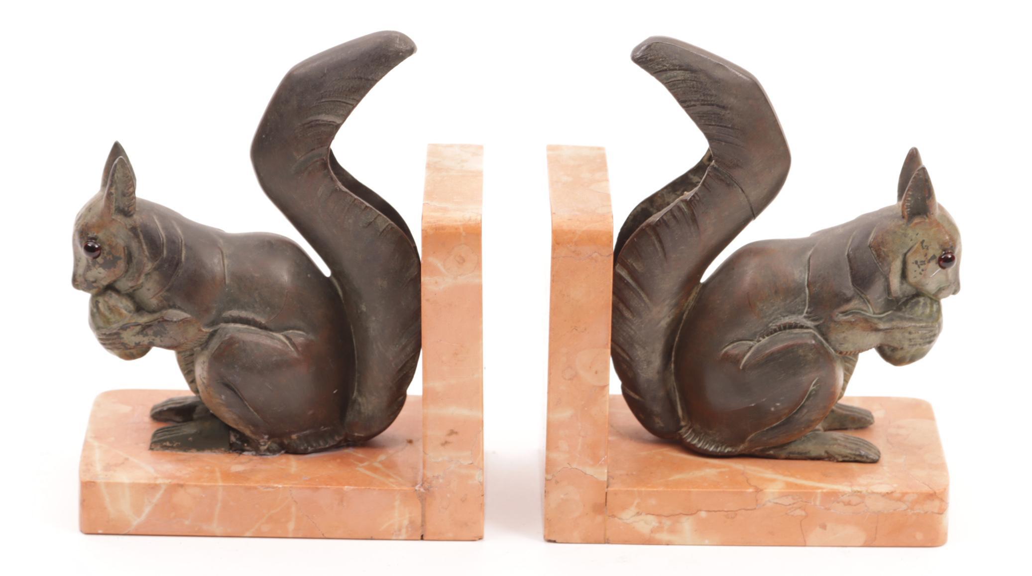Twee boekensteunen van eekhoorns, h.16 cm.