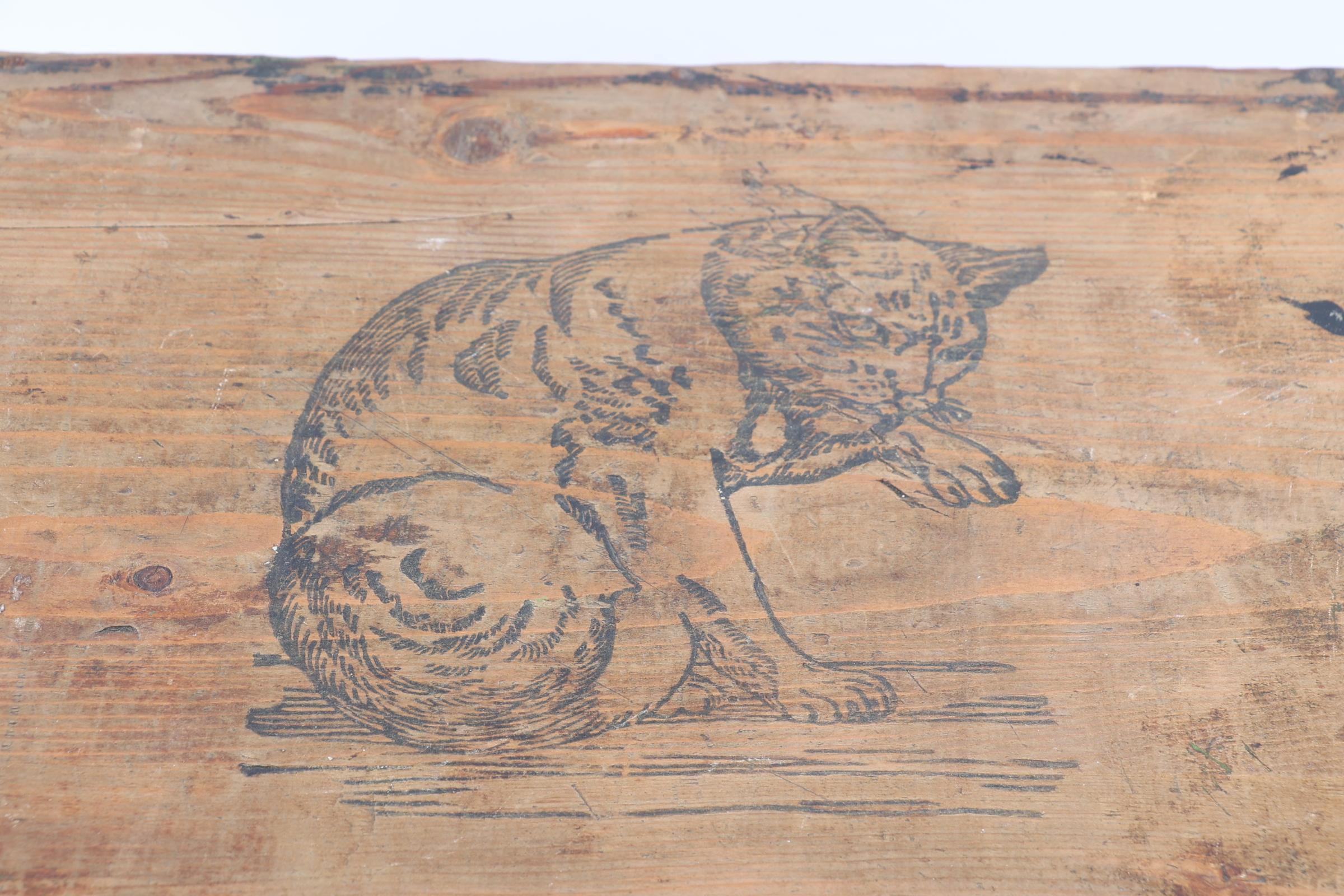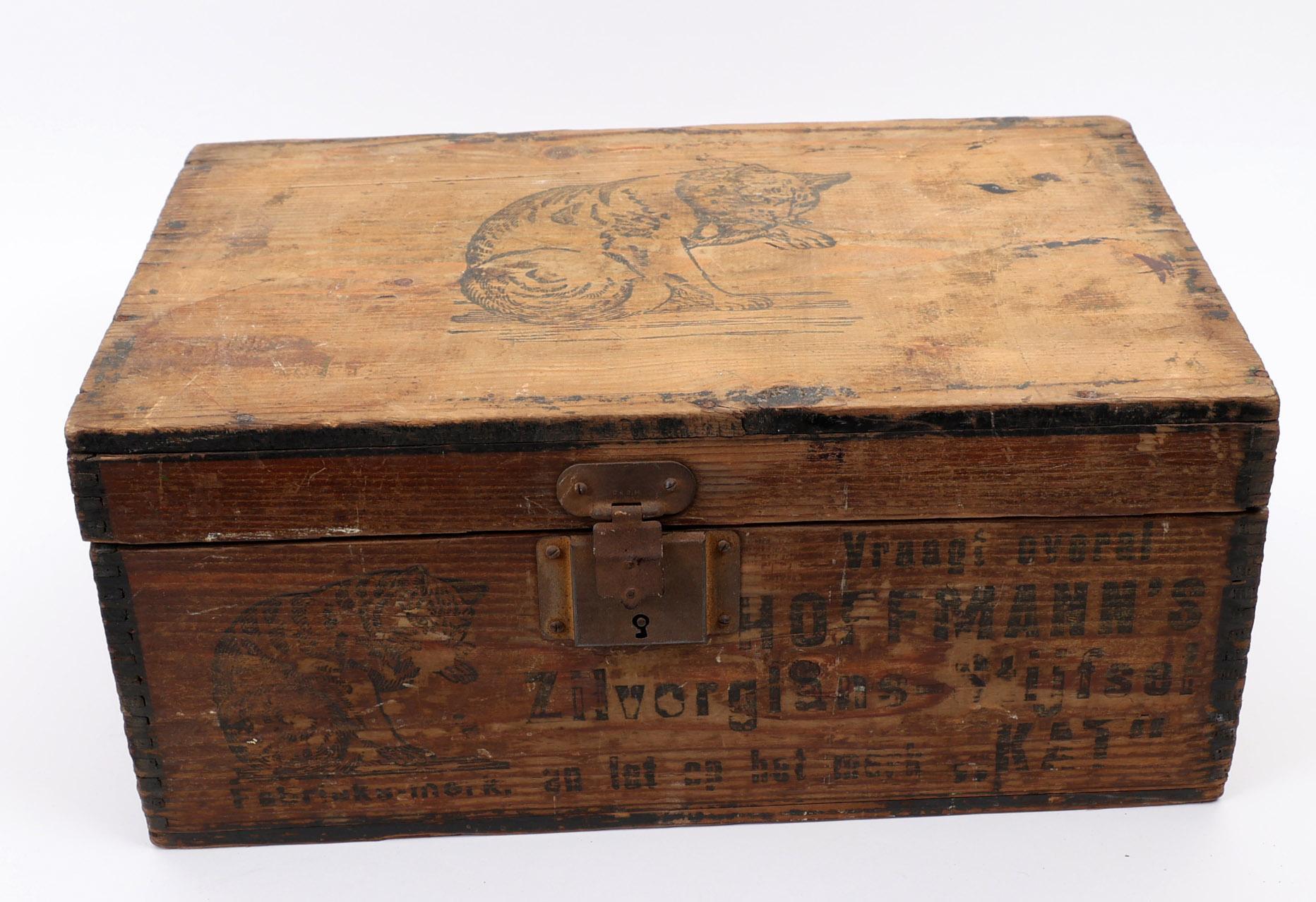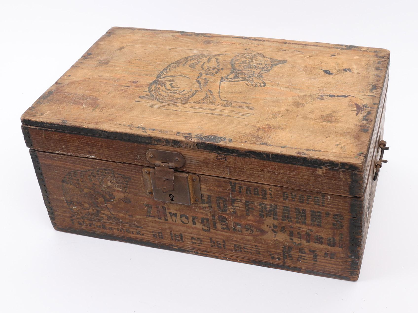 Houten kist, Hoffmanns, met afbeelding van kat, h.19 x b.43 x d.27 cm.