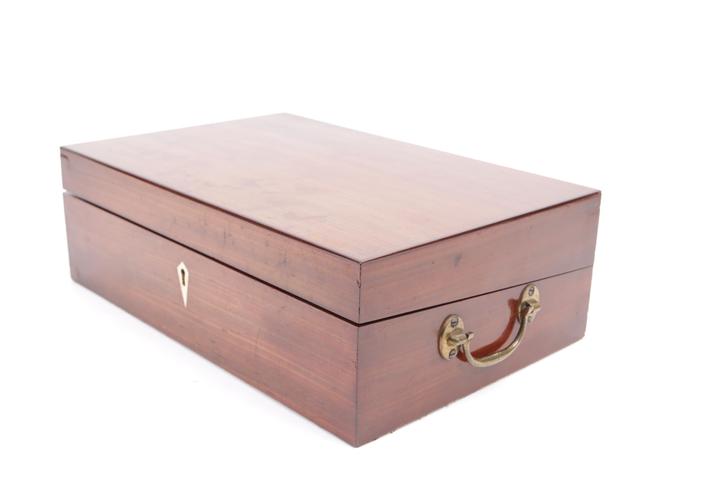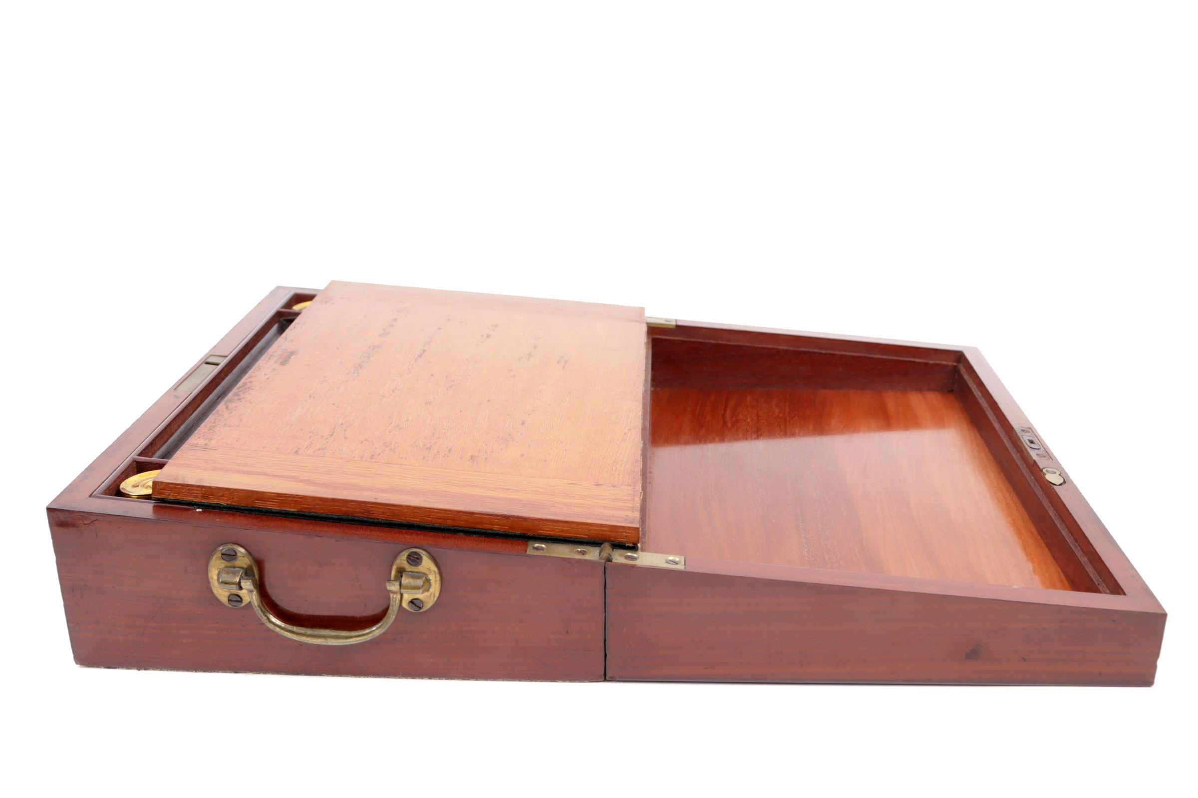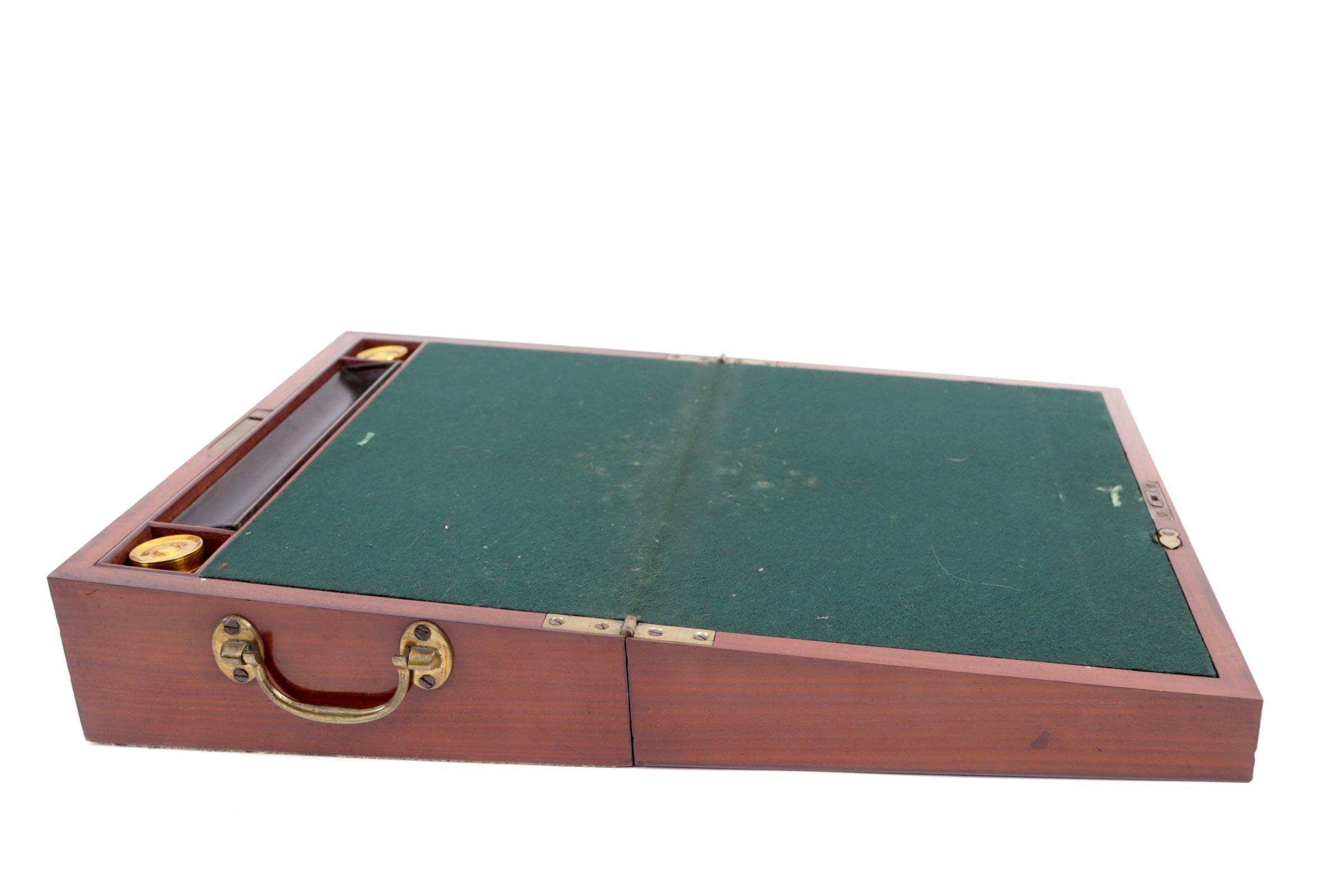 Antieke mahoniehouten schrijfkist met kristallen inktpotjes