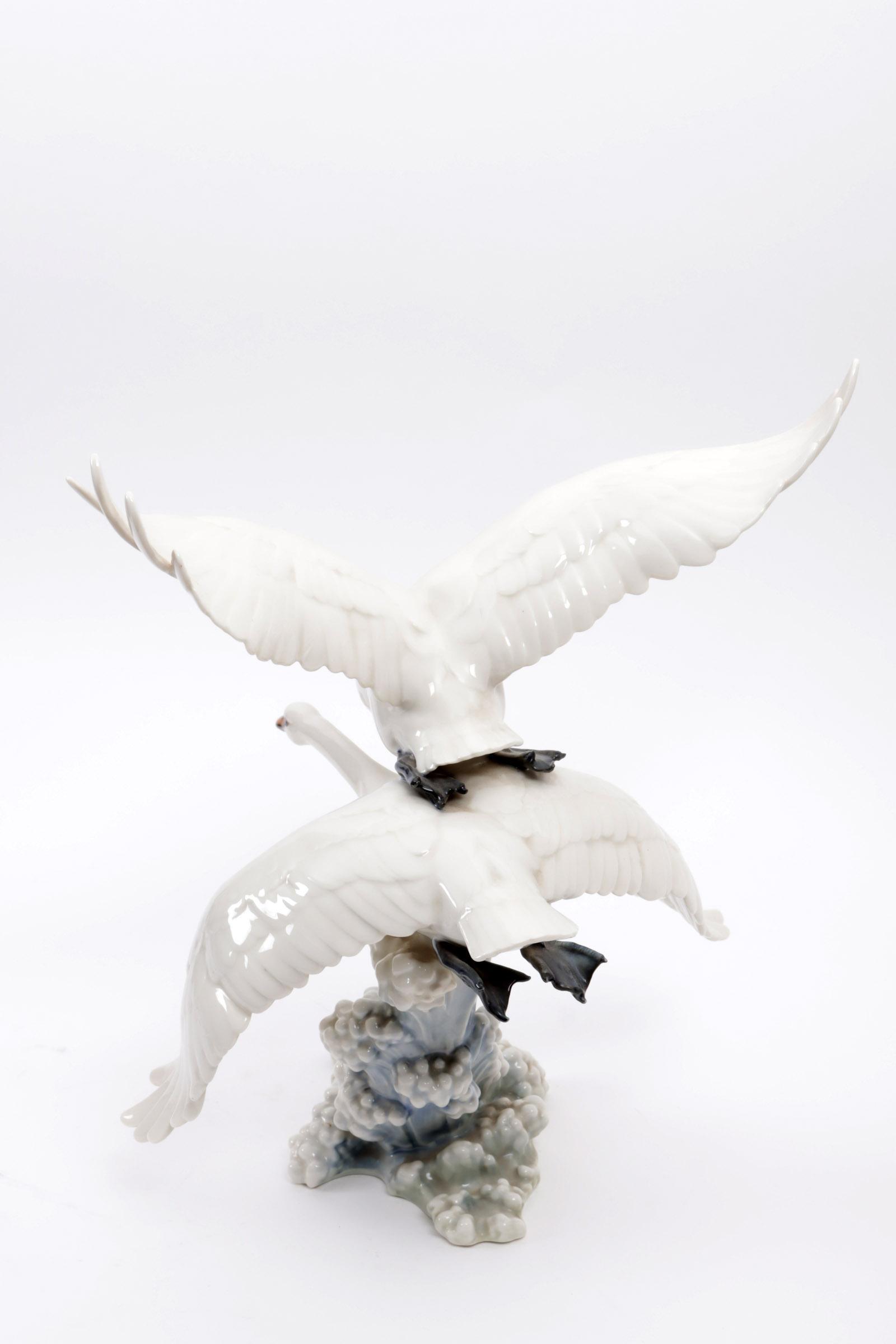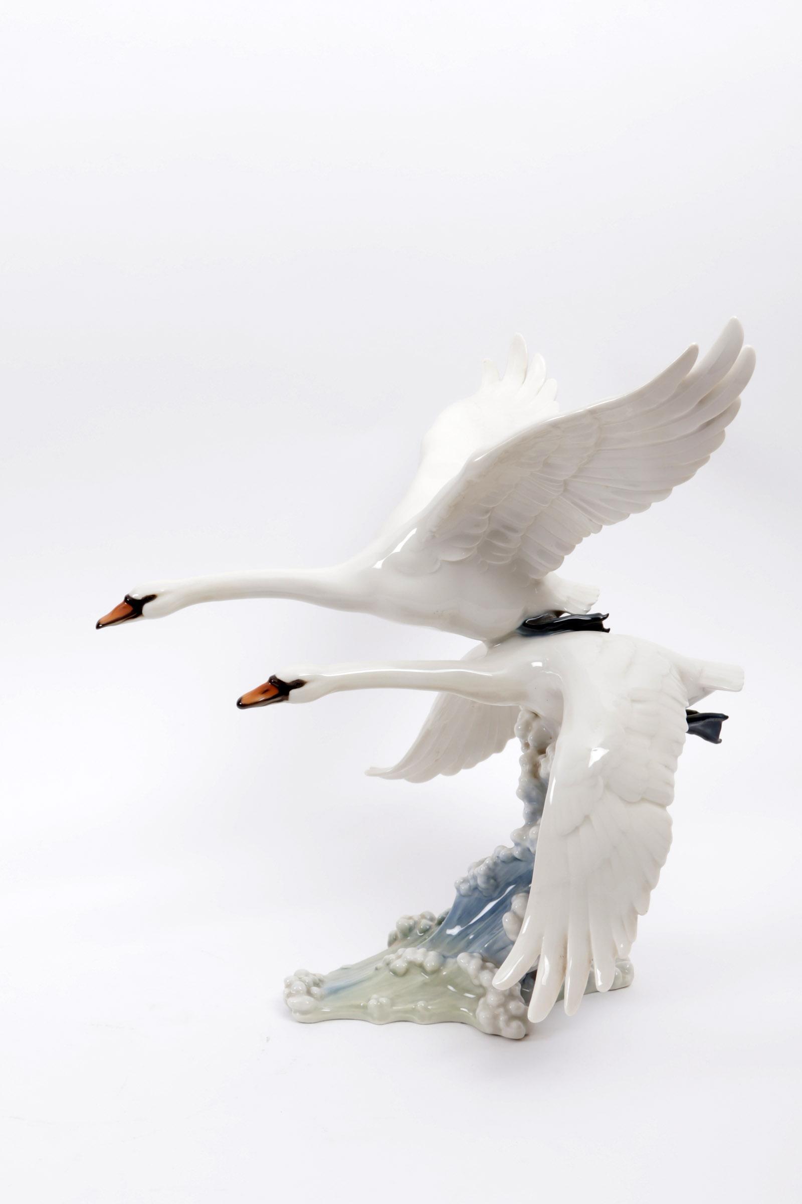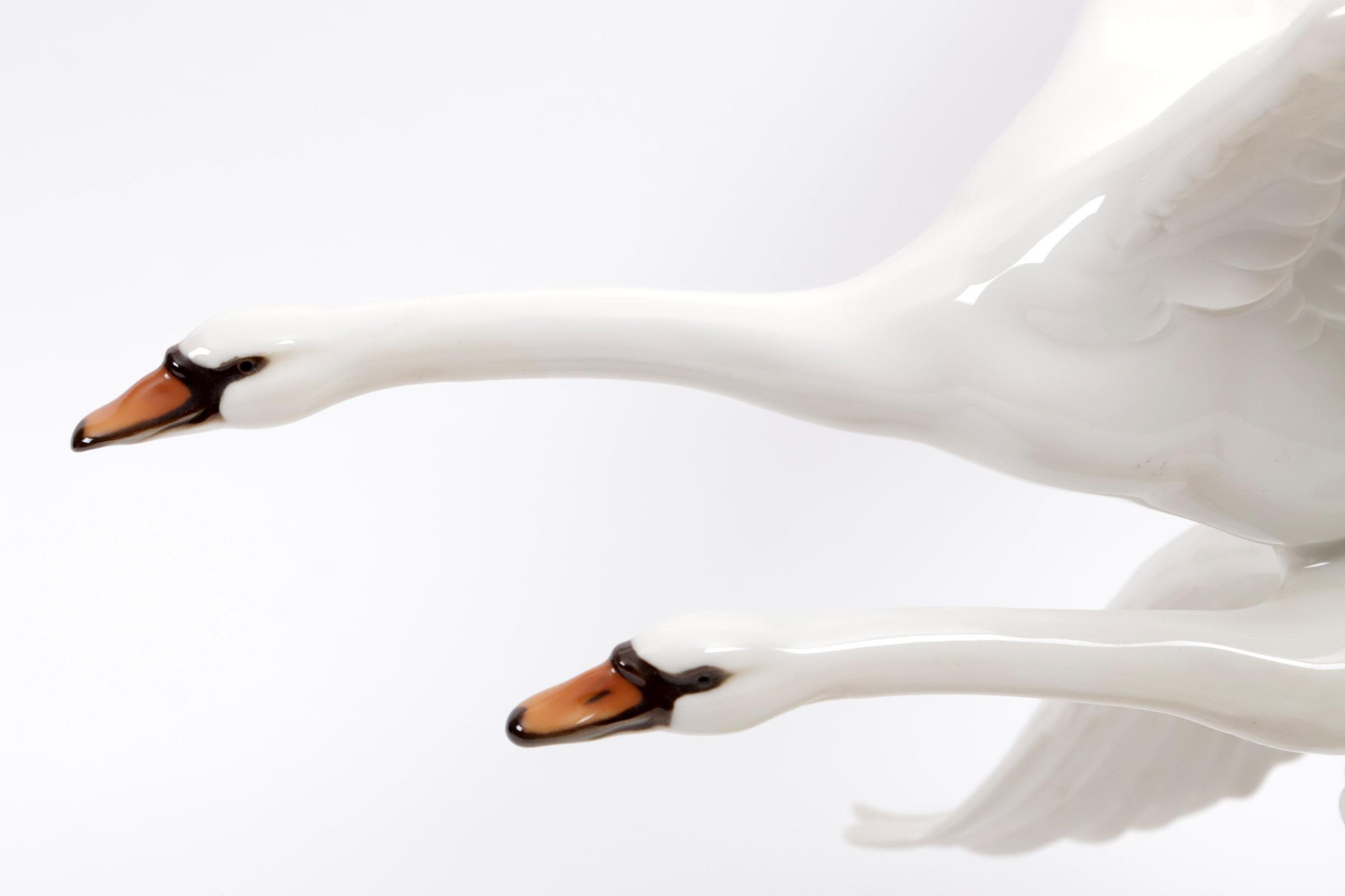 Hutschenreuther beeldengroep van twee vliegende zwanen, h.32 x b.28 x d.33 cm.