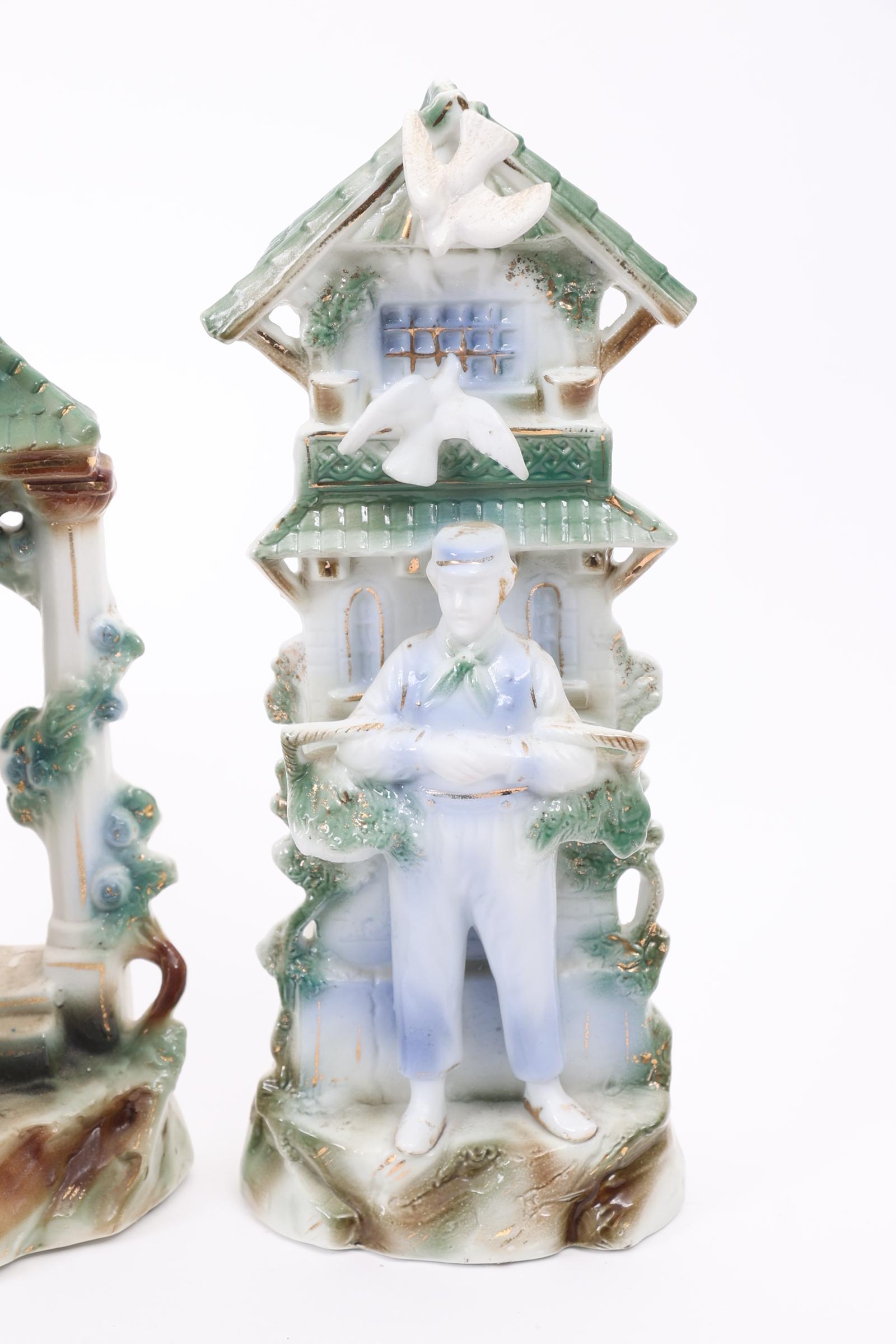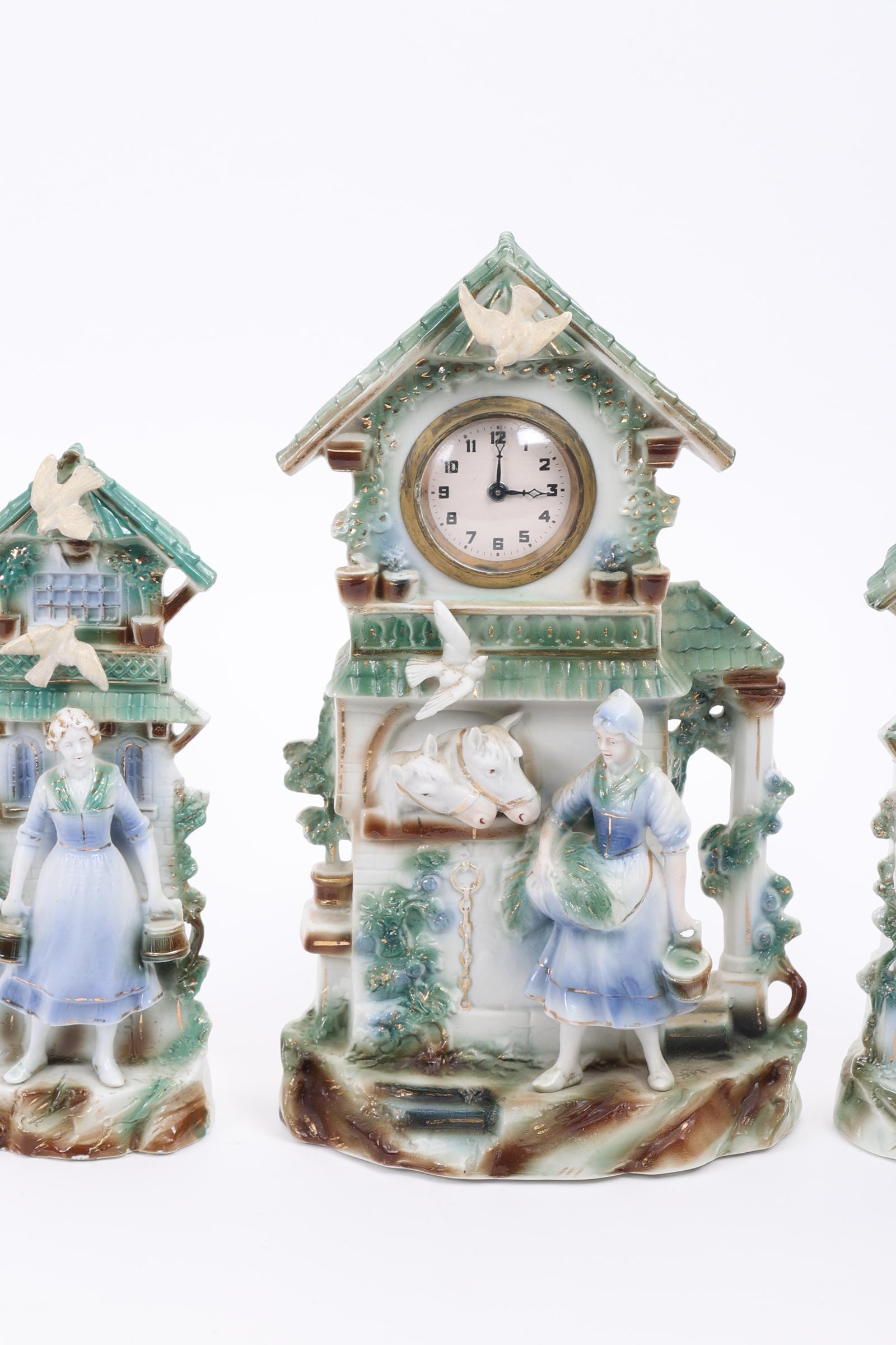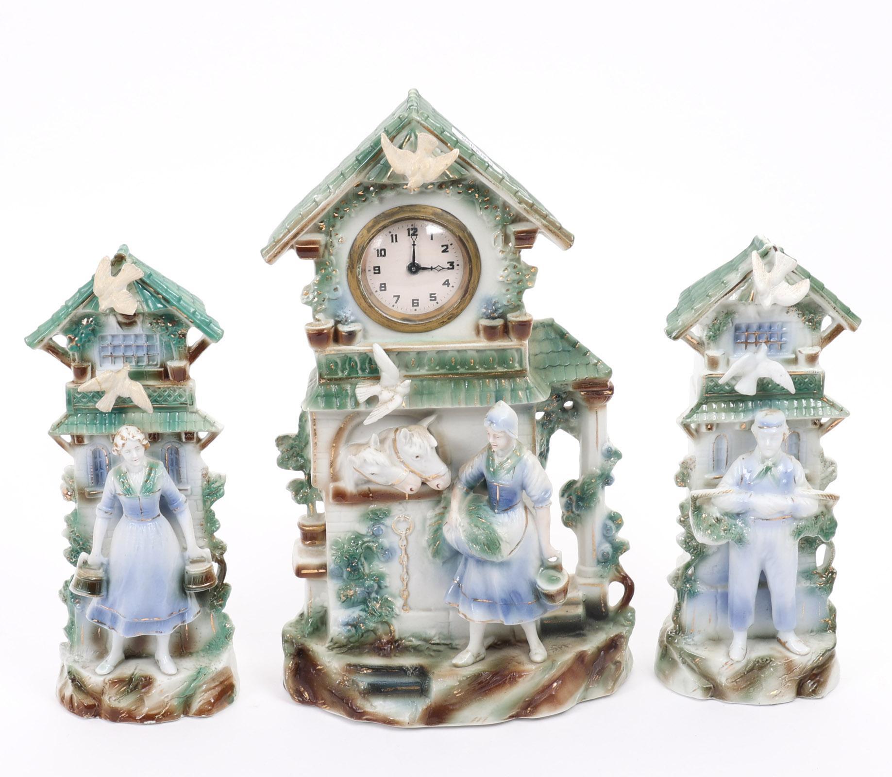 Porseleinen 3-delig klokkenstel, h.30 cm.