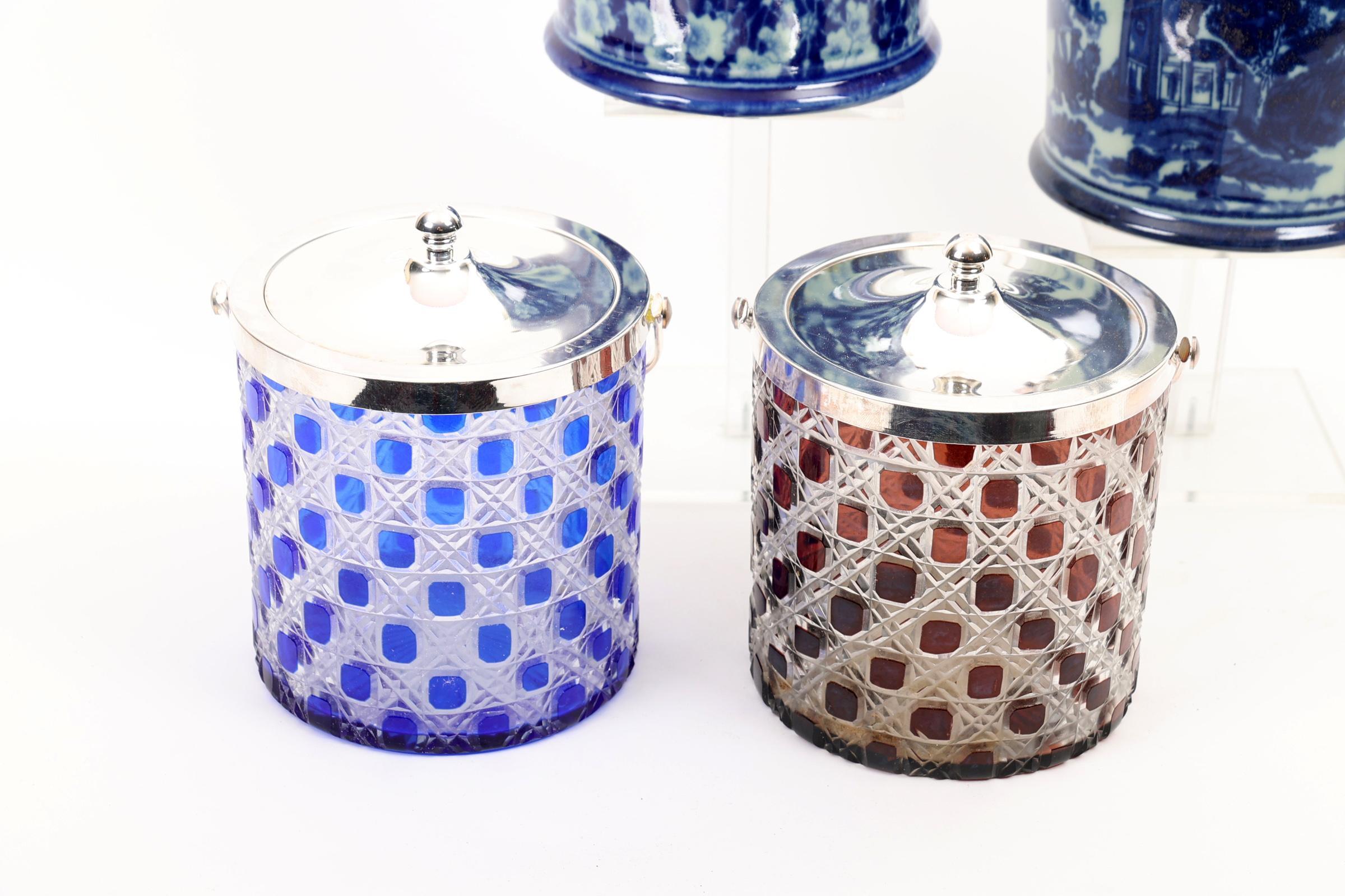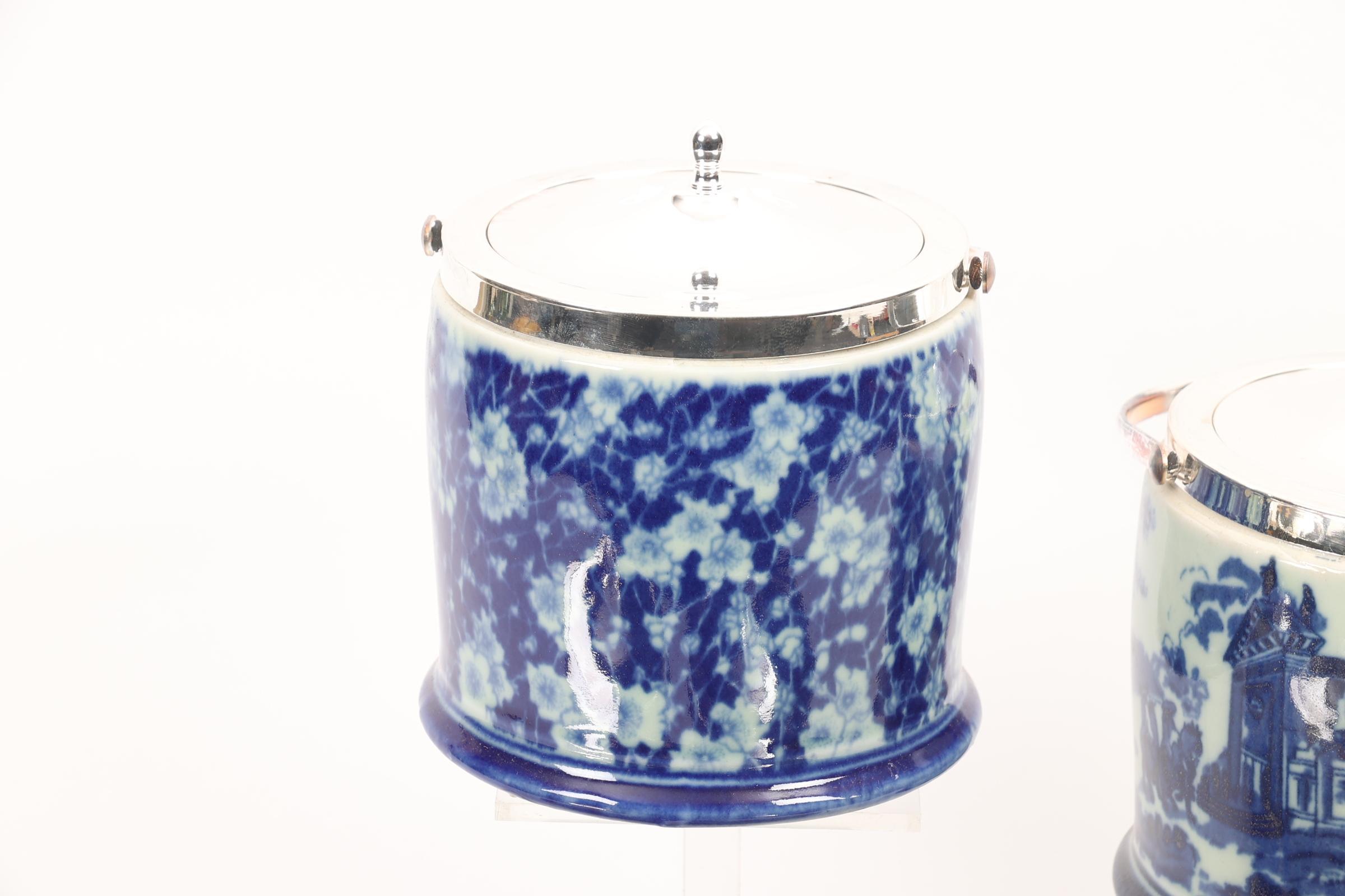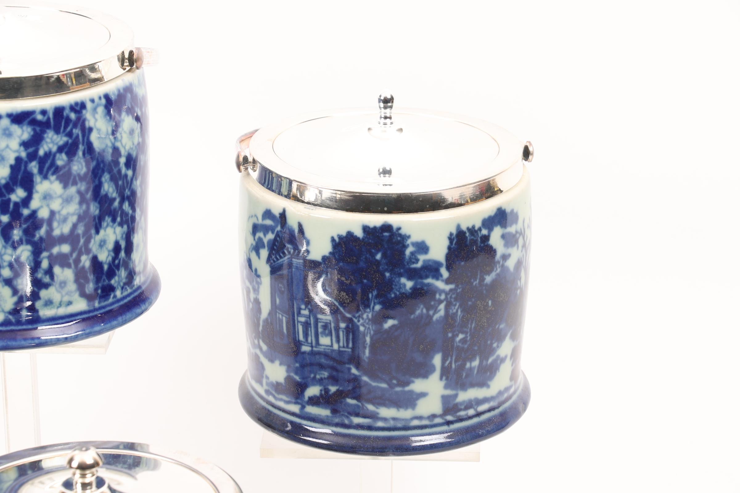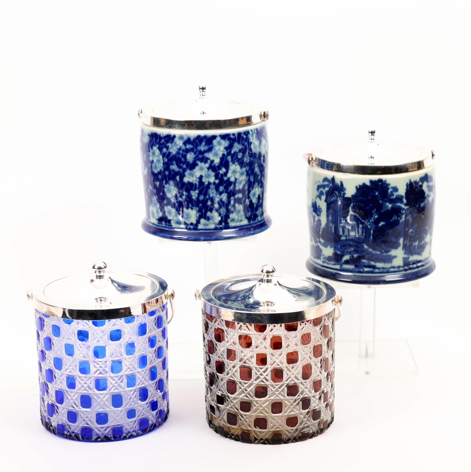 Koop van 4 diverse Engelse bisquit potten met verzilverde monturen