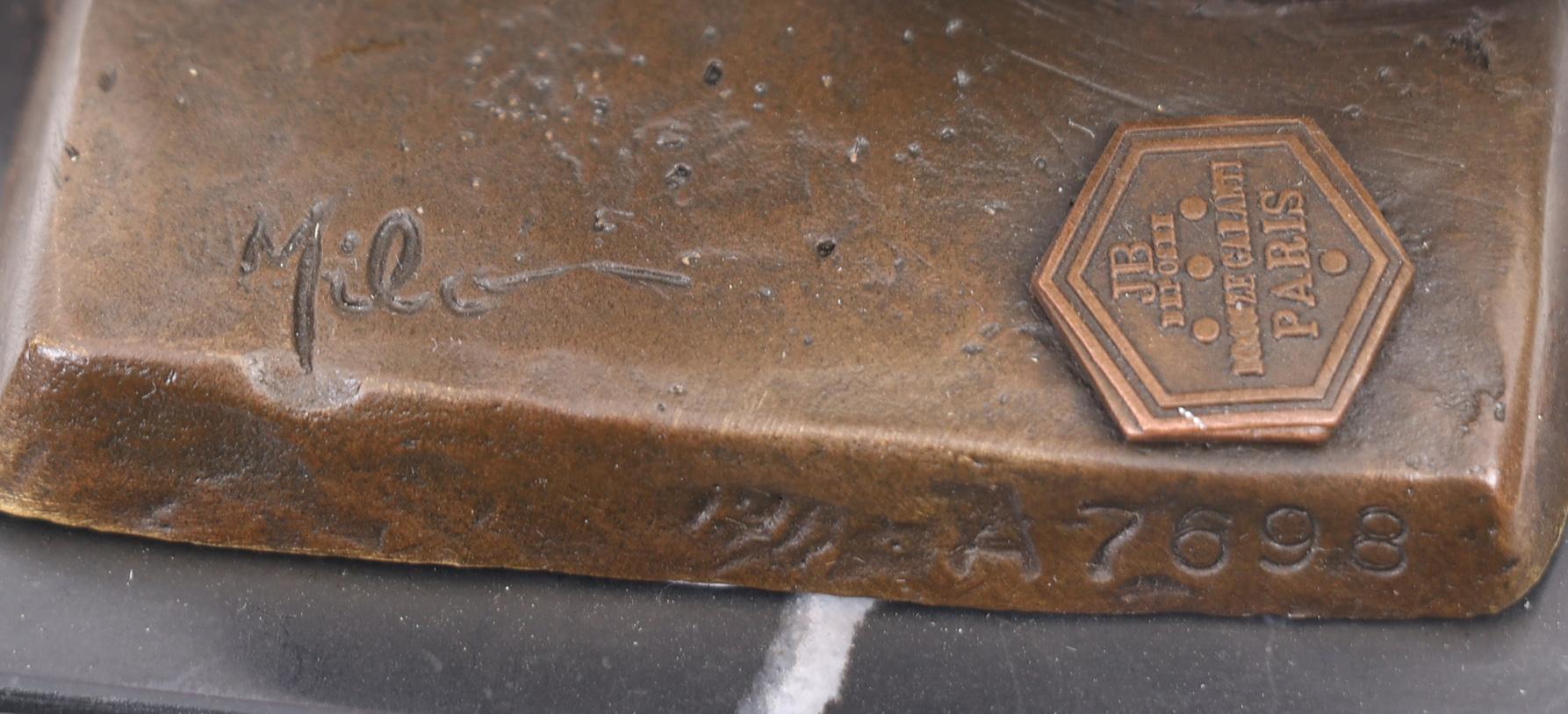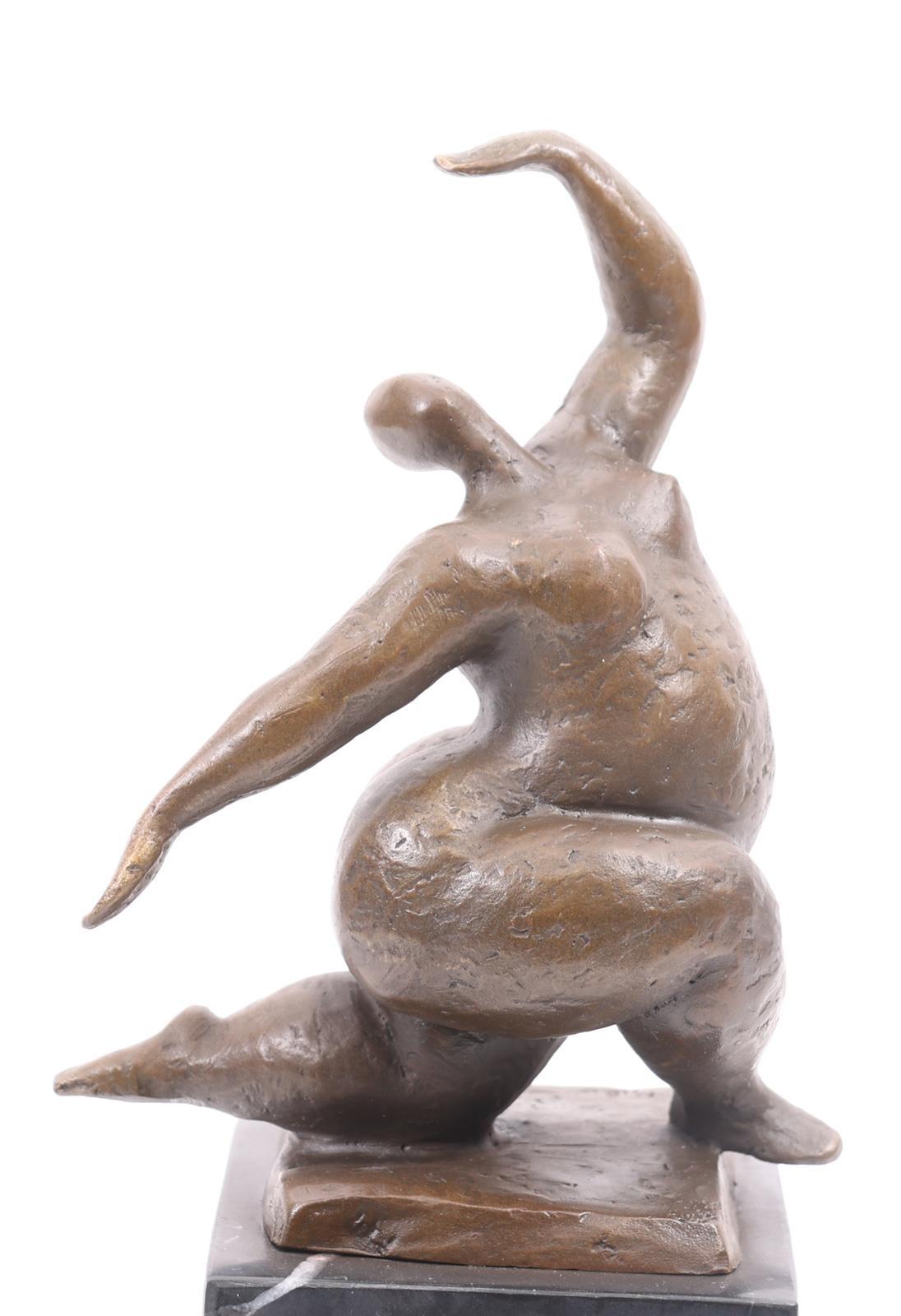 Bronzen sculptuur van een naakte dame rustend op marmeren sokkel, h.29 cm.