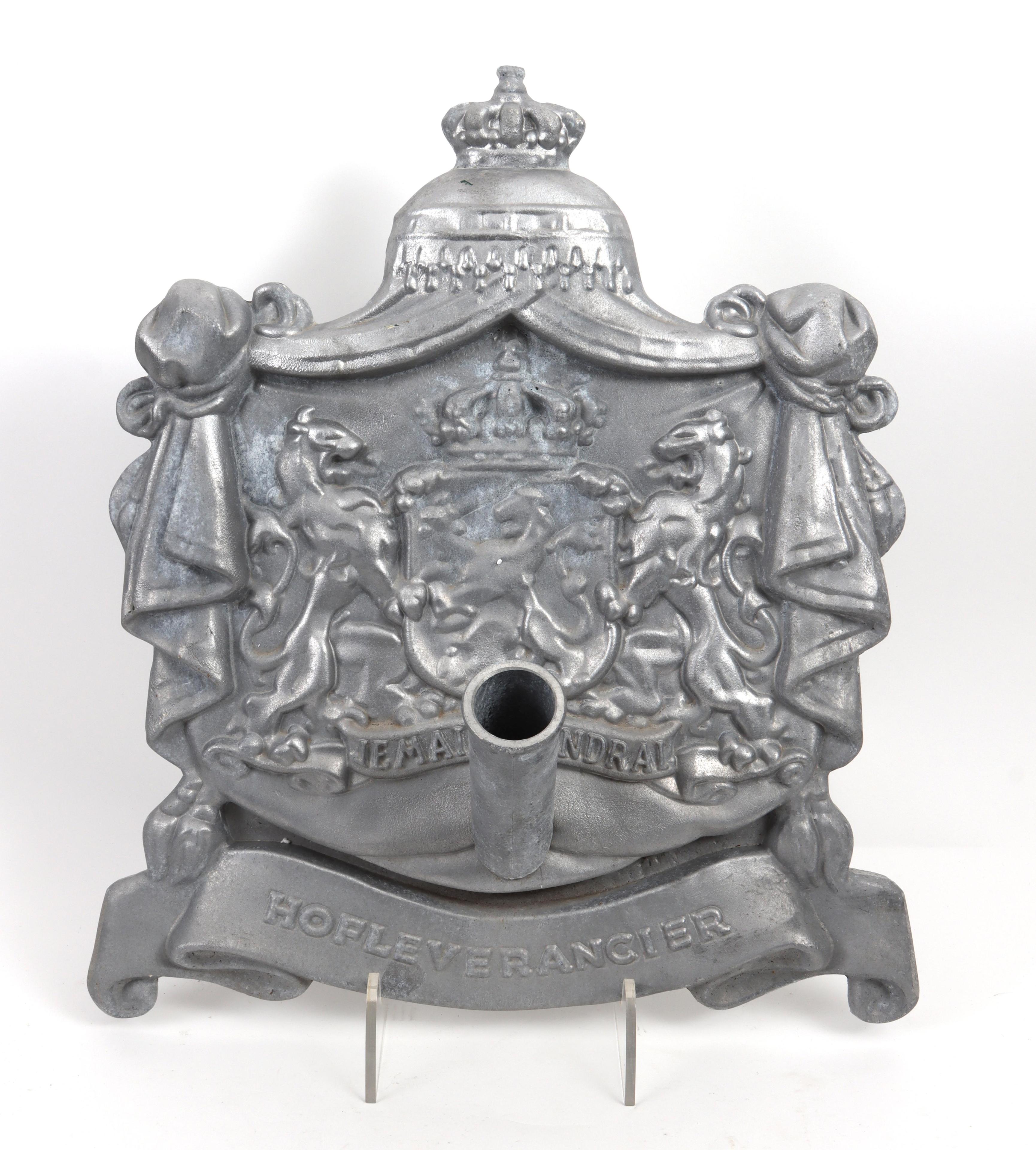 Aluminium wandplaquette "Hofleverancier" met vlaggenstokhouder