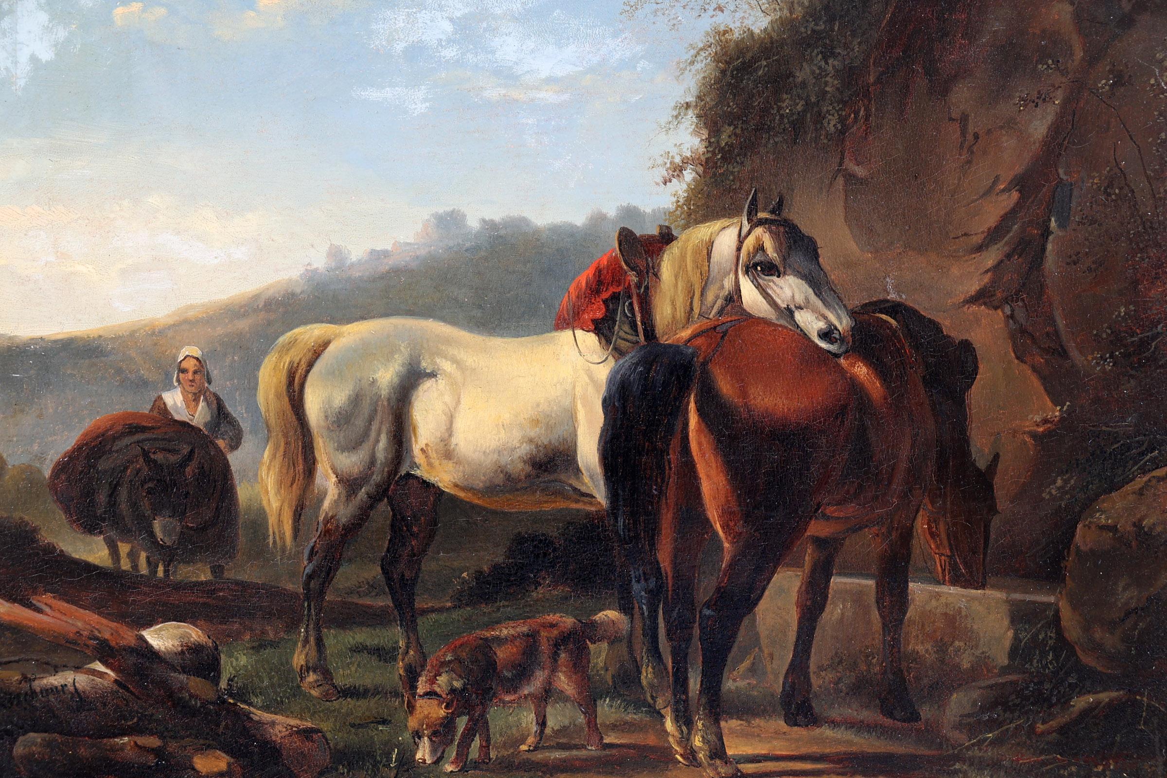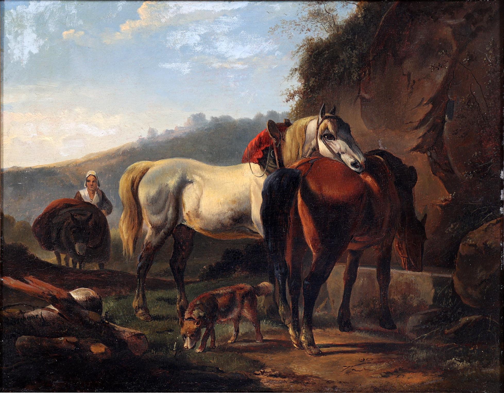 Naar Verschuur, Paarden in landschap, olieverf op paneel, 41 x 32 cm.