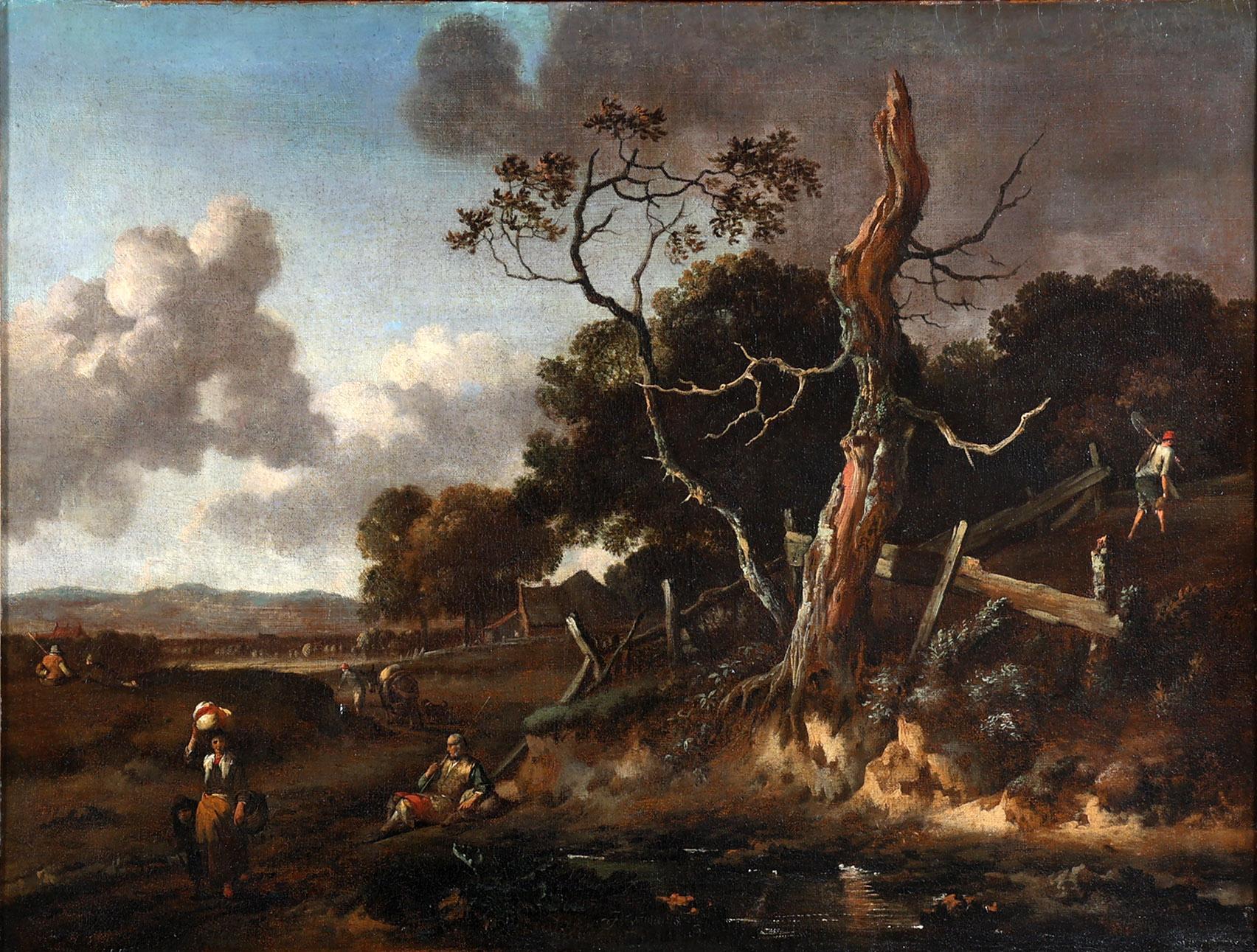 Jan Wijnants (1620-1682), Rustende persoon in landschap, olieverf op doek, 69 x 52 cm.