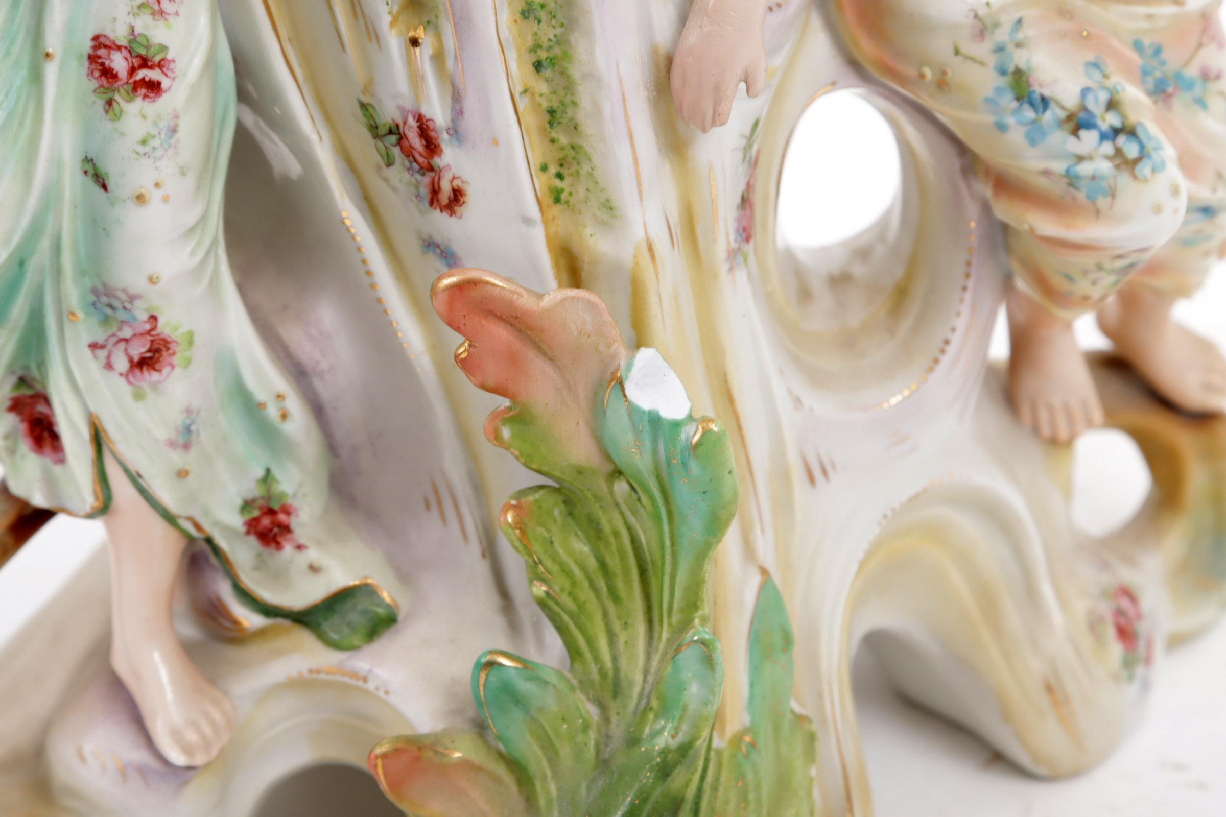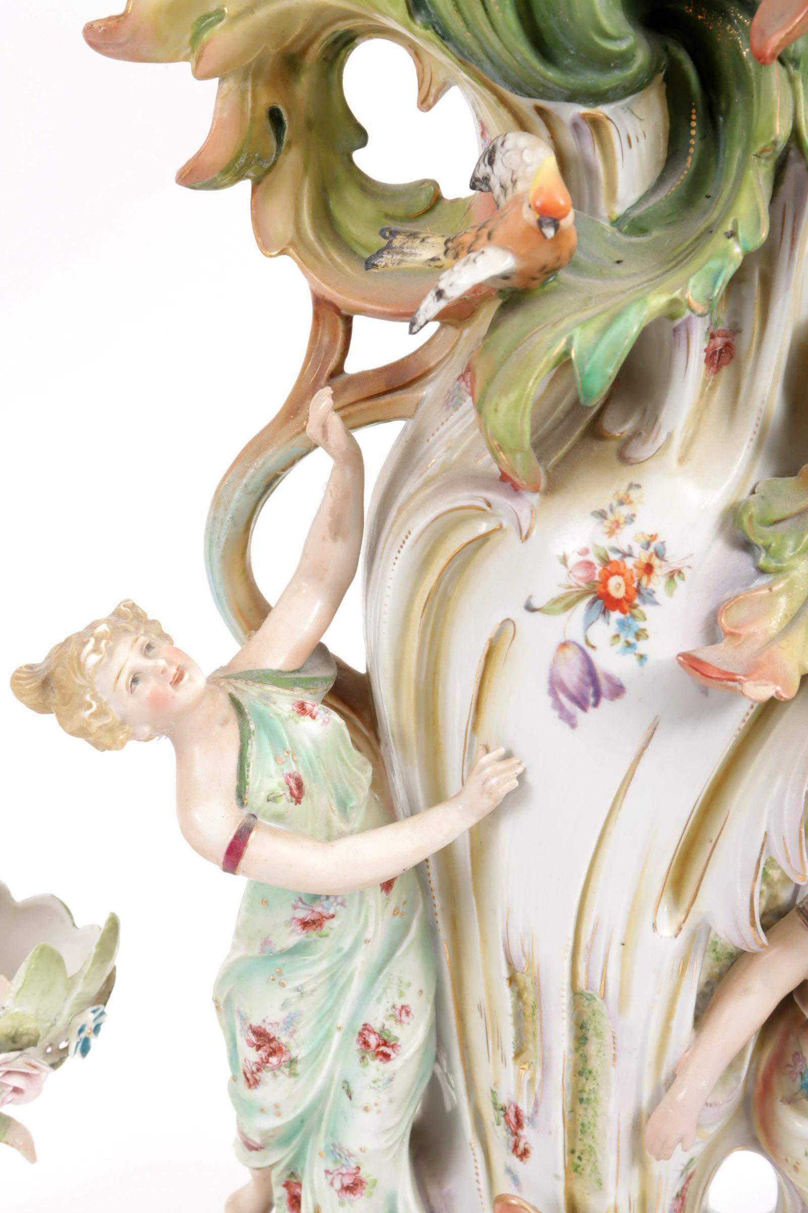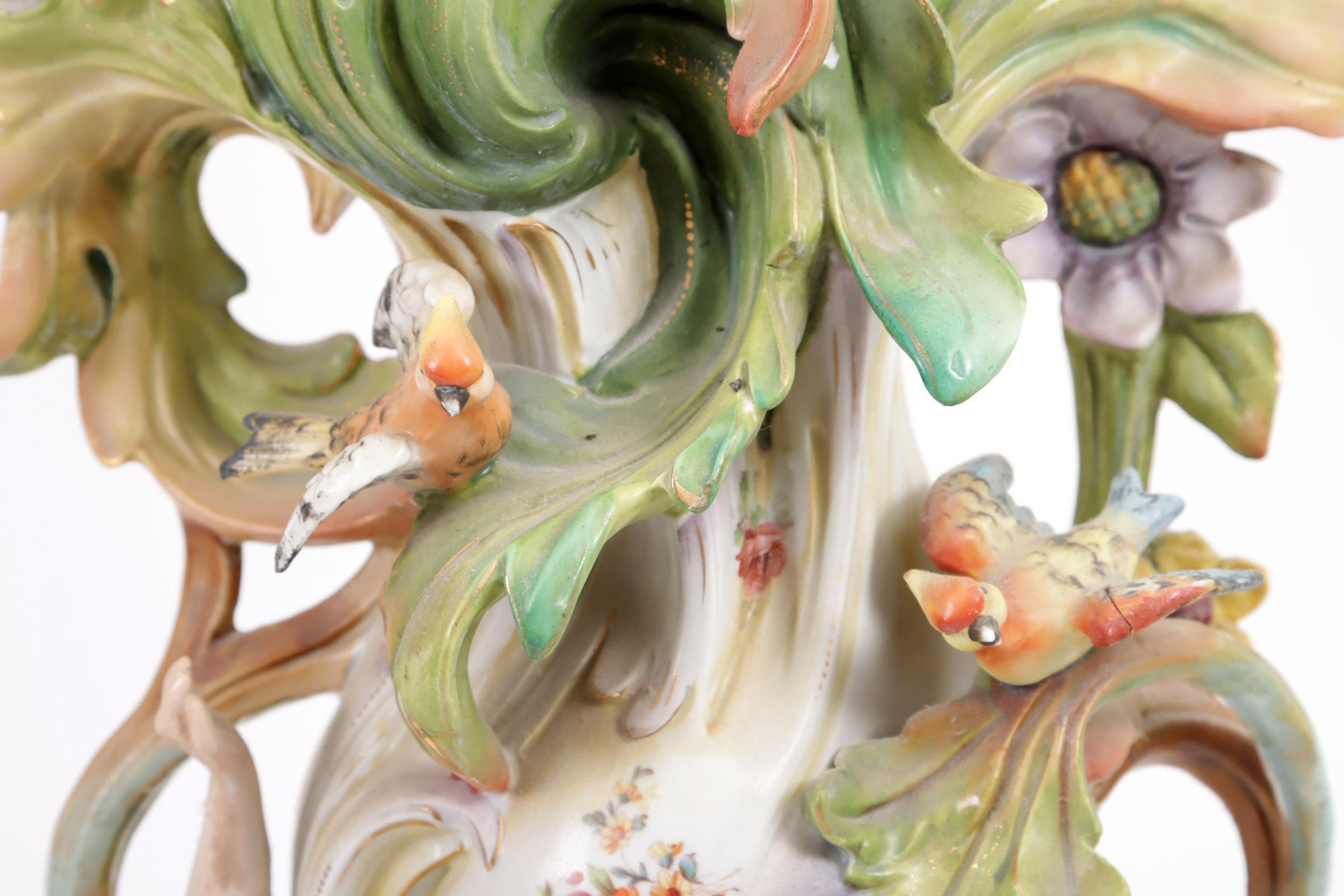 Gepolychromeerd Jugendstil-stijl vaas en 2 kleine bloemenvaasjes (defecten)