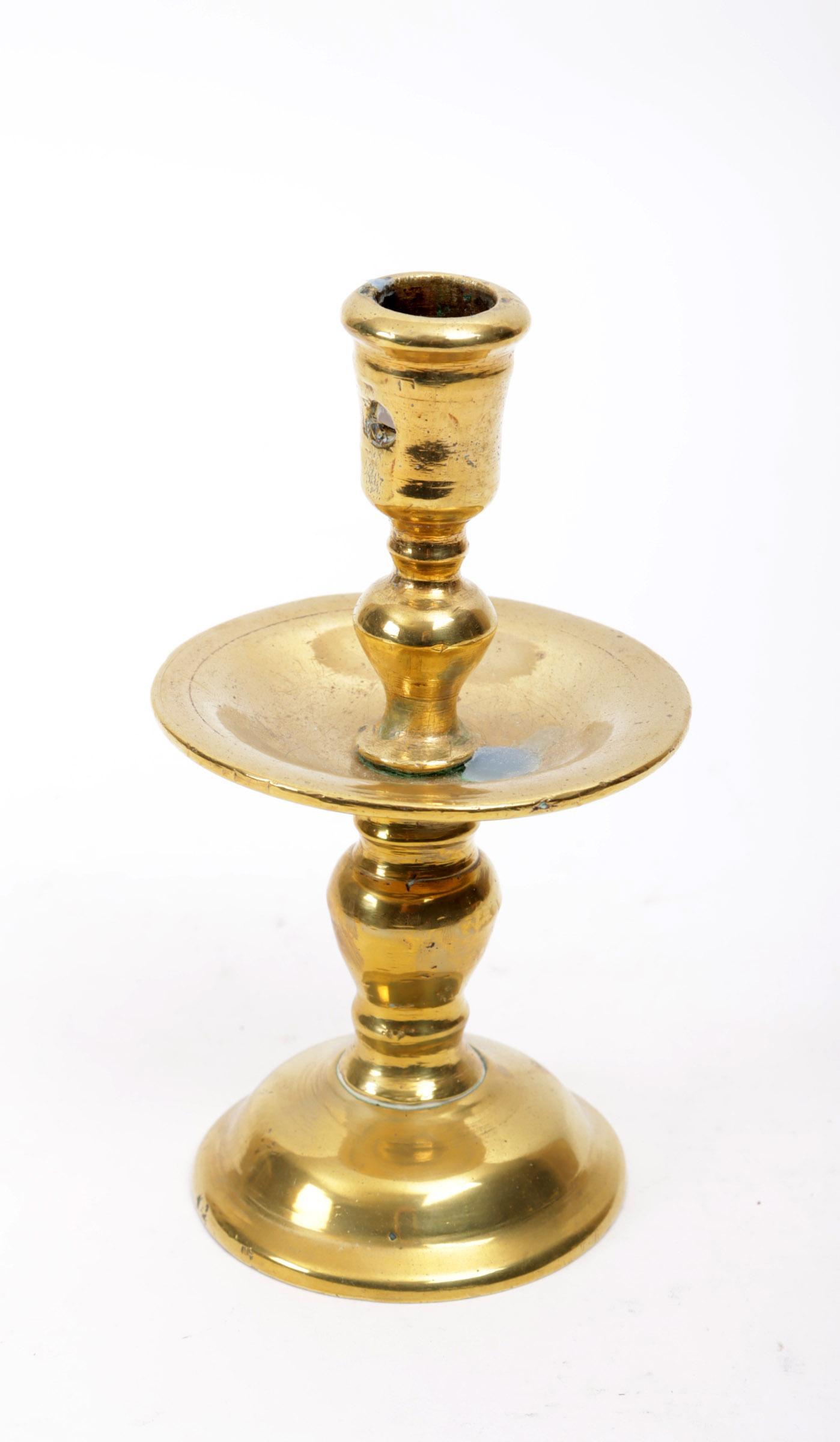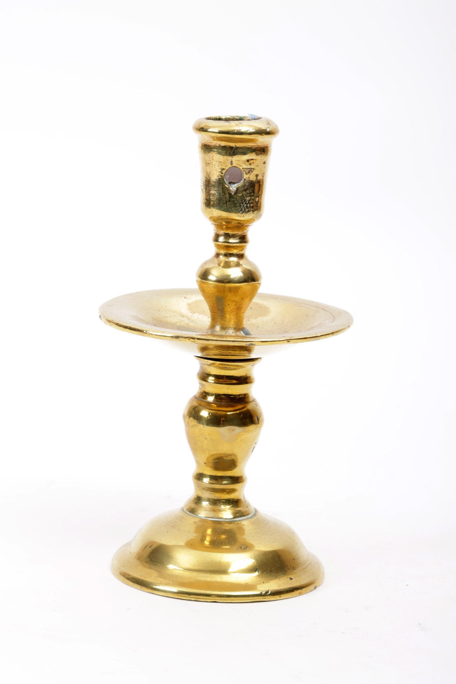 Antieke geelkoperen kraagkandelaar, h.18 cm.